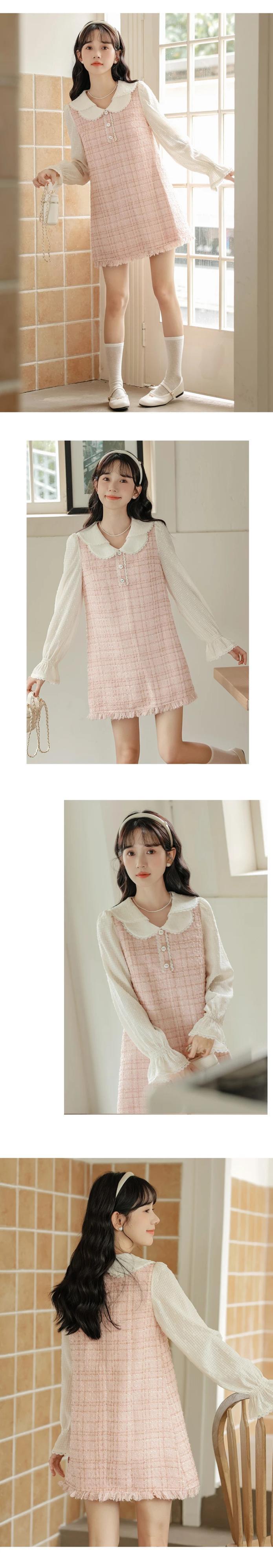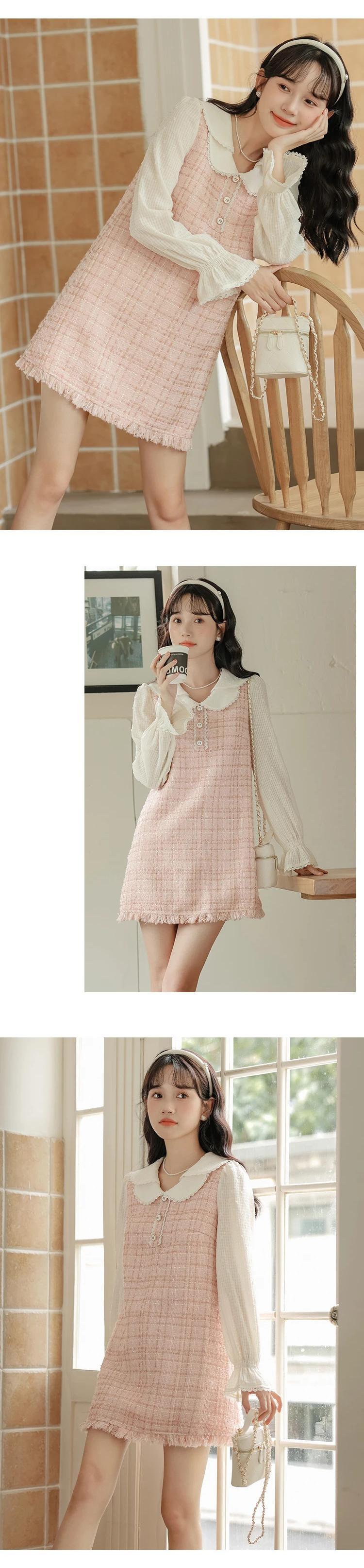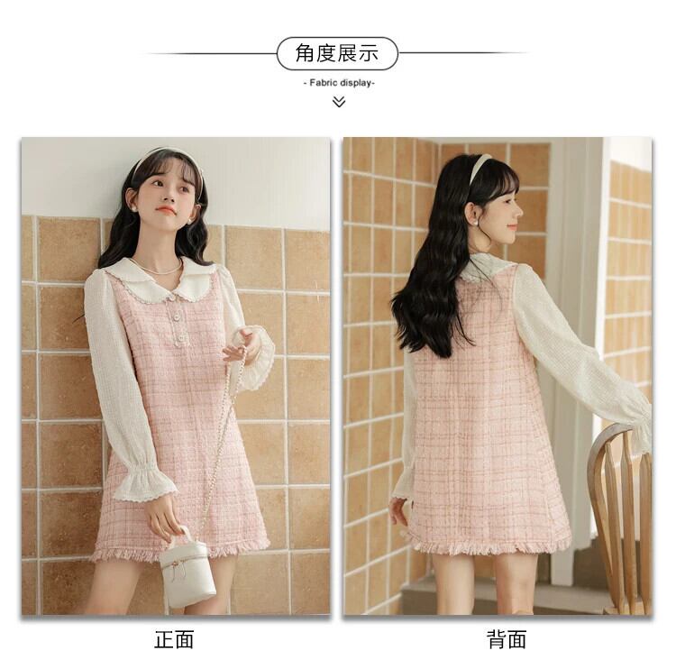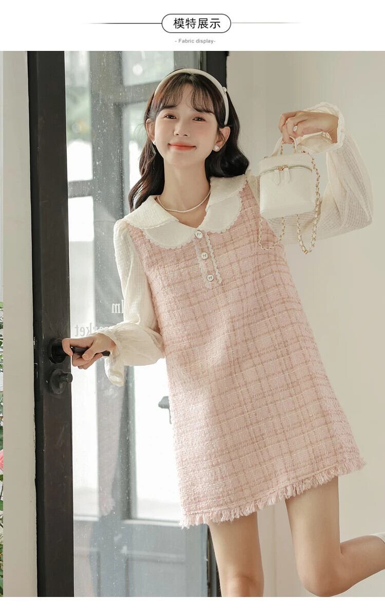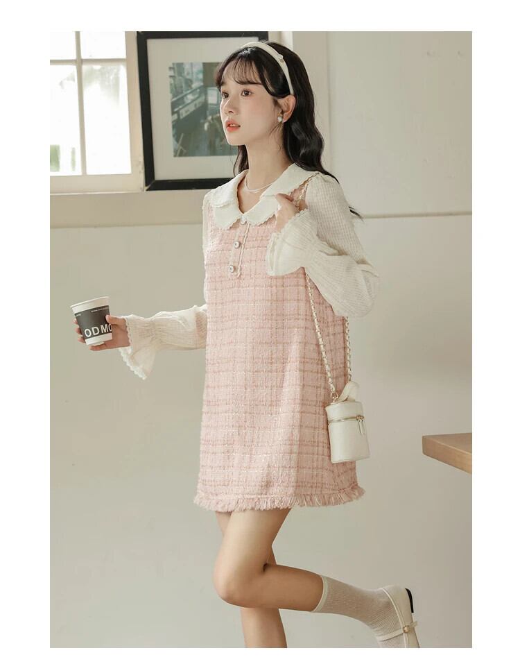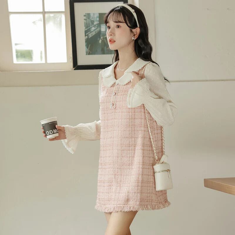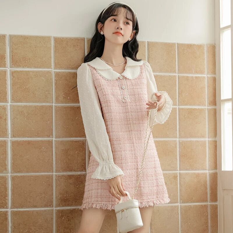 レディース 2024 春秋スイートテル A ラインドールネックフレグランスピンクドレス 大人ガーリー スウィート キュート カジュアル スプリング 春物 Aライン