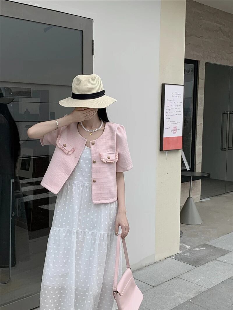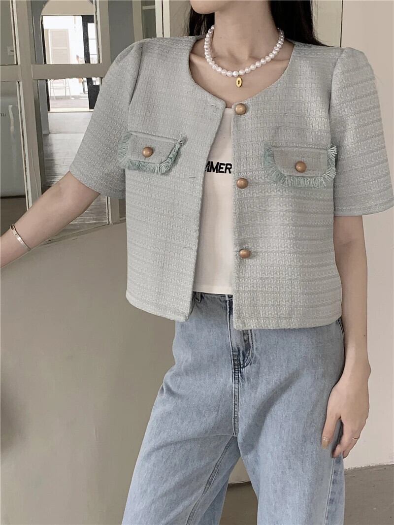 レディース 2024 春夏シック テル コーススピニング ショート フレグランス カーディガン ジャケット コート スプリング 春物 サマー 夏物
