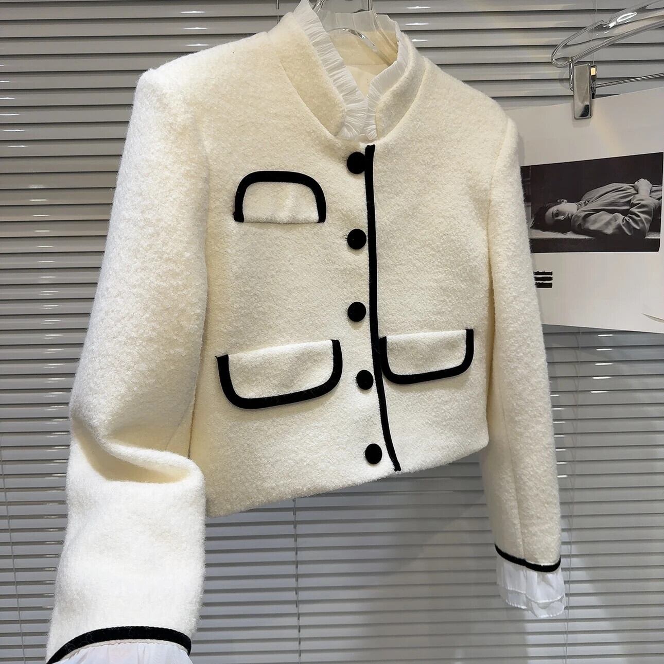 冬フランス香りレース袖気質ダウンインナーフリースショートコートジャケット ウィンター 冬物