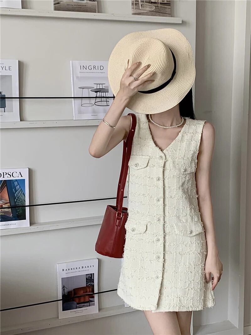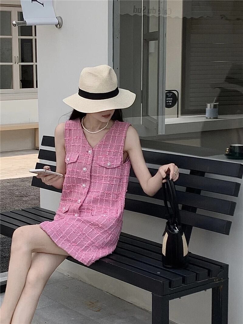 2024 春夏タンクトップ香り甘い A ラインピンクノースリーブドレス 大人ガーリー スウィート キュート カジュアル スプリング 春物 サマー 夏物 Aライン