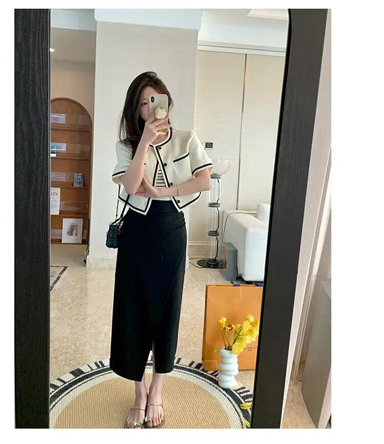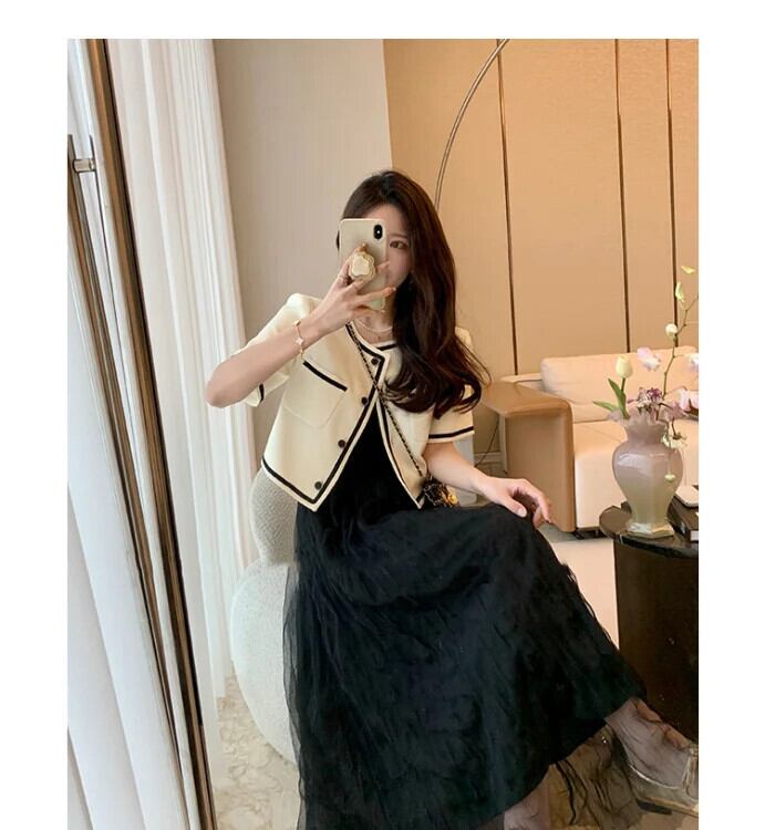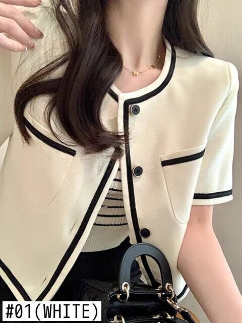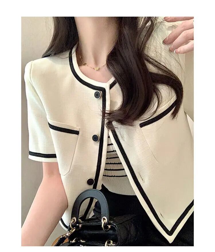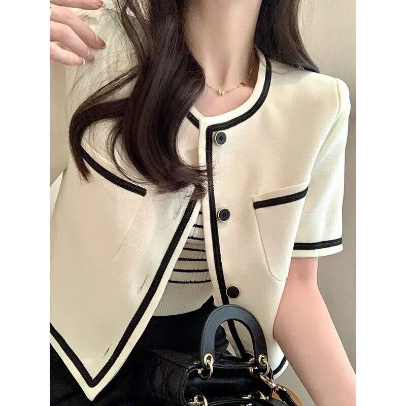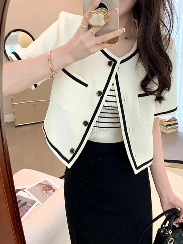半袖ラウンドネックフレグランススーツコートレディース春夏薄手白ブレザー ショート ホワイト ハーフスリーブ スプリング 春物 サマー 夏物 Oネック