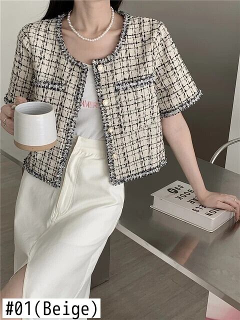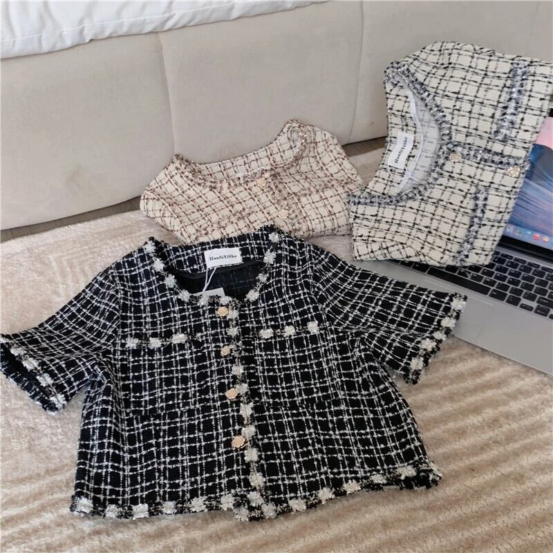 レディース 2024 春夏シックチェック柄レトロショートフレグランスコートジャケット レッド スプリング 春物 サマー 夏物
