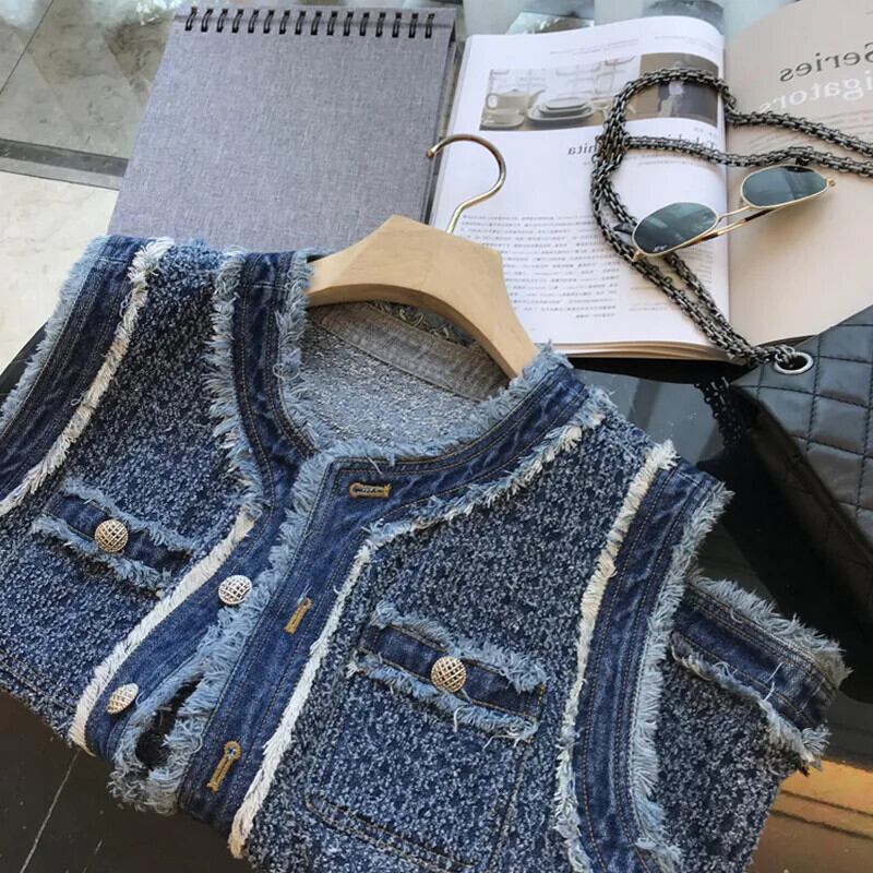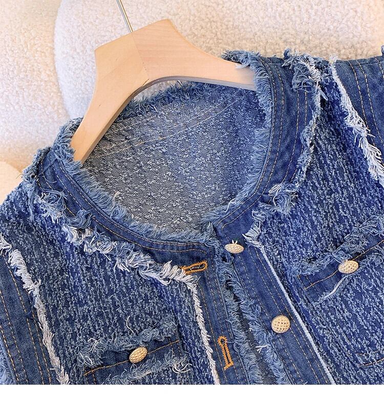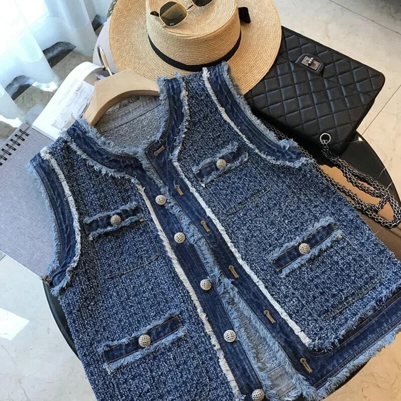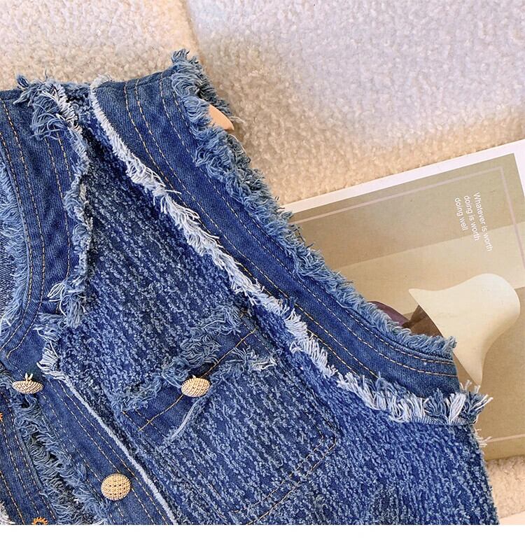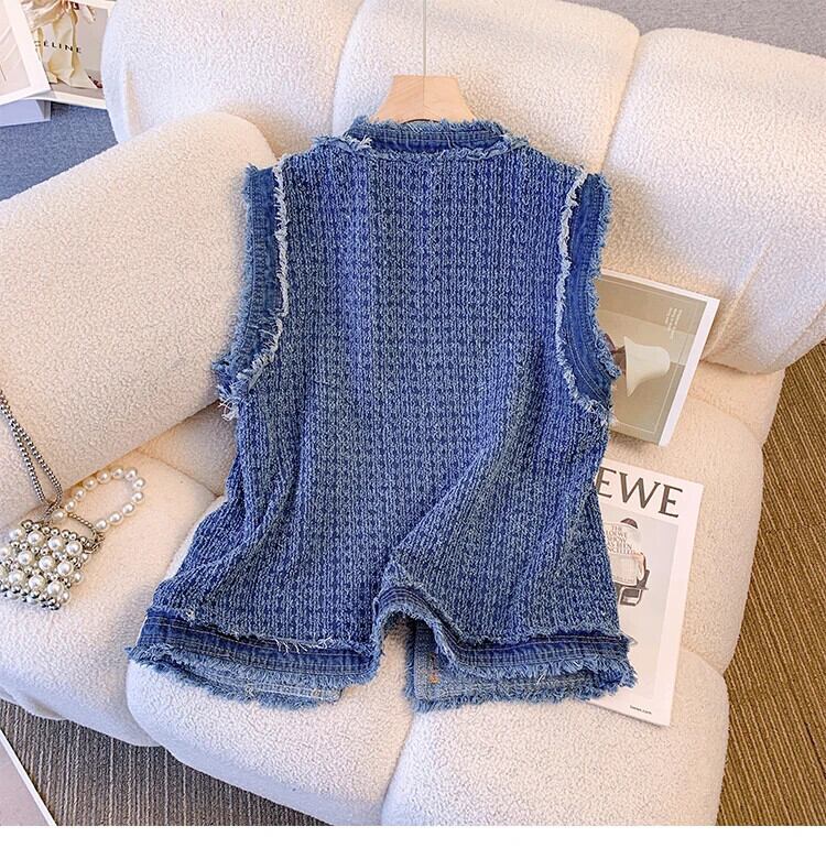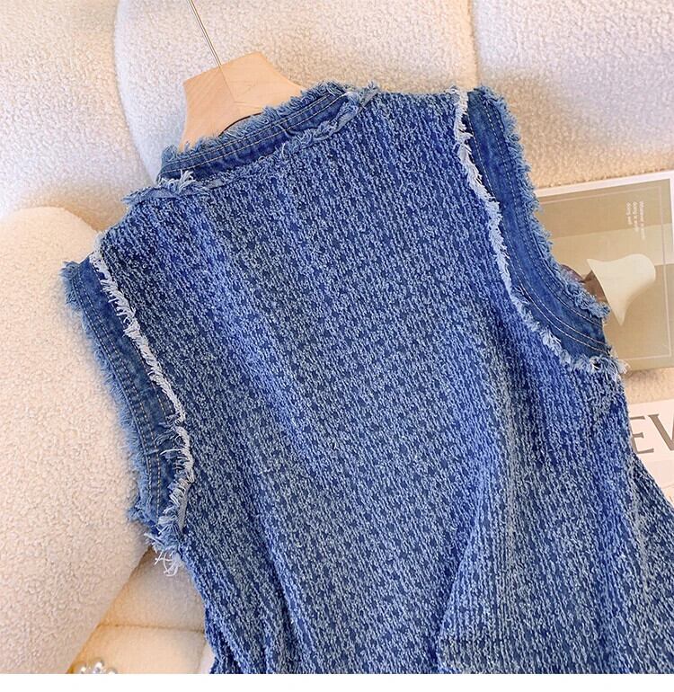 春秋流れノースリーブタンクトップコート香り良いファーエッジデニムベスト スプリング 春物 オータム 秋物