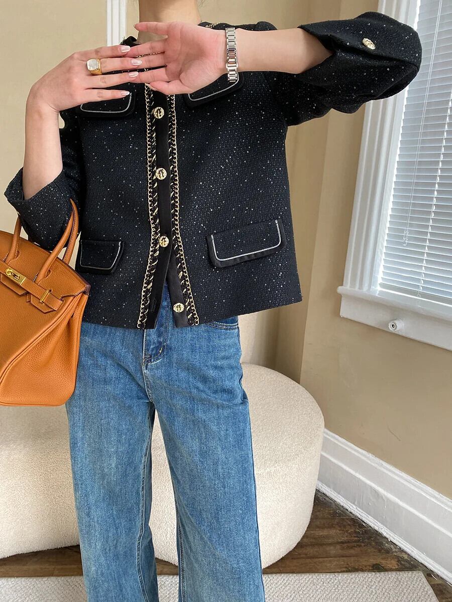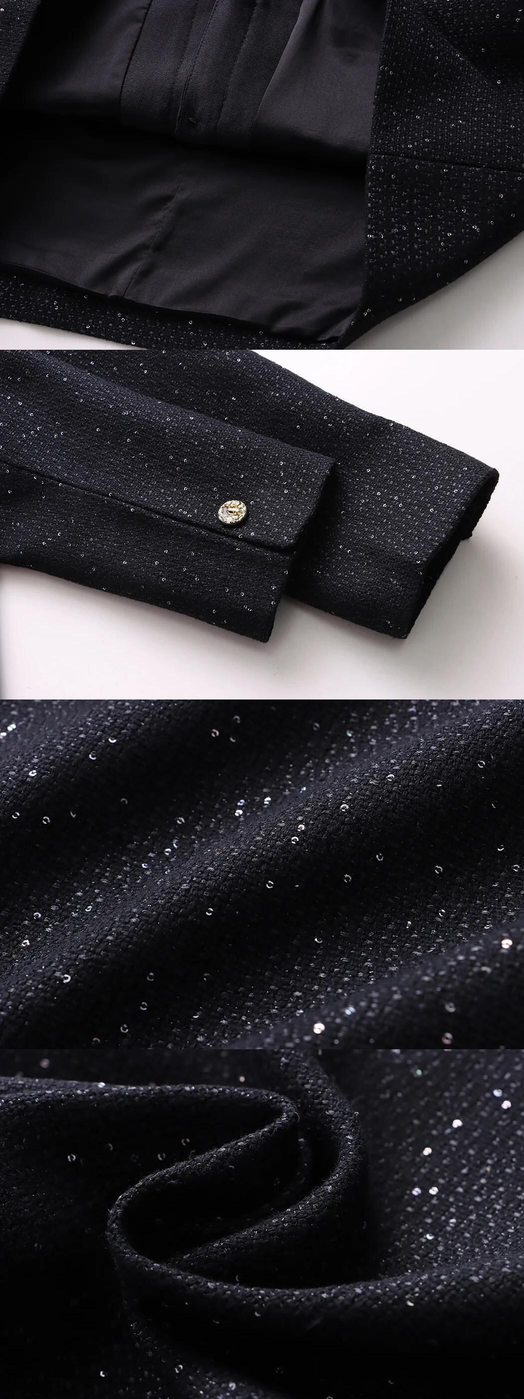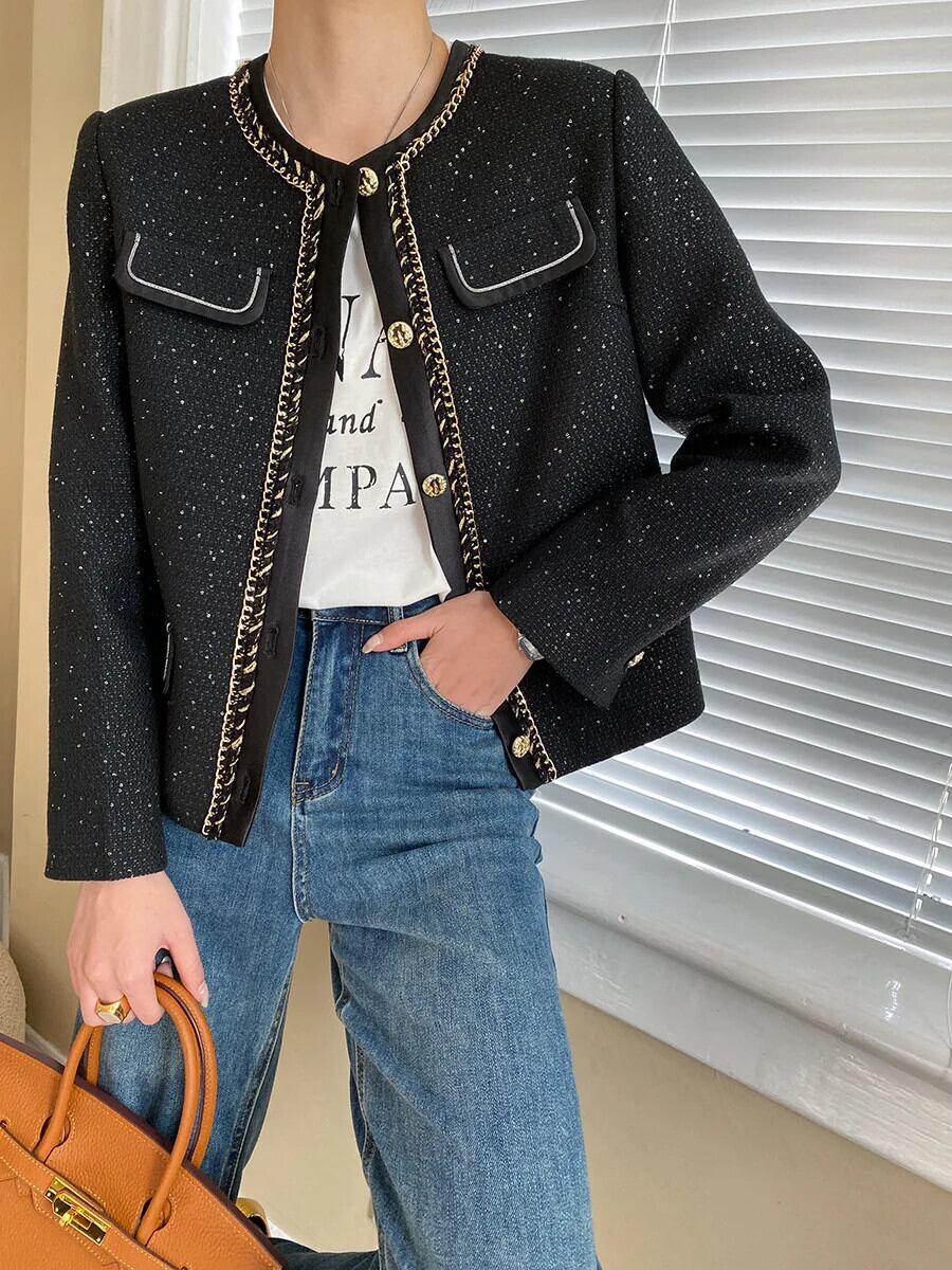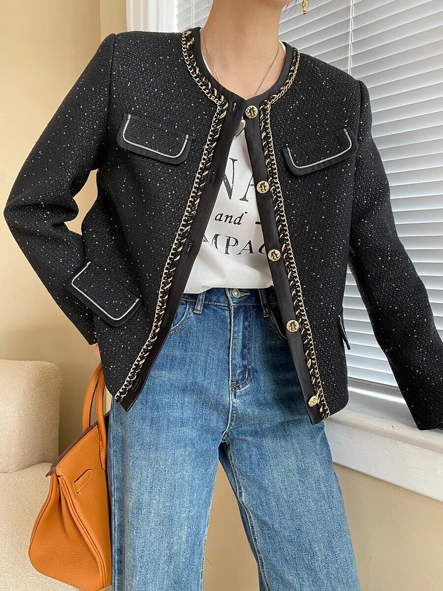 シングルボタンツイードジャケットコート長袖ブラックスパンコール生き抜く ロング