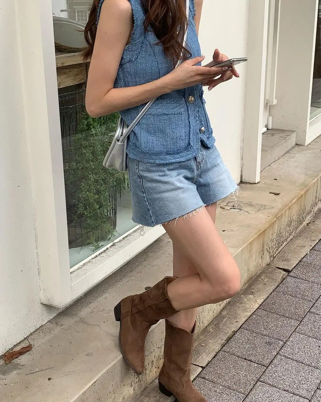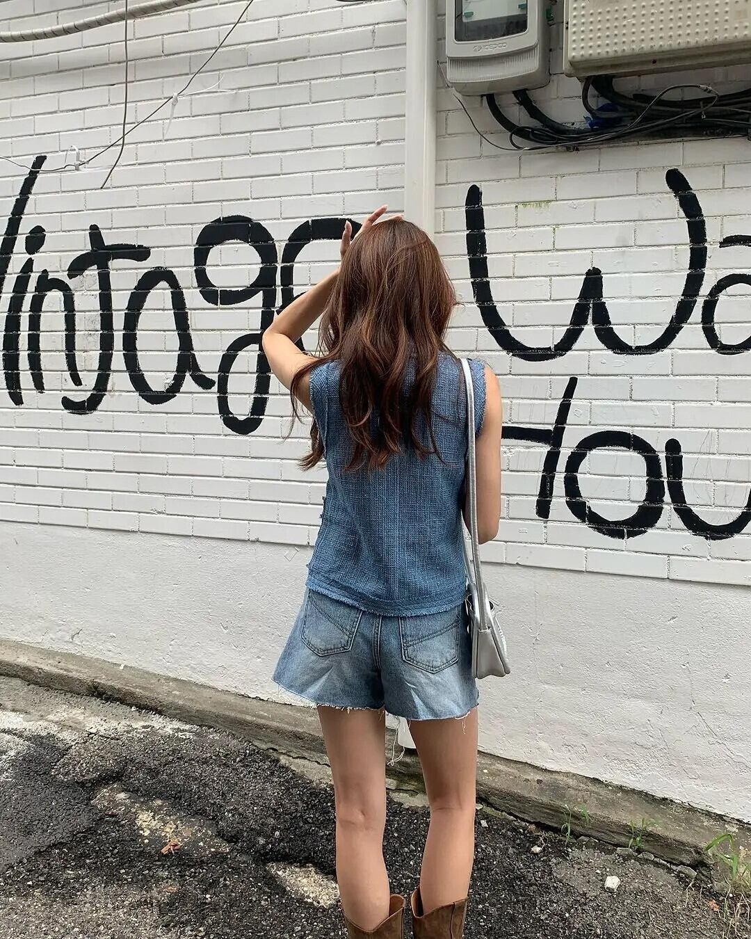 夏レトロ気質 V ネックシックメタルボタンルーズノースリーブベストトップ サマー 夏物 Vネック