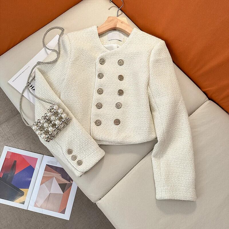 フレグランス コート レディース 秋 ダブル ブレスト レトロ Casaco ツイード ジャケット Chaquetas Abrigo オータム 秋物