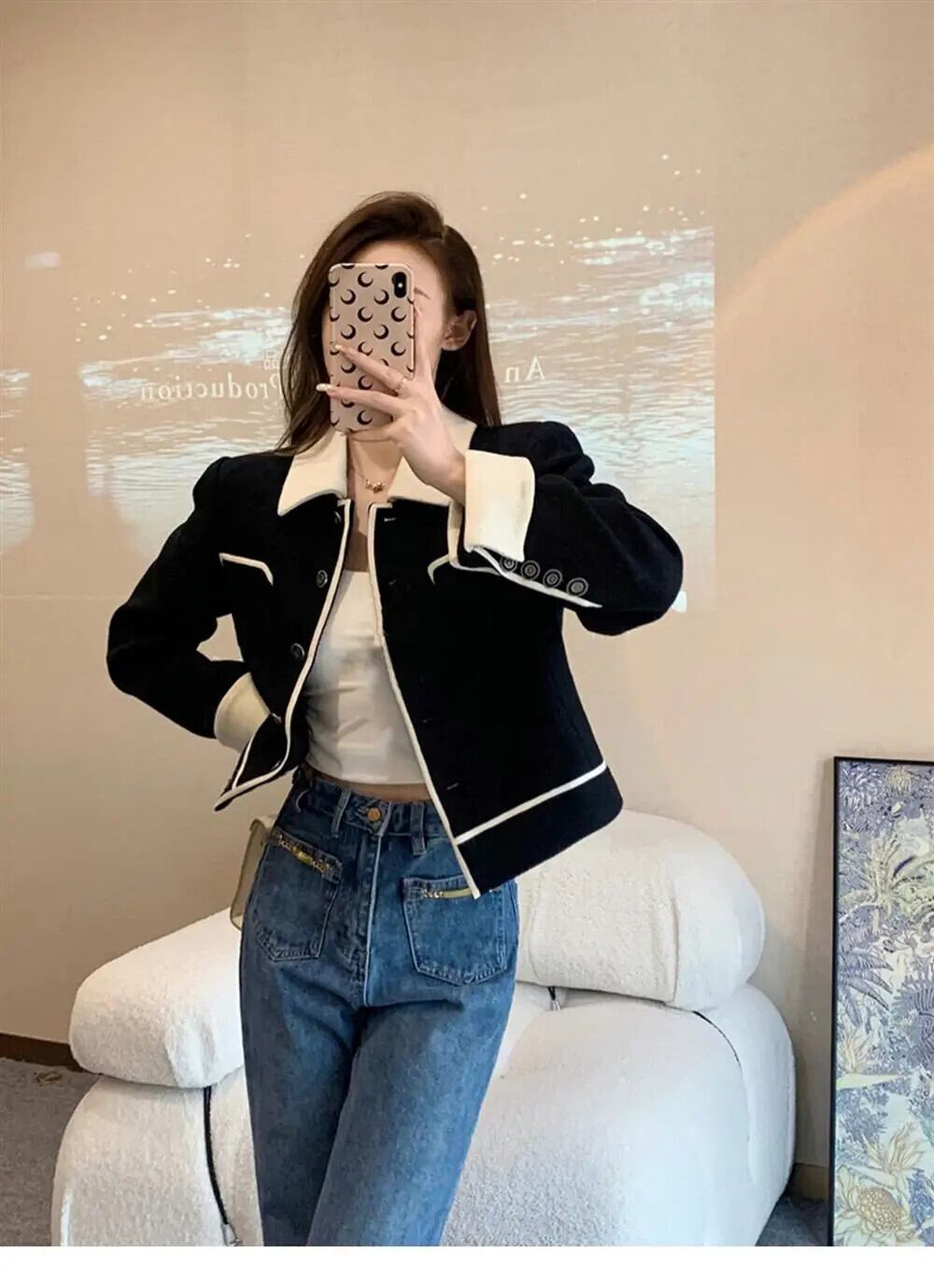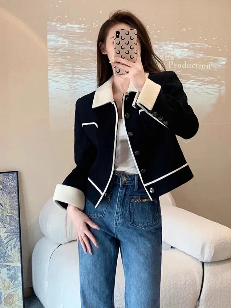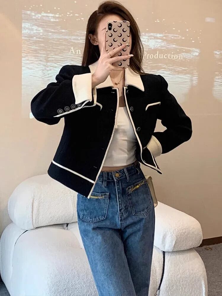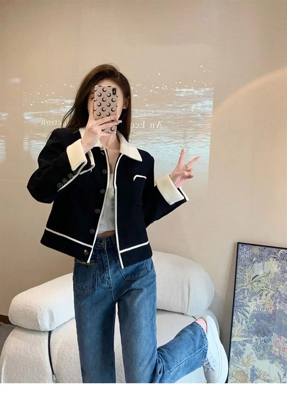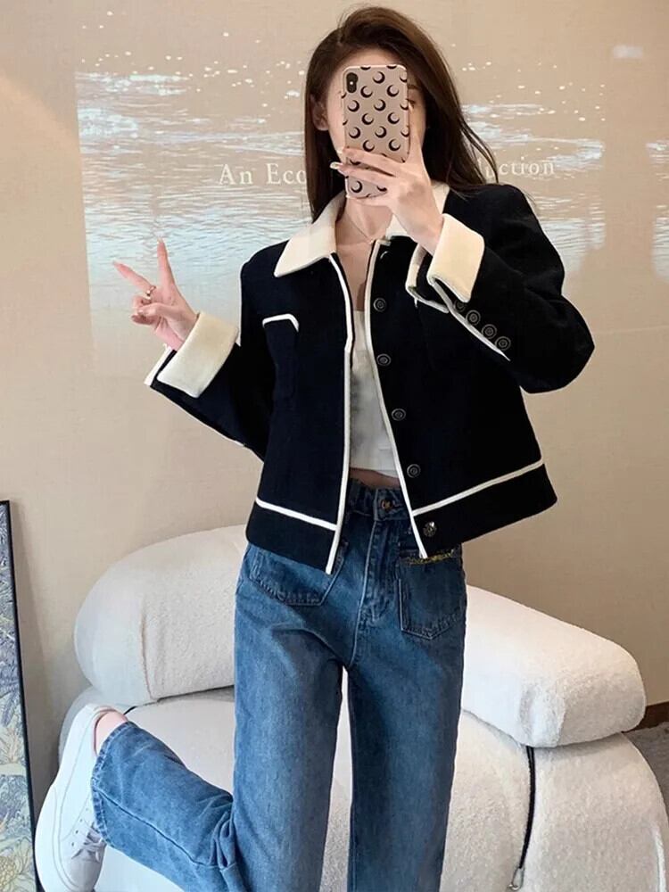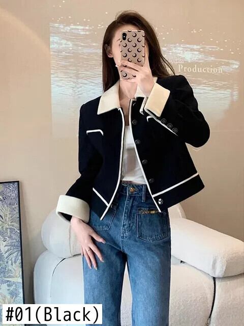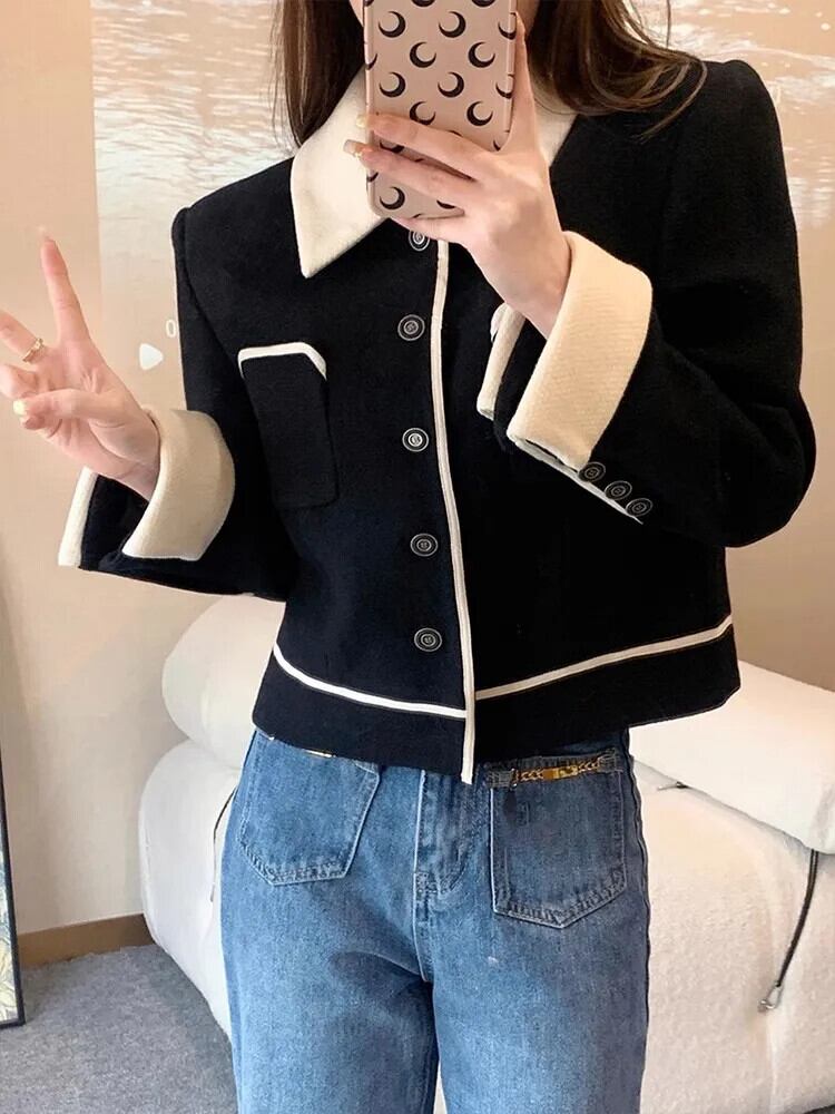 黒香りコート春秋ルーズブレザー ブラック スプリング 春物 オータム 秋物