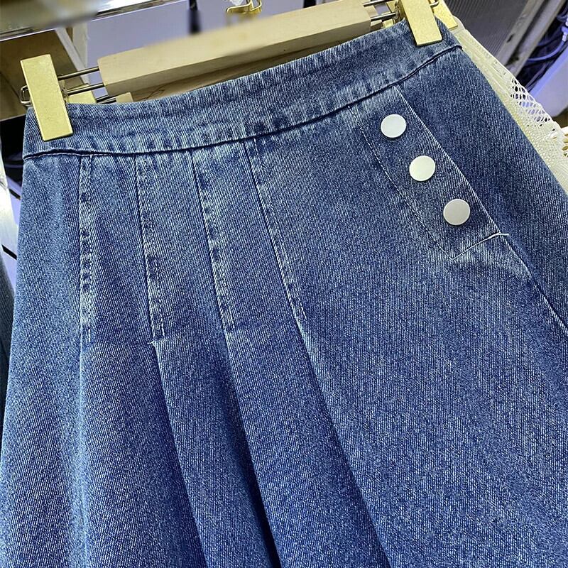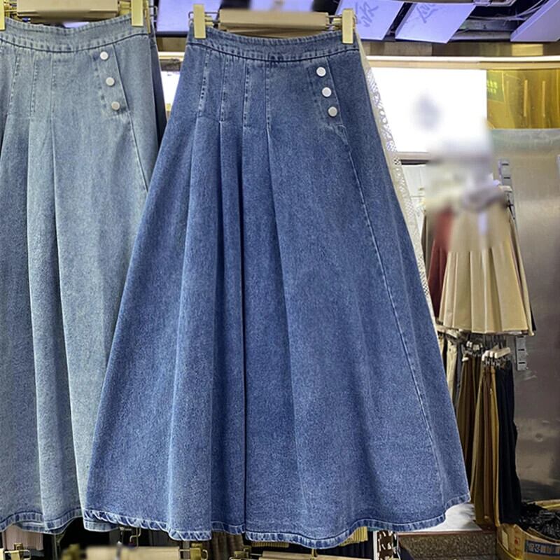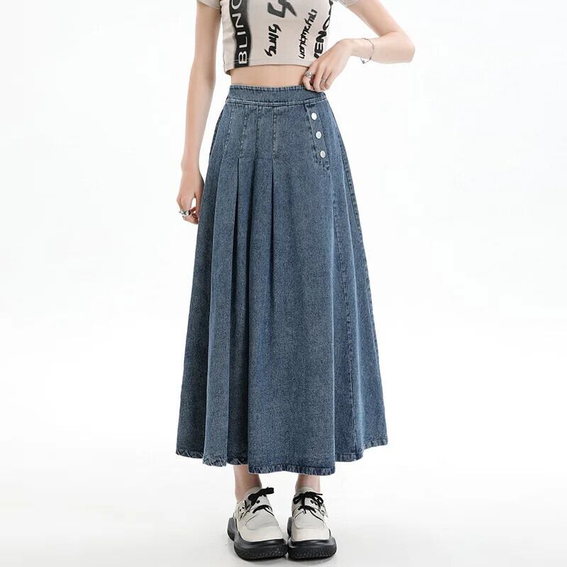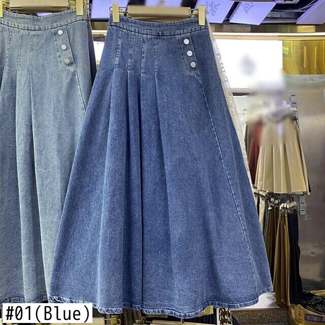 2024 春夏ロングウエストゴムデニムスカートレディース A ライン エラスティック 伸縮 スプリング 春物 サマー 夏物 Aライン