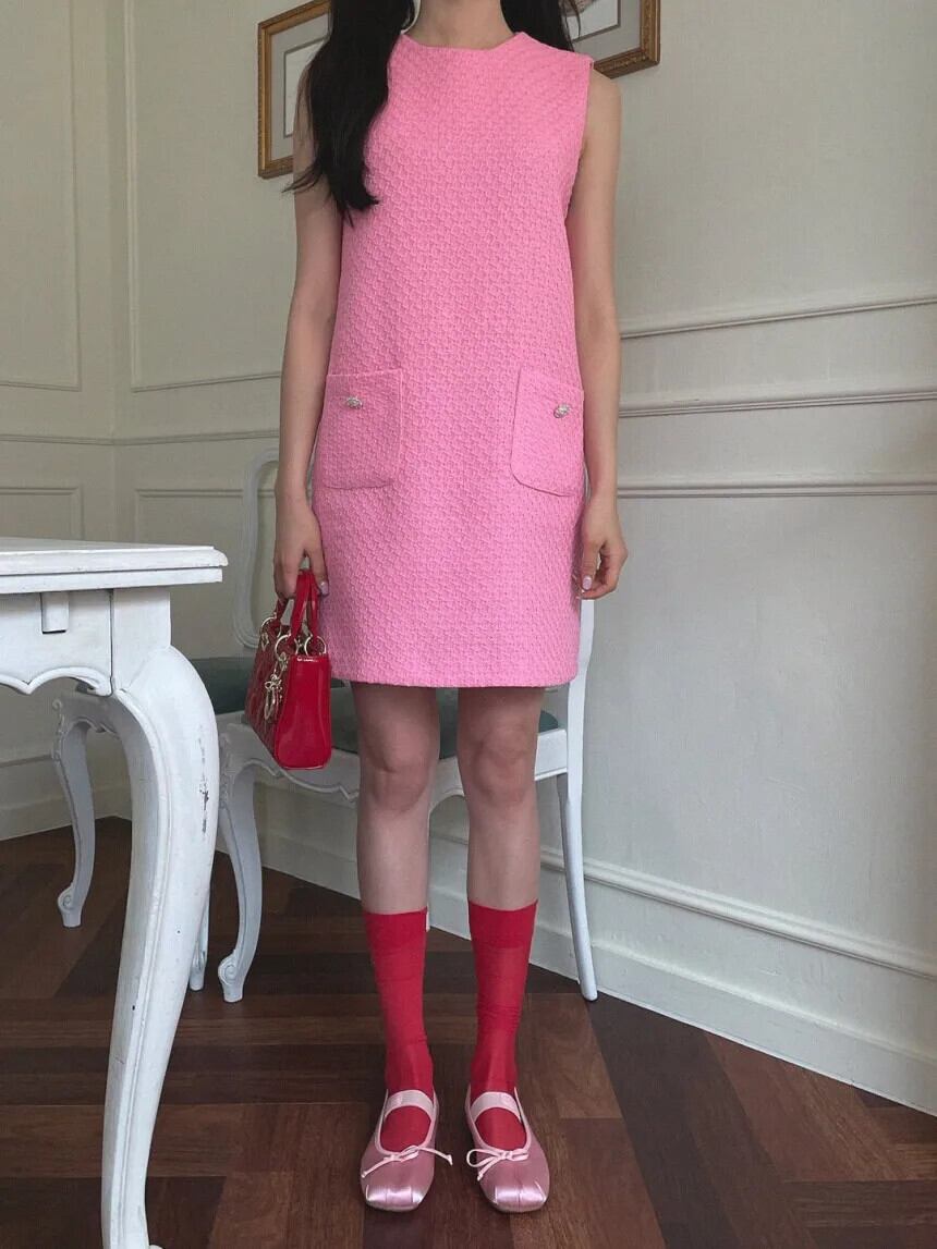 夏ルーズストレートチューブピンク粗いタンクトップドレス サマー 夏物