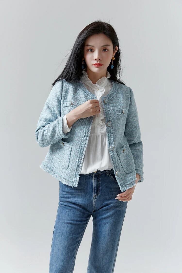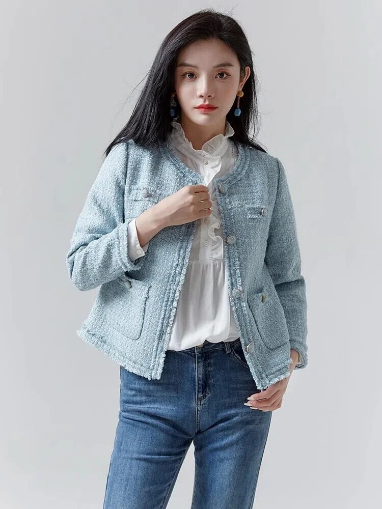 気質セレブツイードシングルブレストコート秋レトロジャケットアウター オータム 秋物