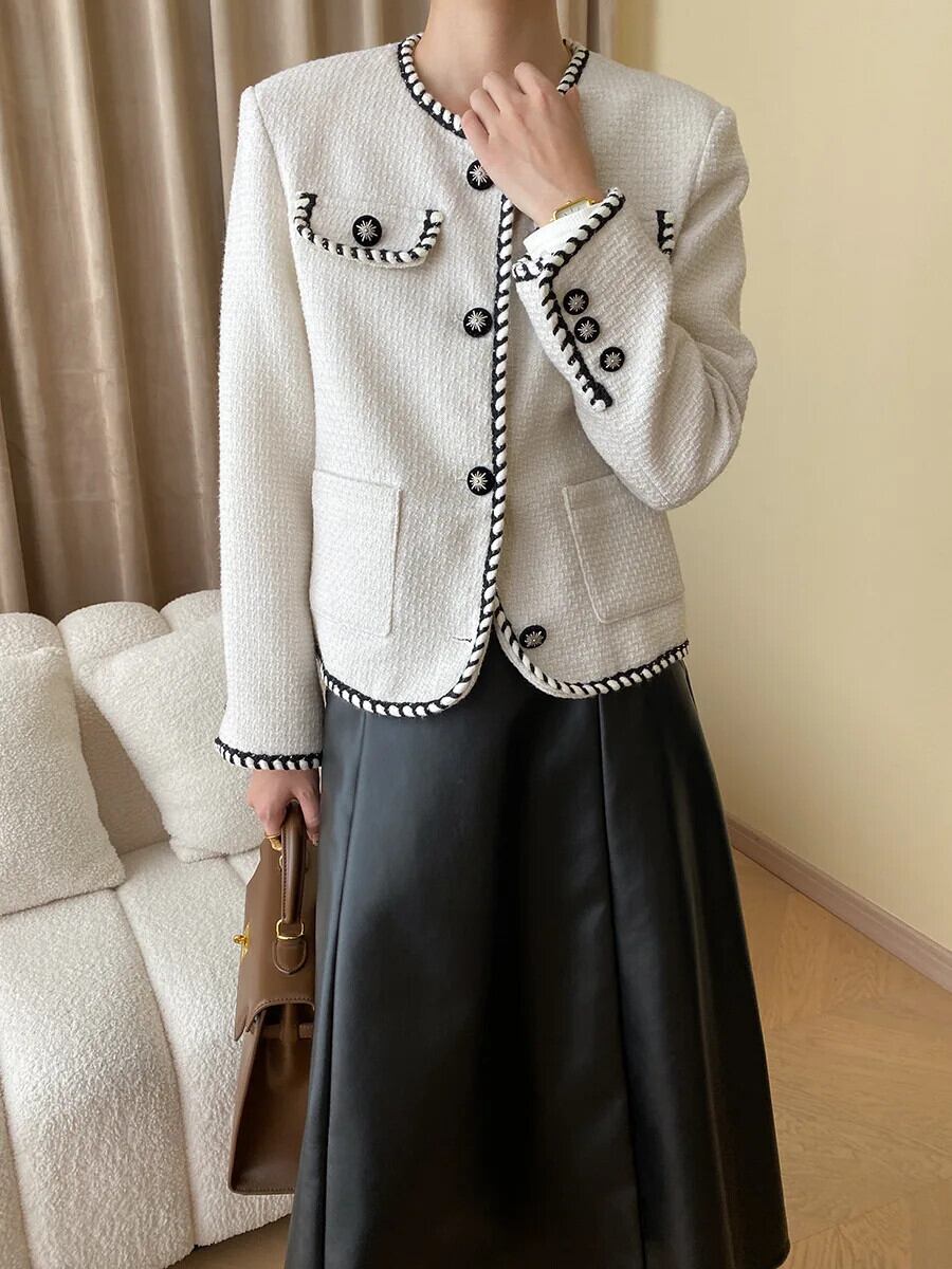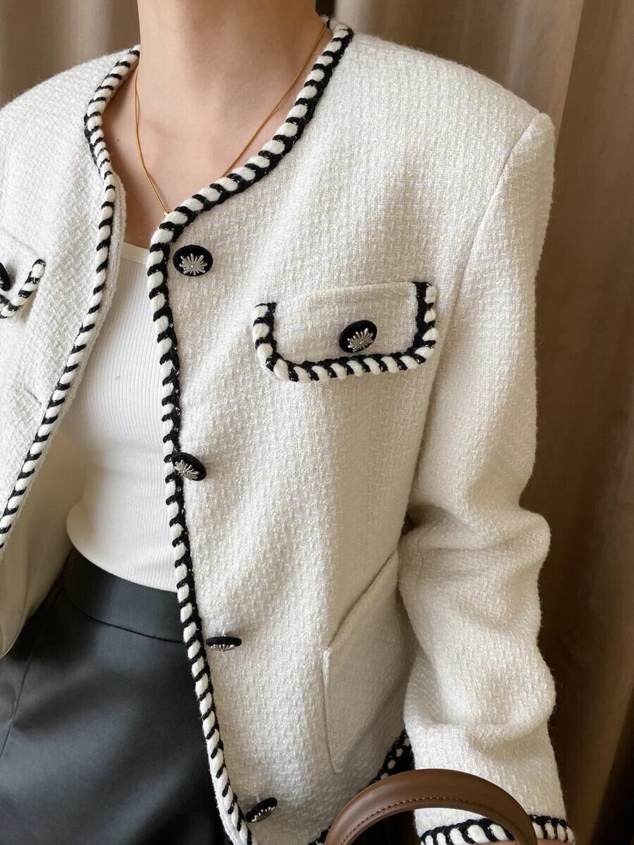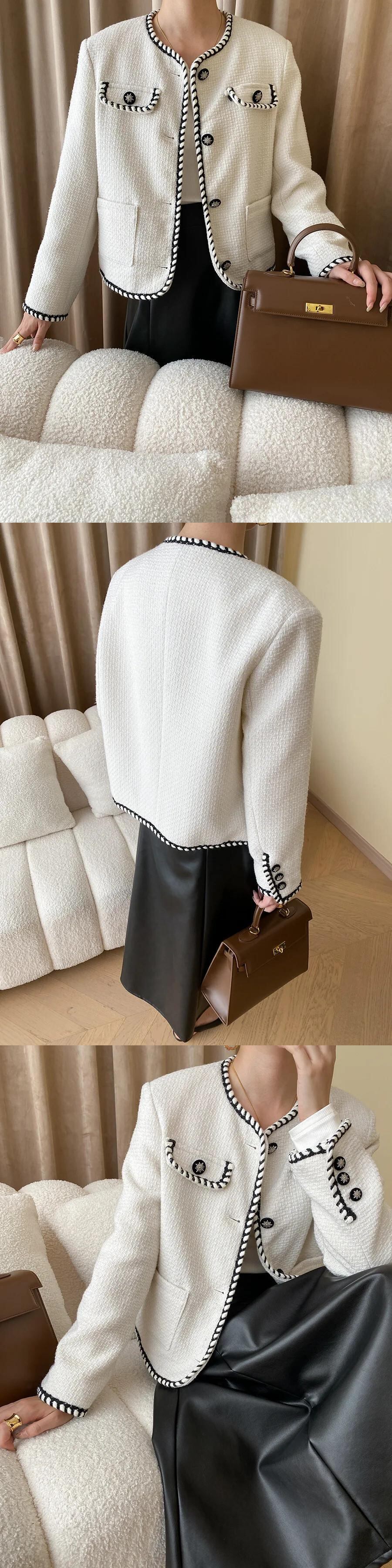 秋ラウンドネック気質フレグランスツイードジャケットスウィートシックショートコートアウター 大人ガーリー キュート カジュアル オータム 秋物 Oネック
