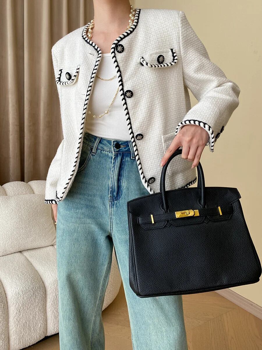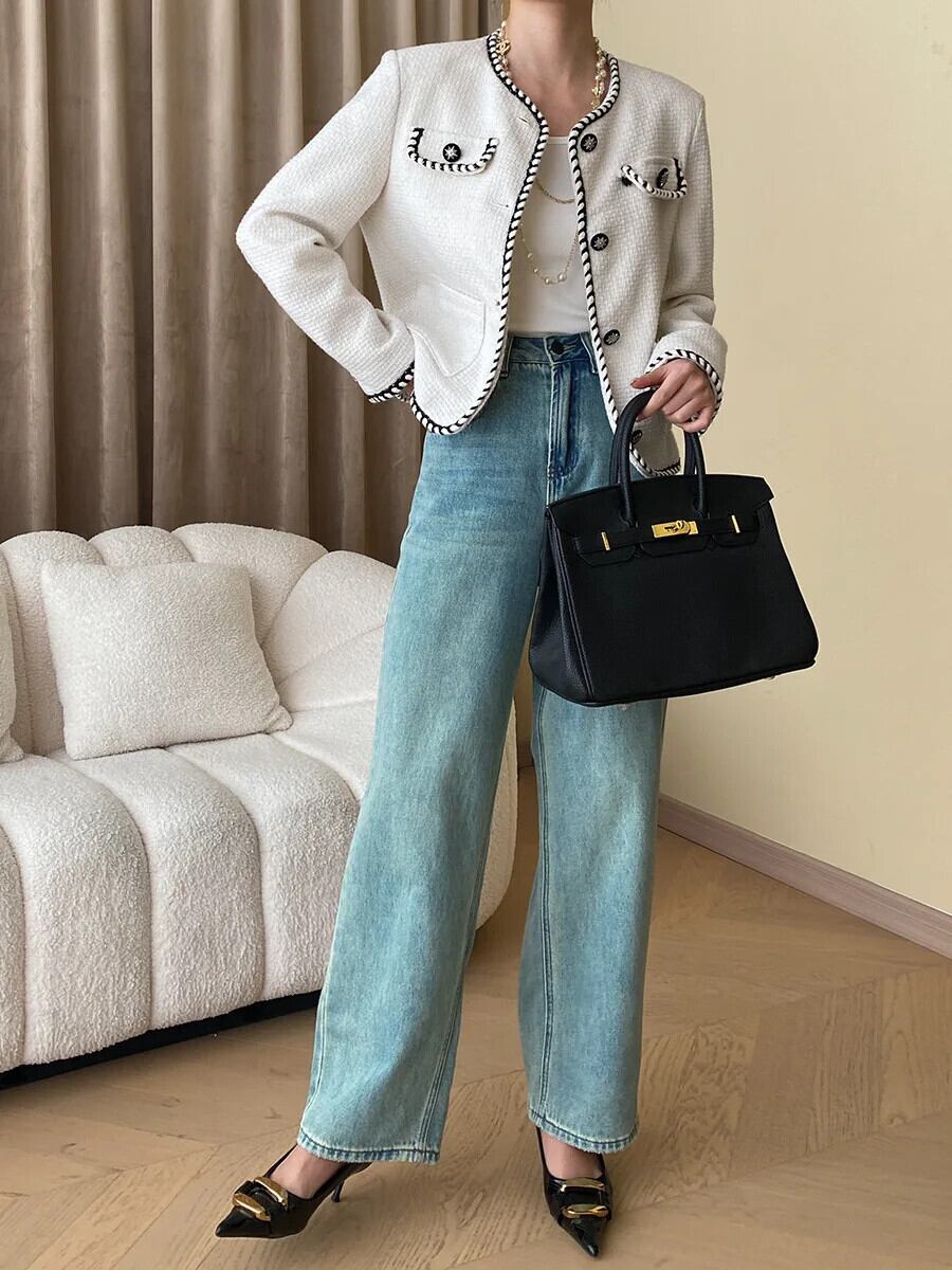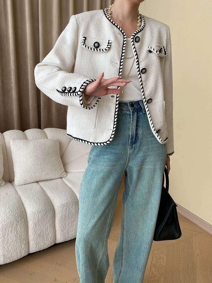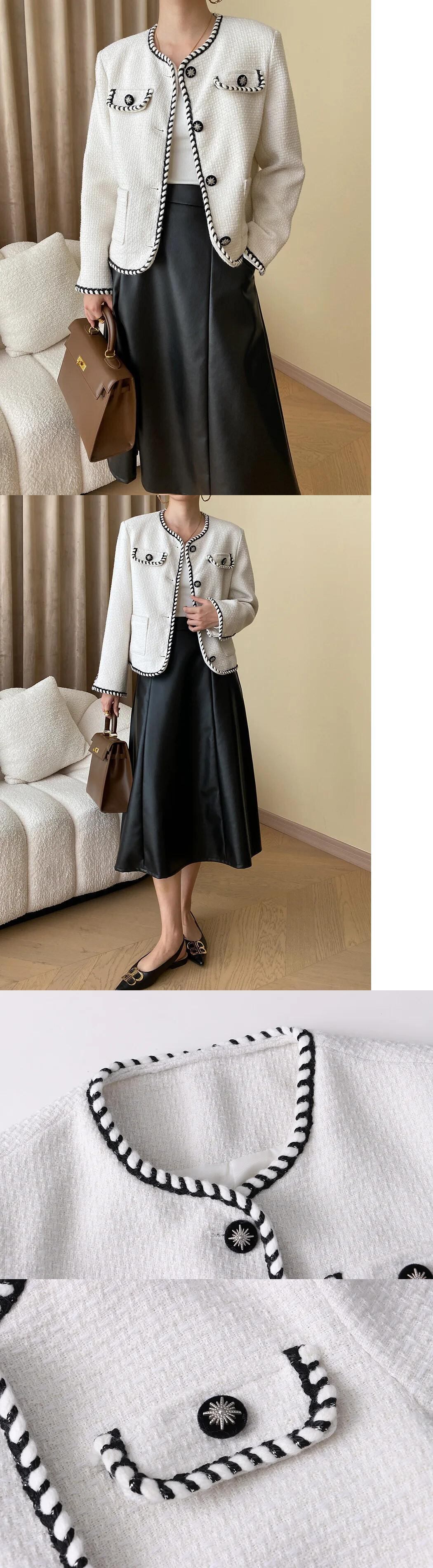 秋ラウンドネック気質フレグランスツイードジャケットスウィートシックショートコートアウター 大人ガーリー キュート カジュアル オータム 秋物 Oネック