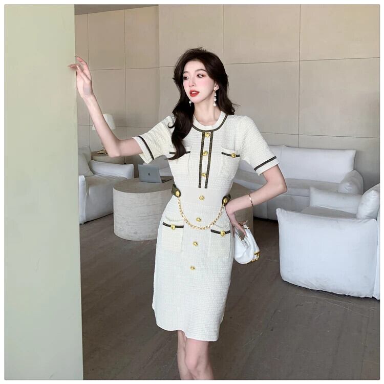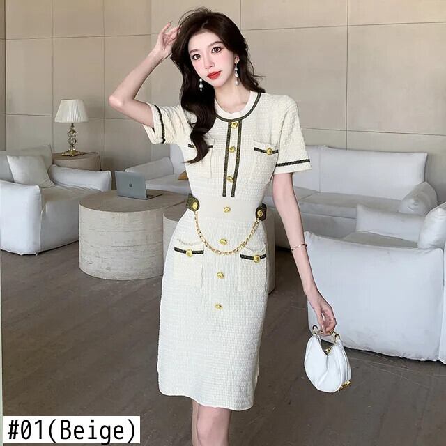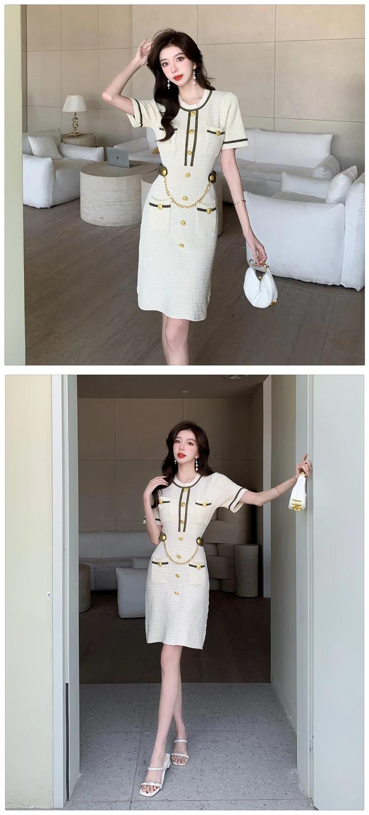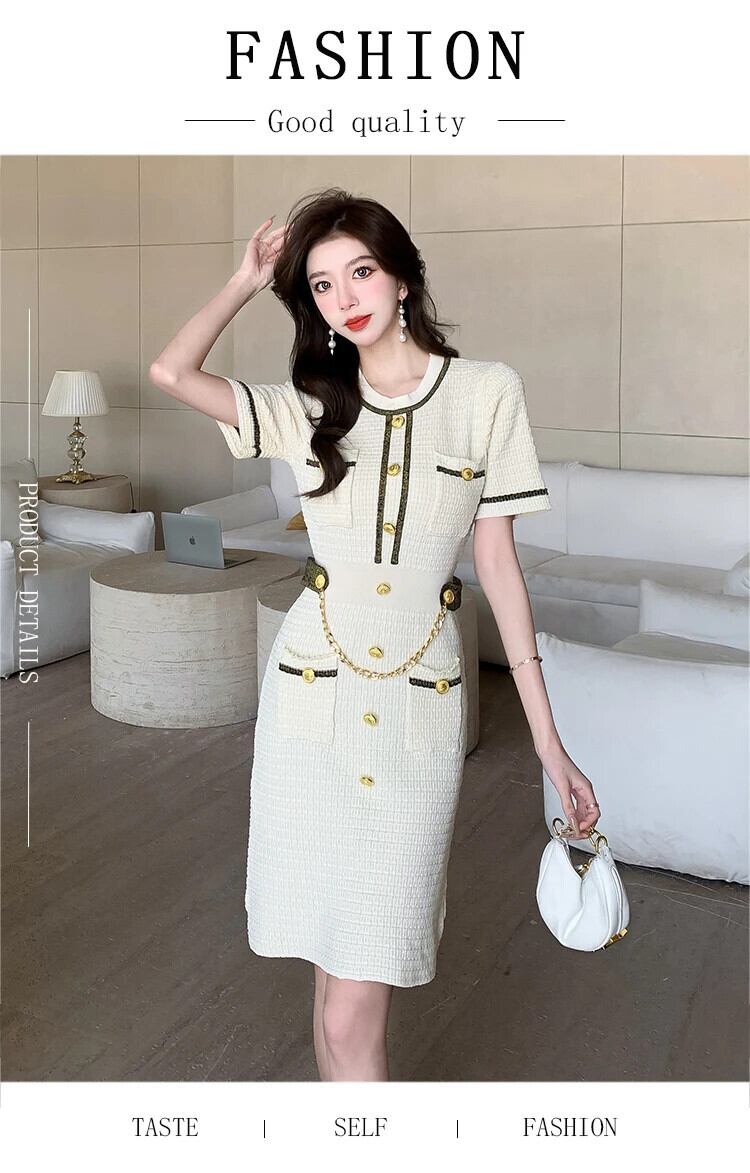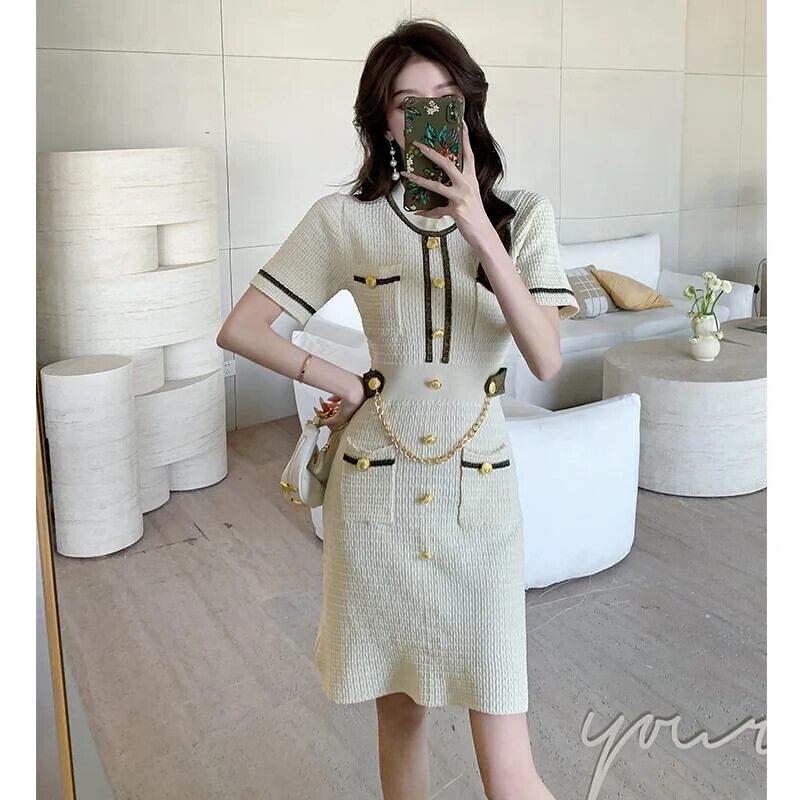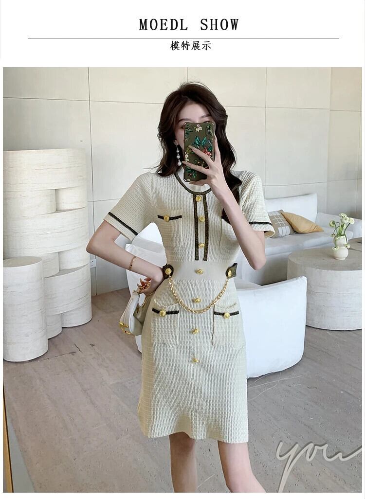 グリーンブラックベージュサマー半袖ニットドレスレディース ショート ハーフスリーブ 夏物