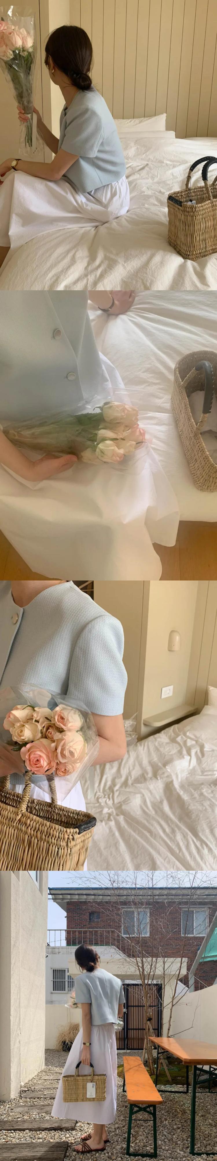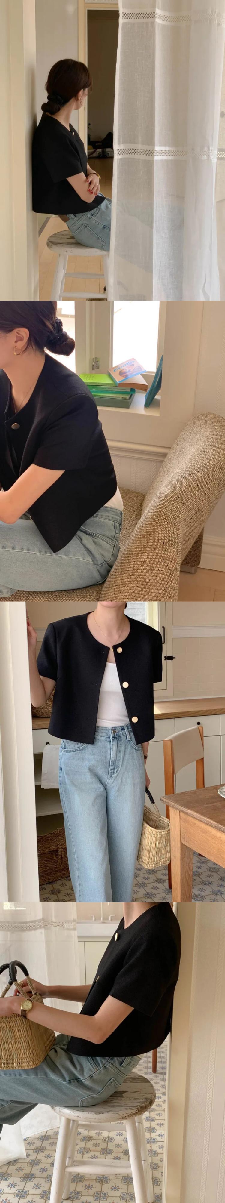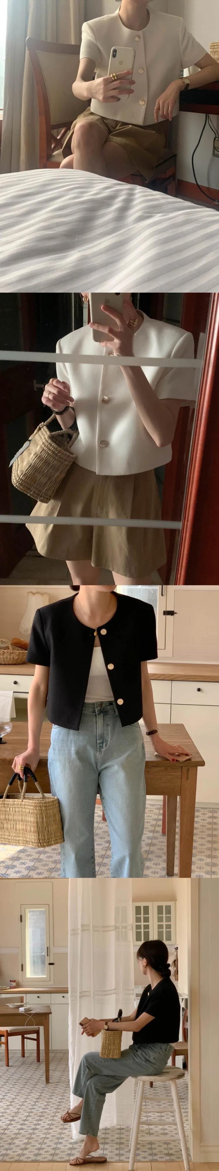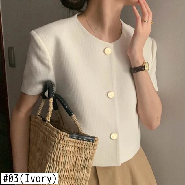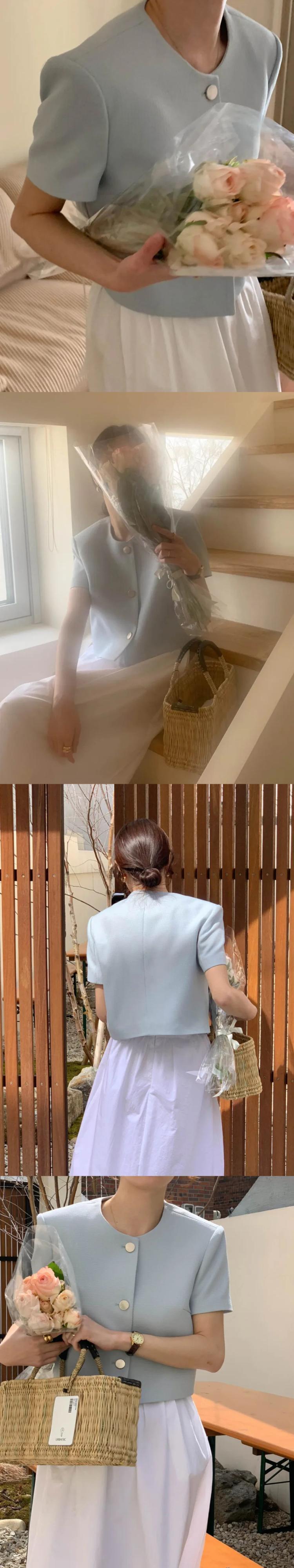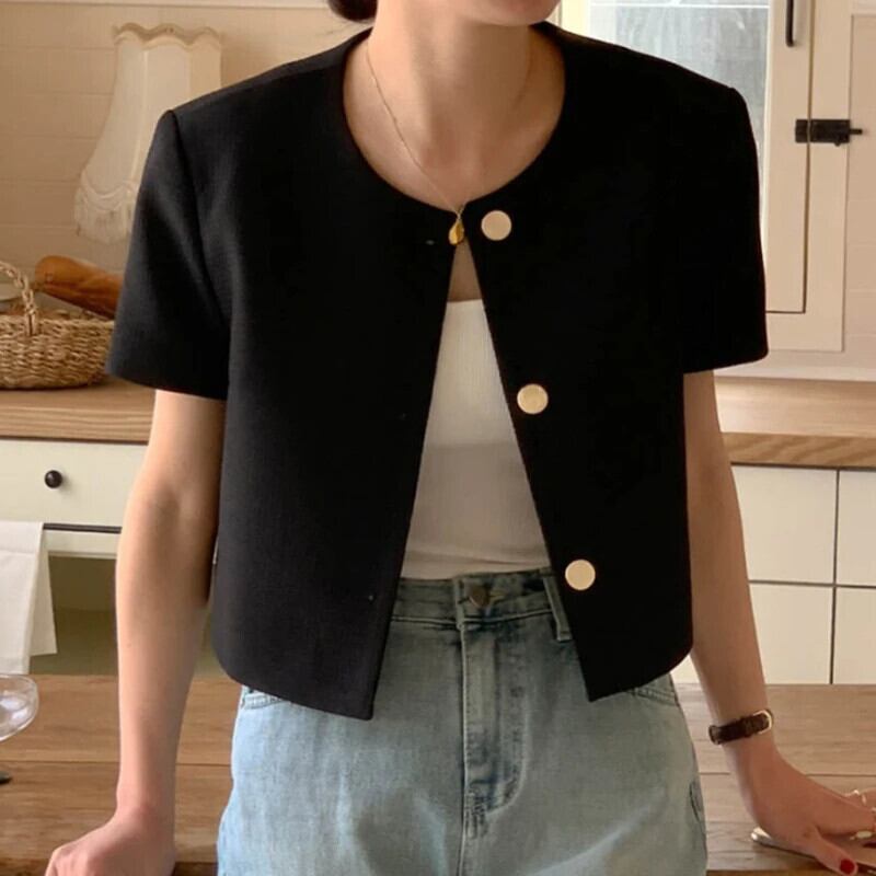 夏スタイル香りよいラウンドネックシングルブレストルーズバブルスリーブショートコートジャケット サマー 夏物 Oネック