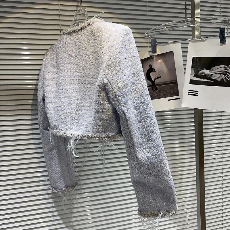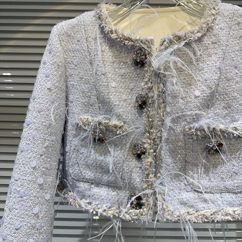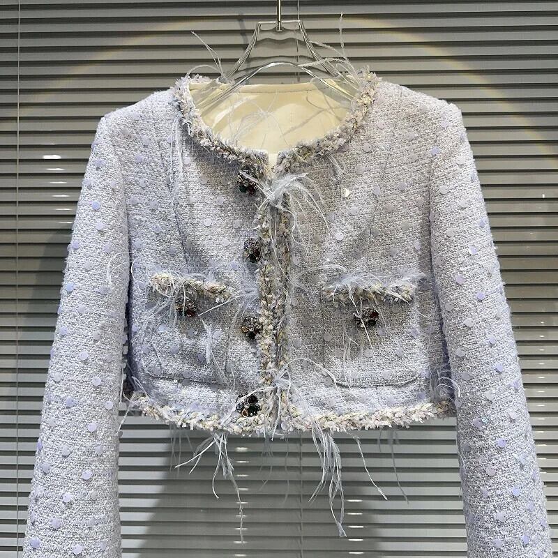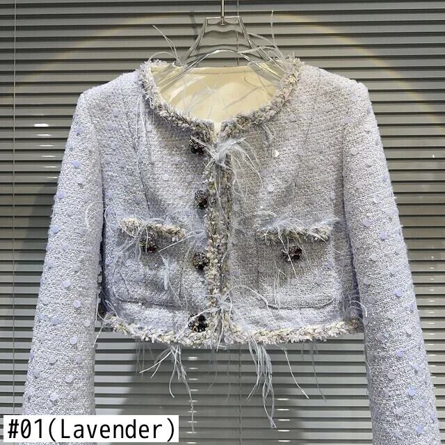 秋冬香りスタイルダイヤモンドバックルフェザースパンコール厚いツイードセレブショートコートガールジャケット オータム 秋物 ウィンター 冬物