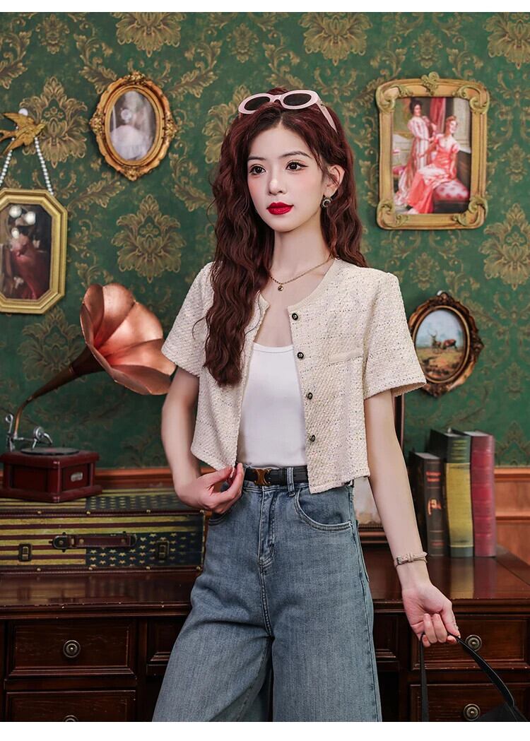 フレグランスジャケットレディース2024夏気質半袖コート ショート ハーフスリーブ サマー 夏物