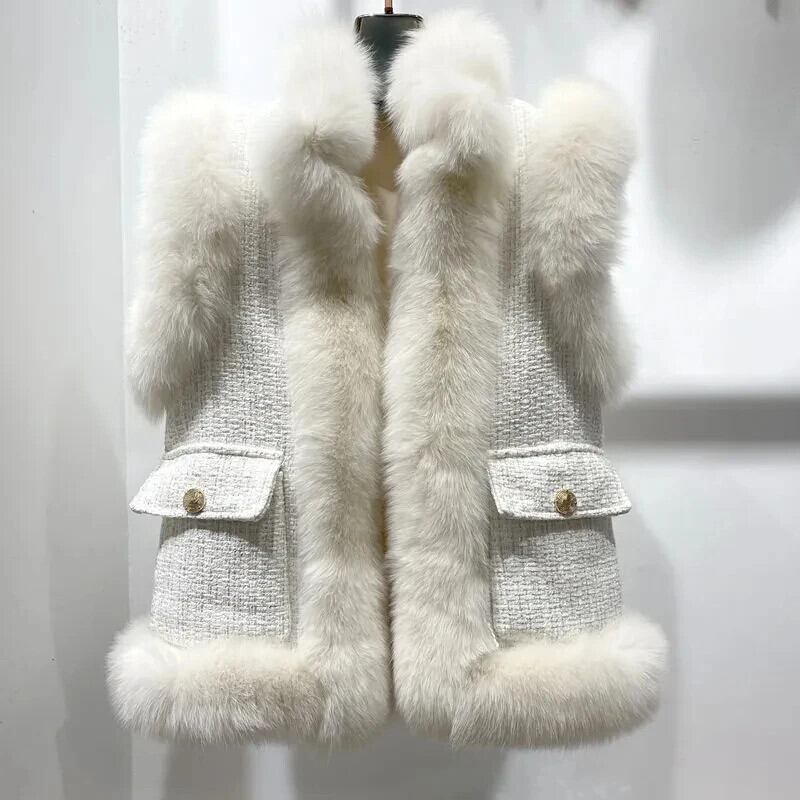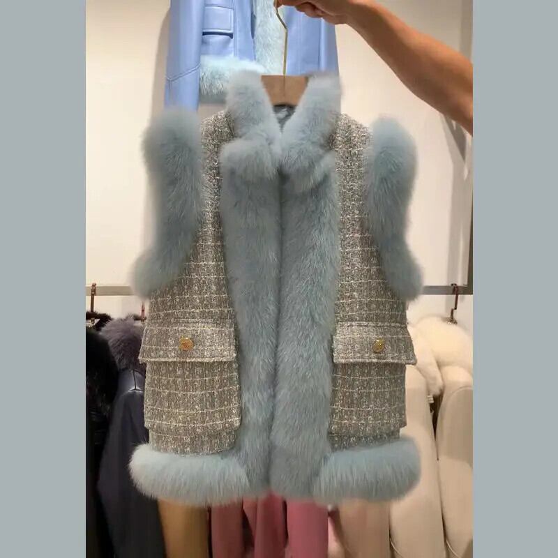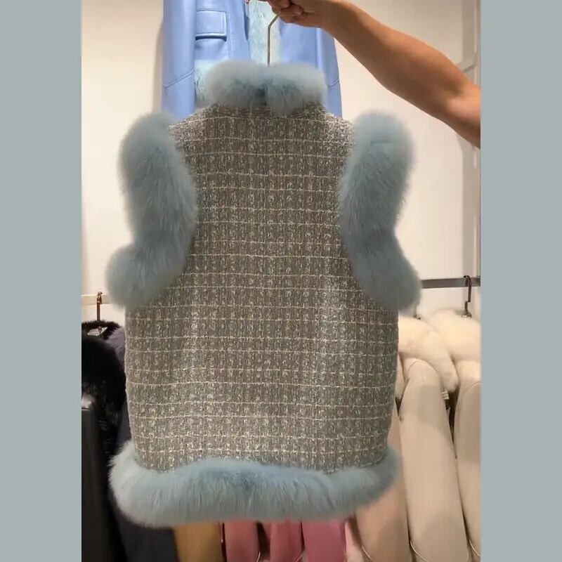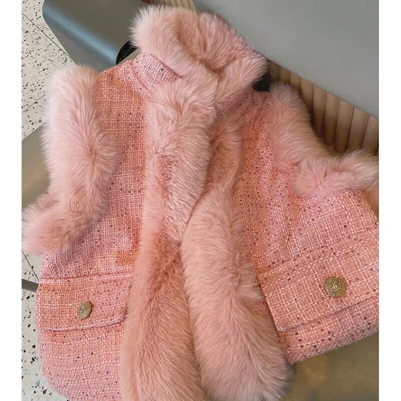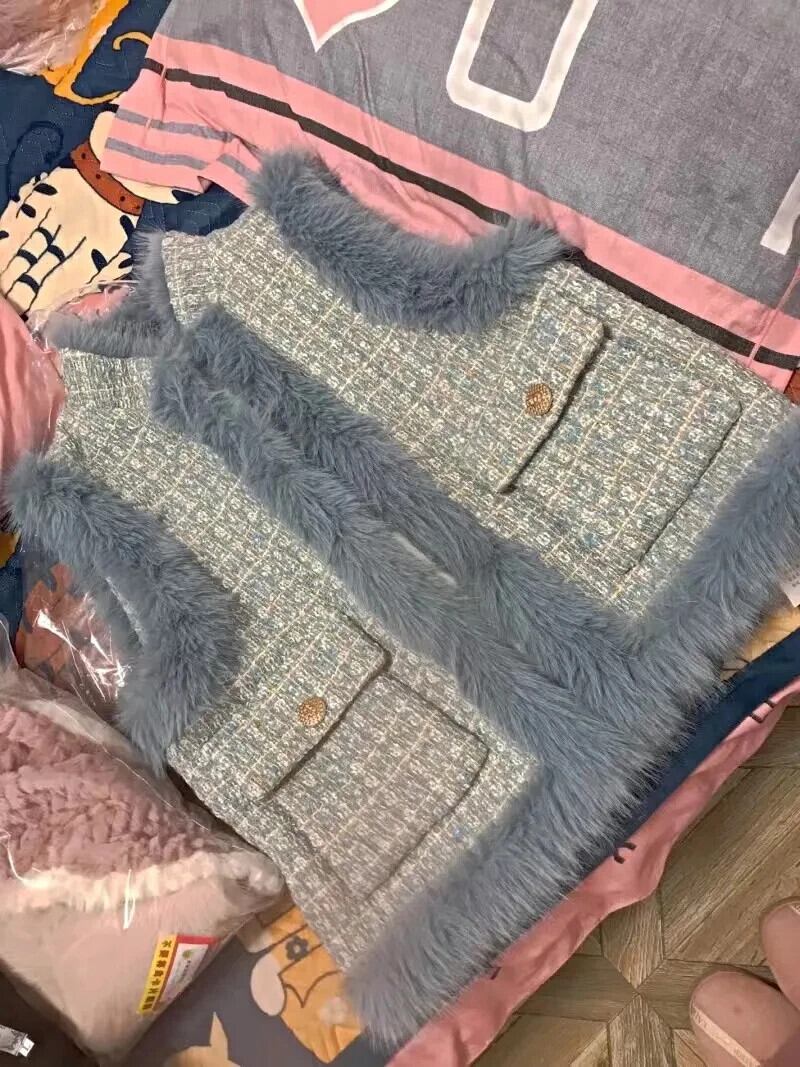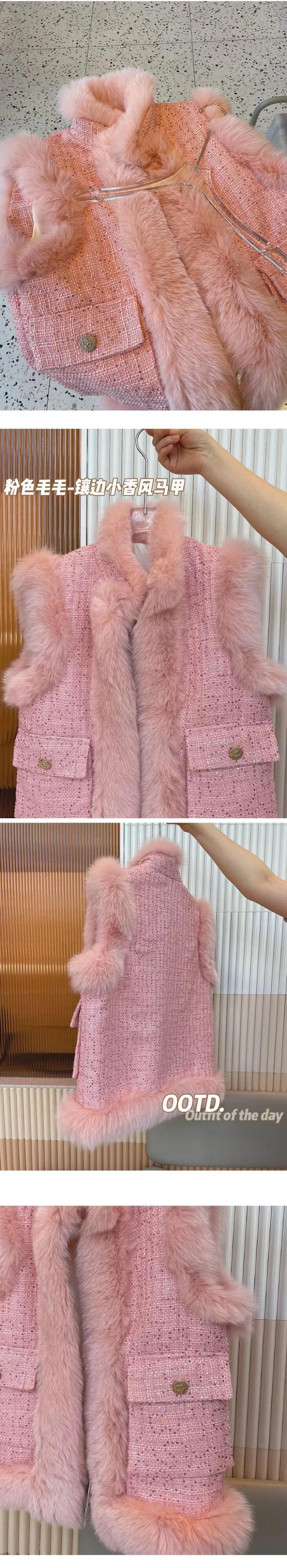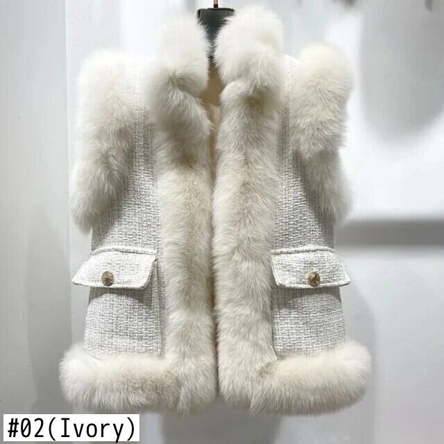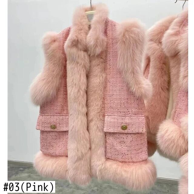 秋冬模造キツネ毛皮若いベストコート甘いピンクブルー白ワシットコート ホワイト 大人ガーリー スウィート キュート カジュアル オータム 秋物 ウィンター 冬物