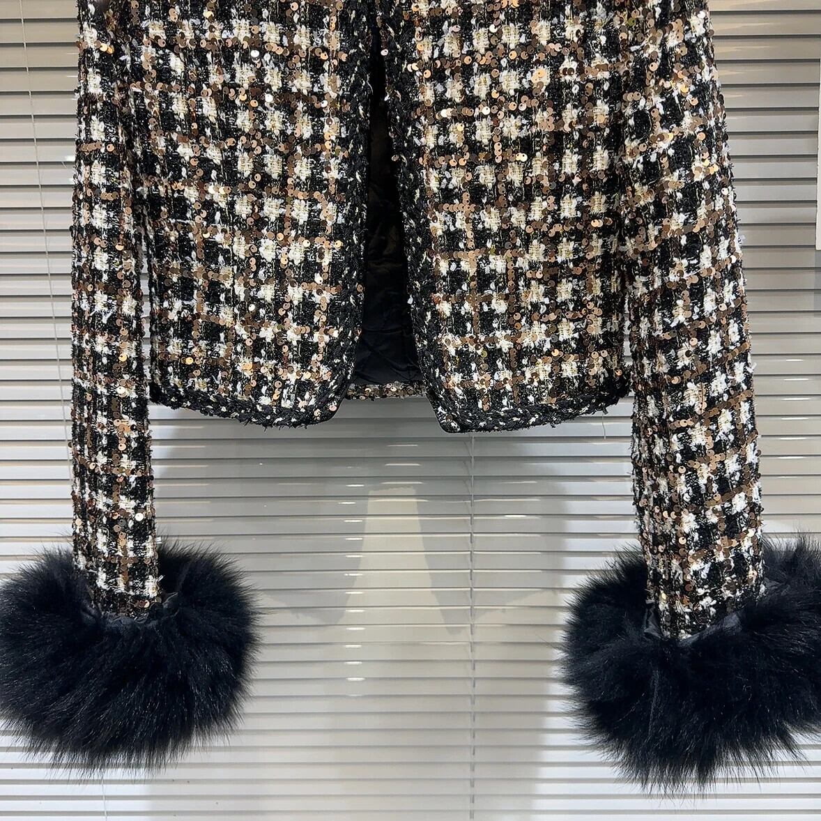 冬香りフォックスファー袖口スパンコールツイード気質コットンショートコートウールジャケット ウィンター 冬物