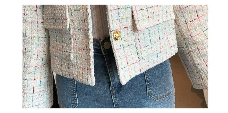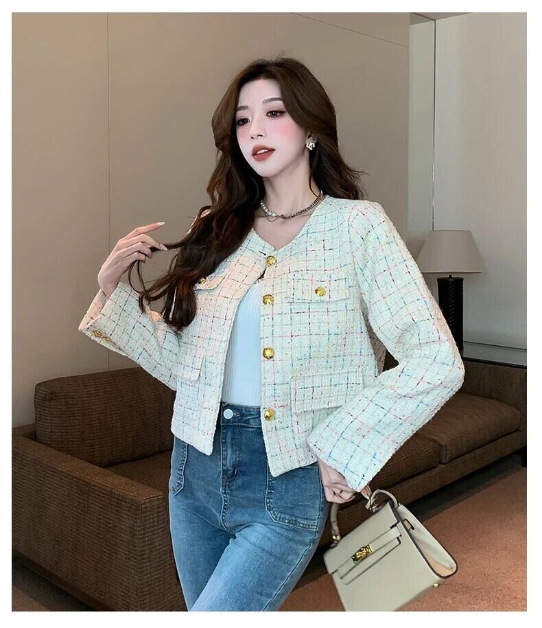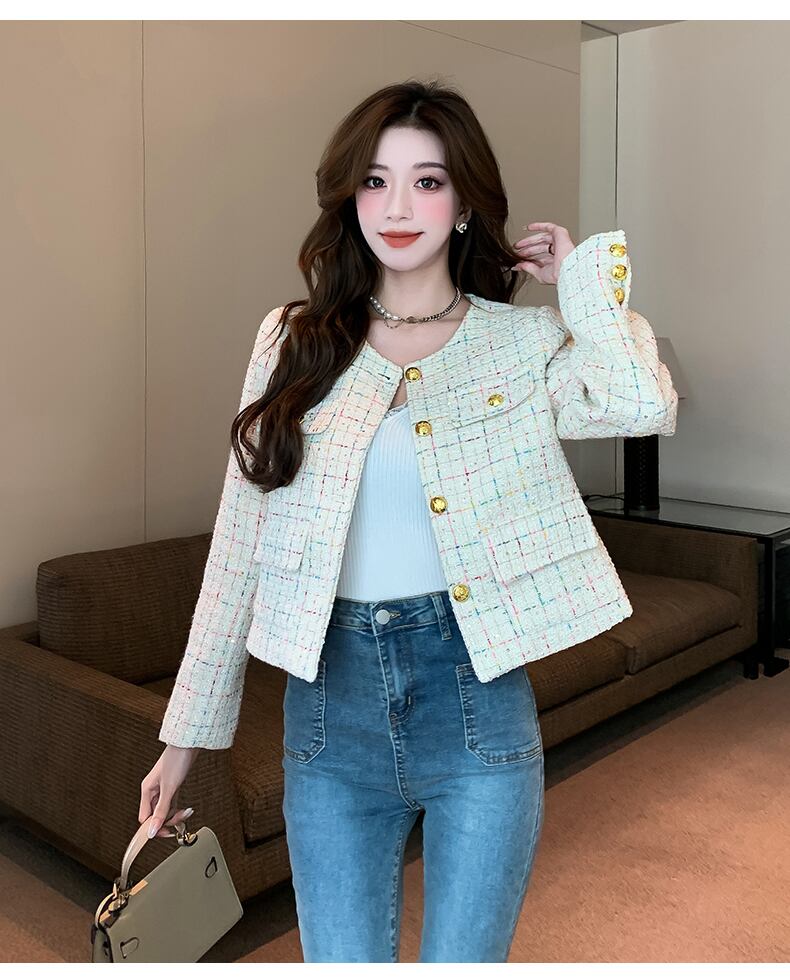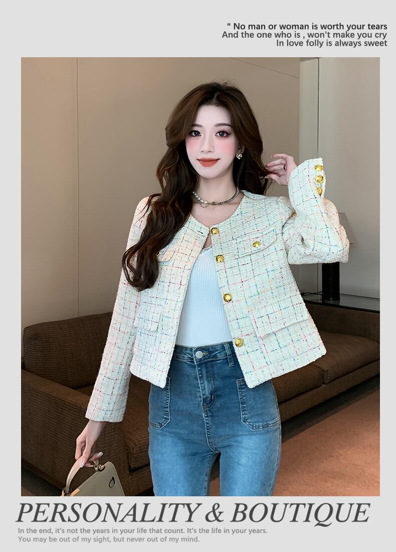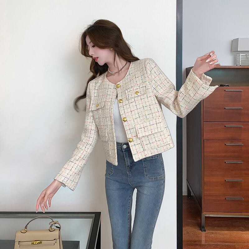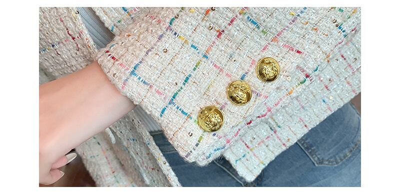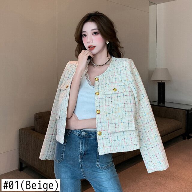 秋冬可能香りゴールドウィービングブロックカラー有料厚いツイードコートジャケット オータム 秋物 ウィンター 冬物