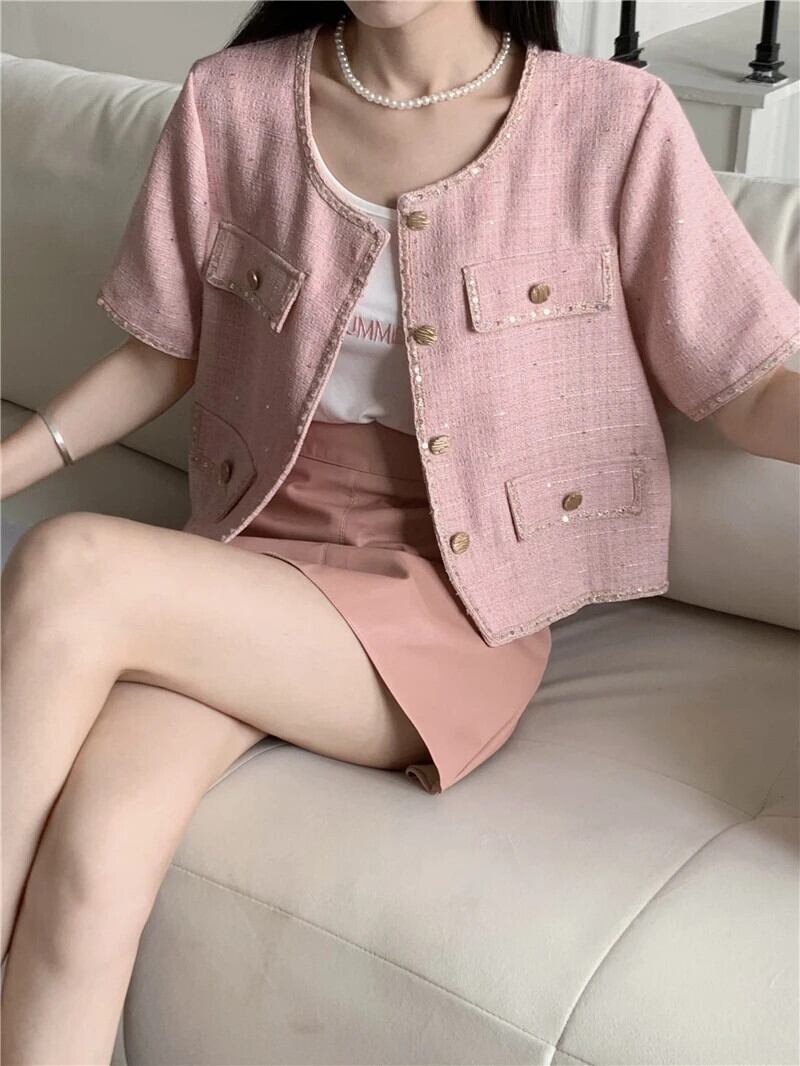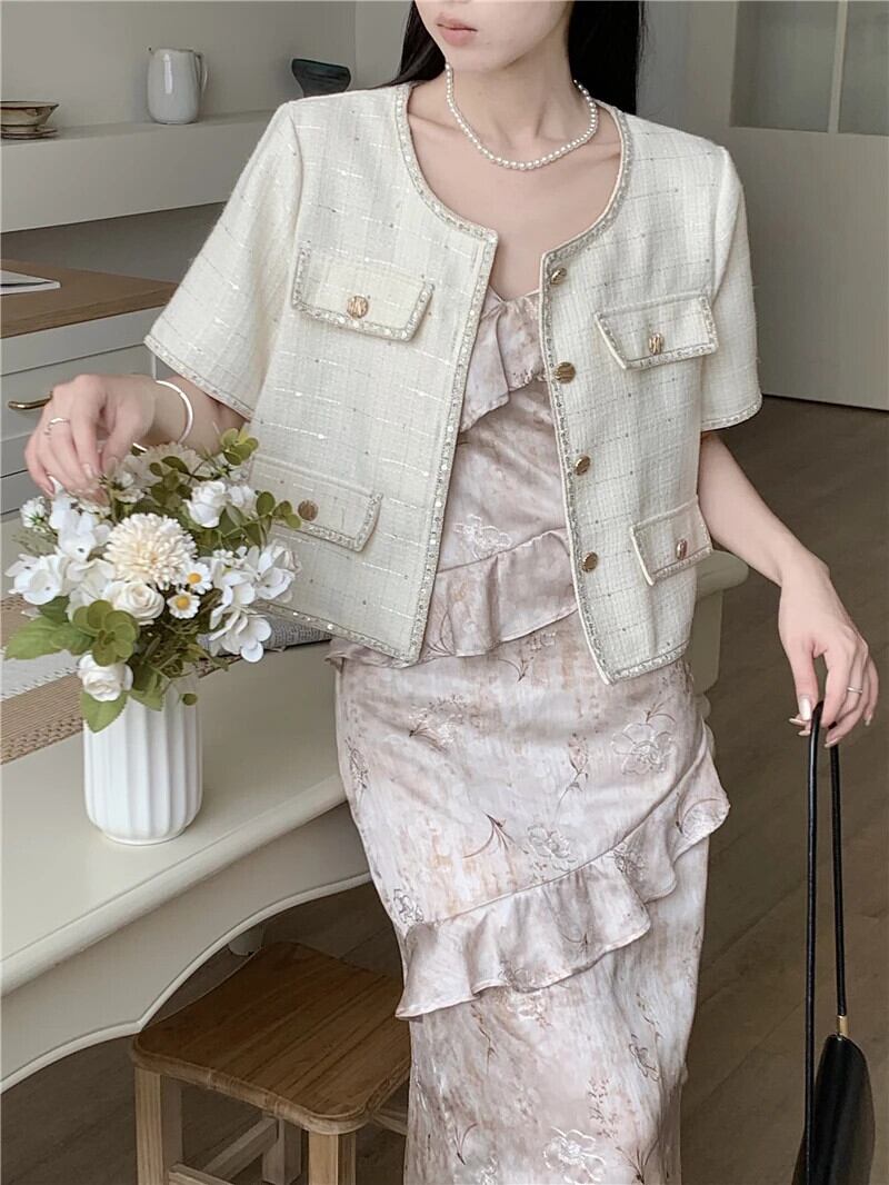 2024 春夏シックレトロショートフレグランスカーディガンジャケットコート スプリング 春物 サマー 夏物
