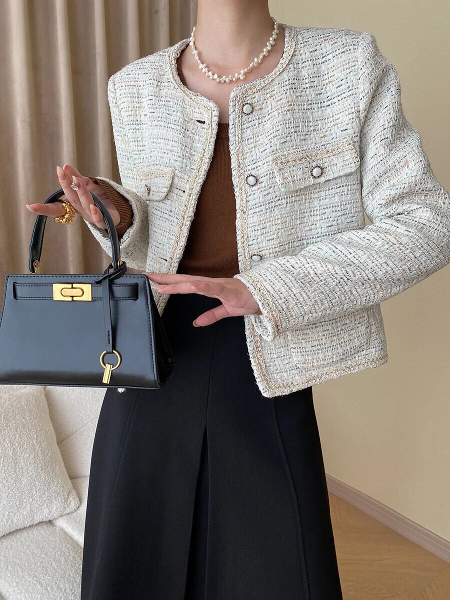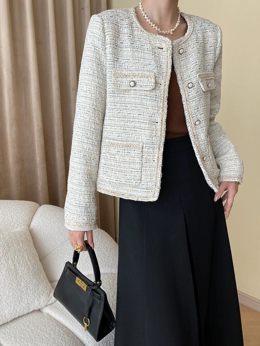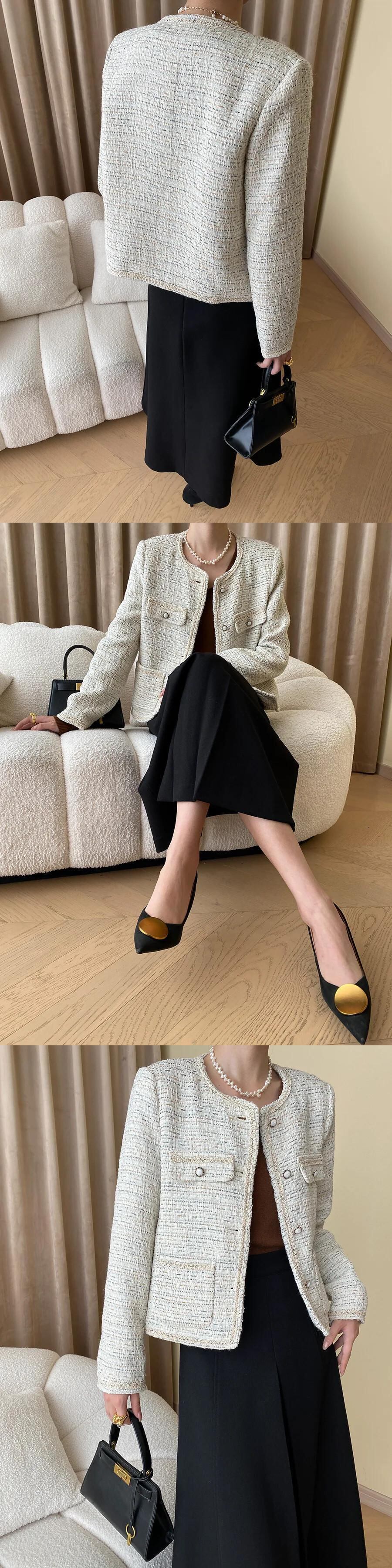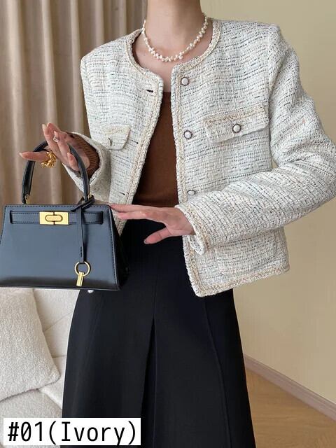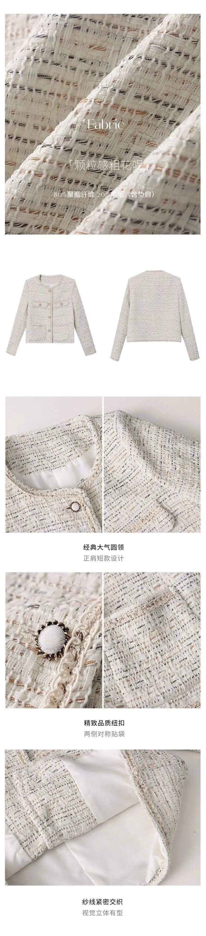秋冬レディース Clic ラウンドネック織柄フレグランスコートツイード生き抜くジャケット オータム 秋物 ウィンター 冬物 Oネック