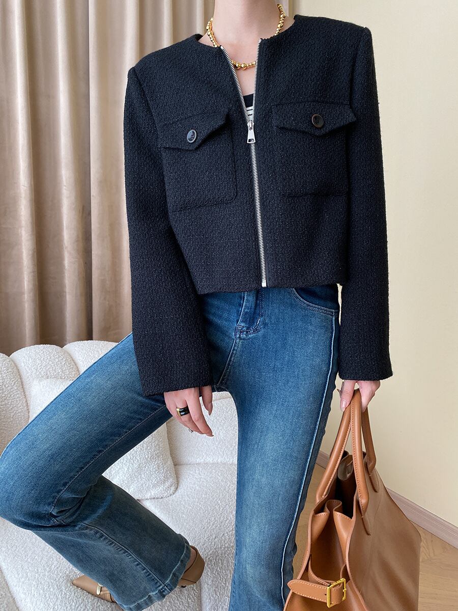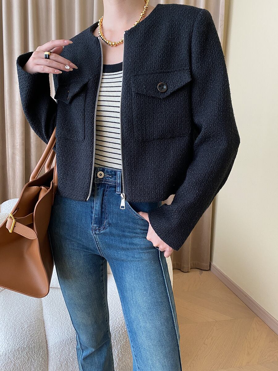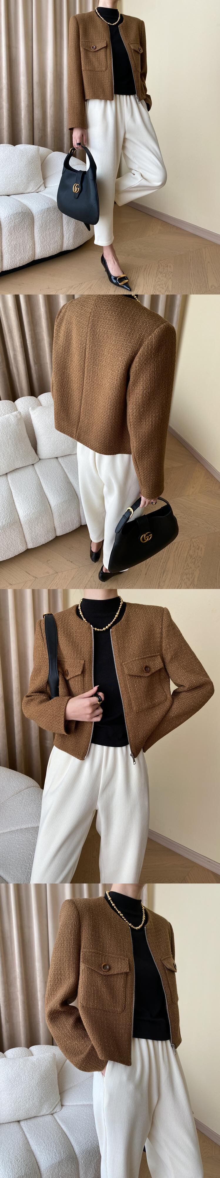 秋冬ラウンドネック気質ジッパーショートフレグランスコートジャケット オータム 秋物 ウィンター 冬物 Oネック