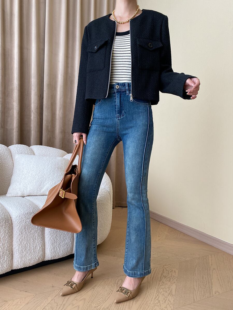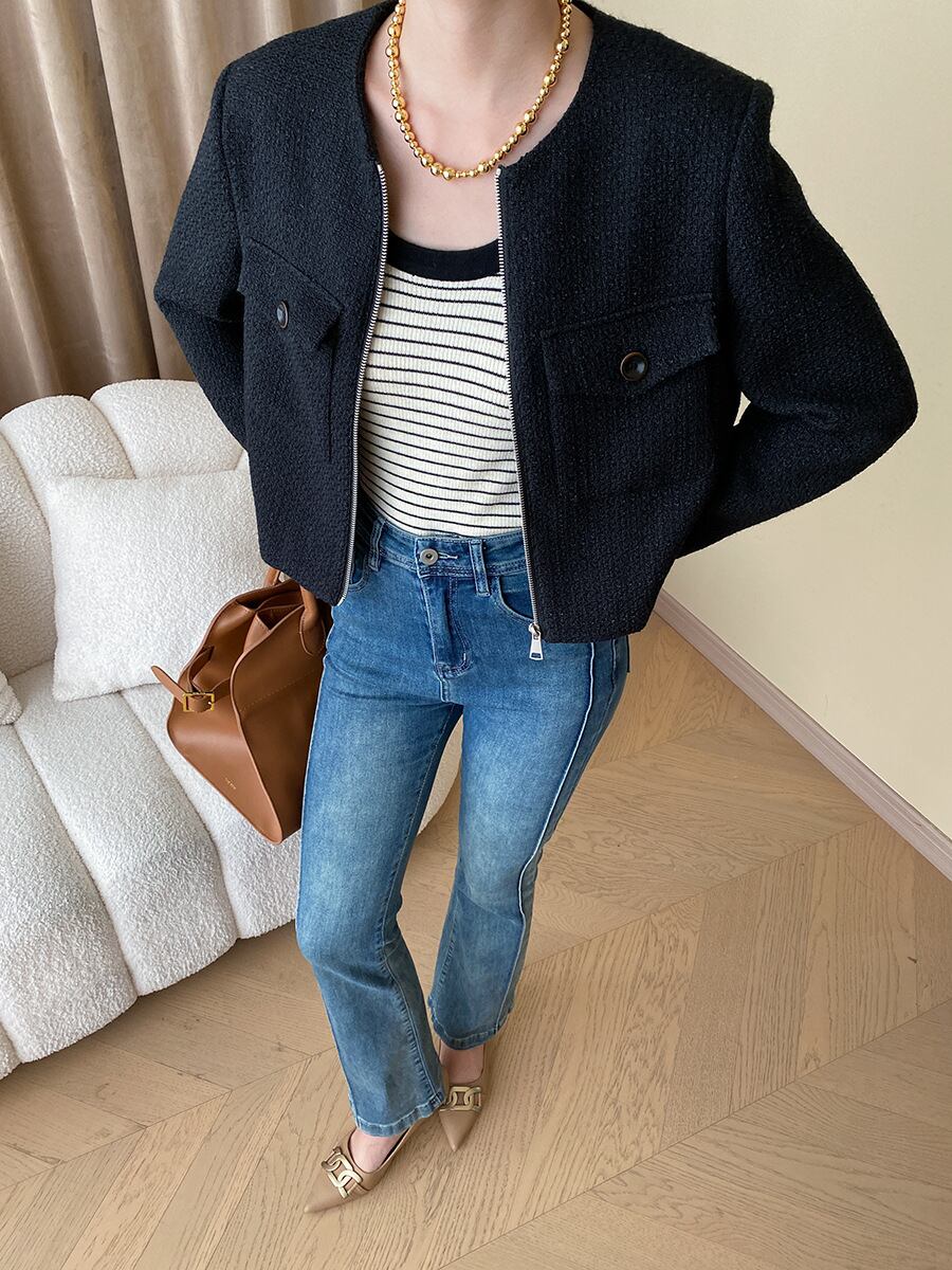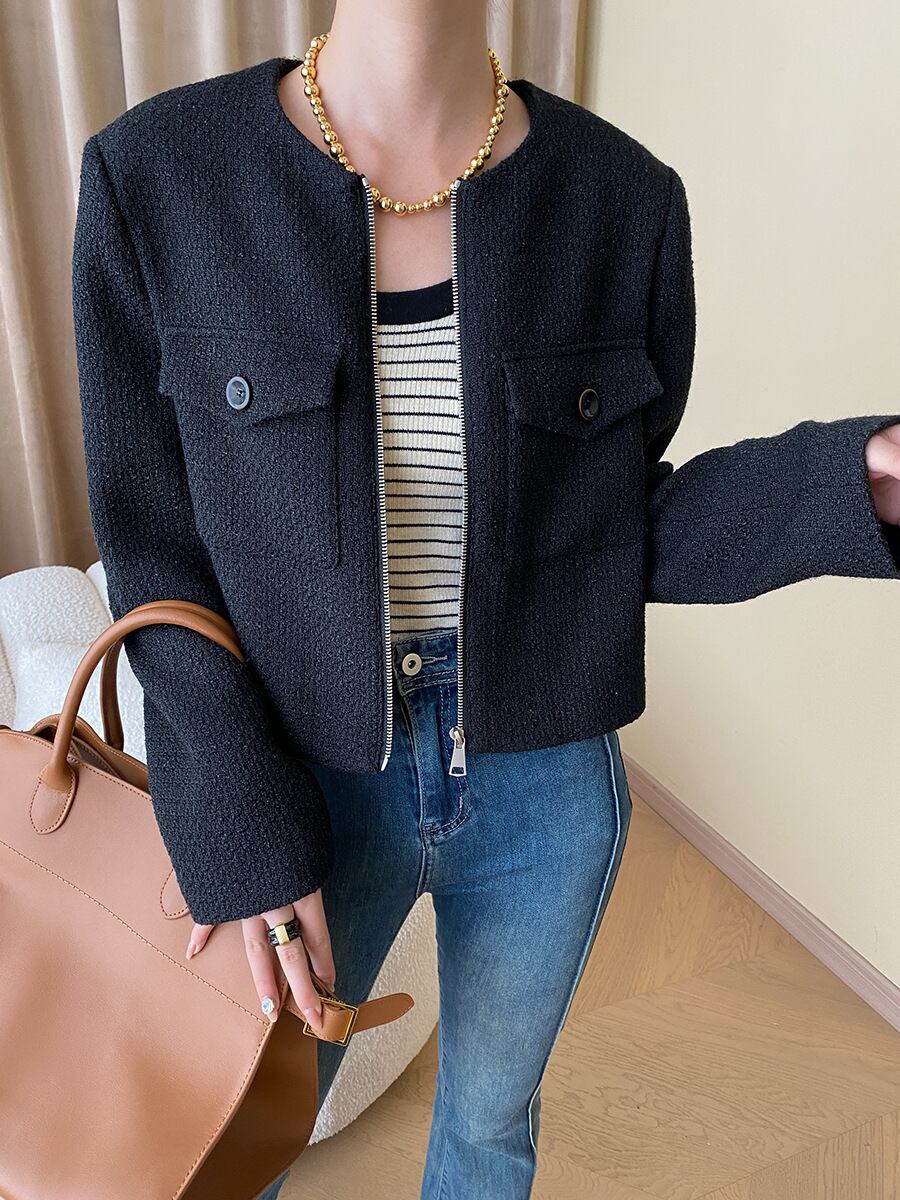 秋冬ラウンドネック気質ジッパーショートフレグランスコートジャケット オータム 秋物 ウィンター 冬物 Oネック