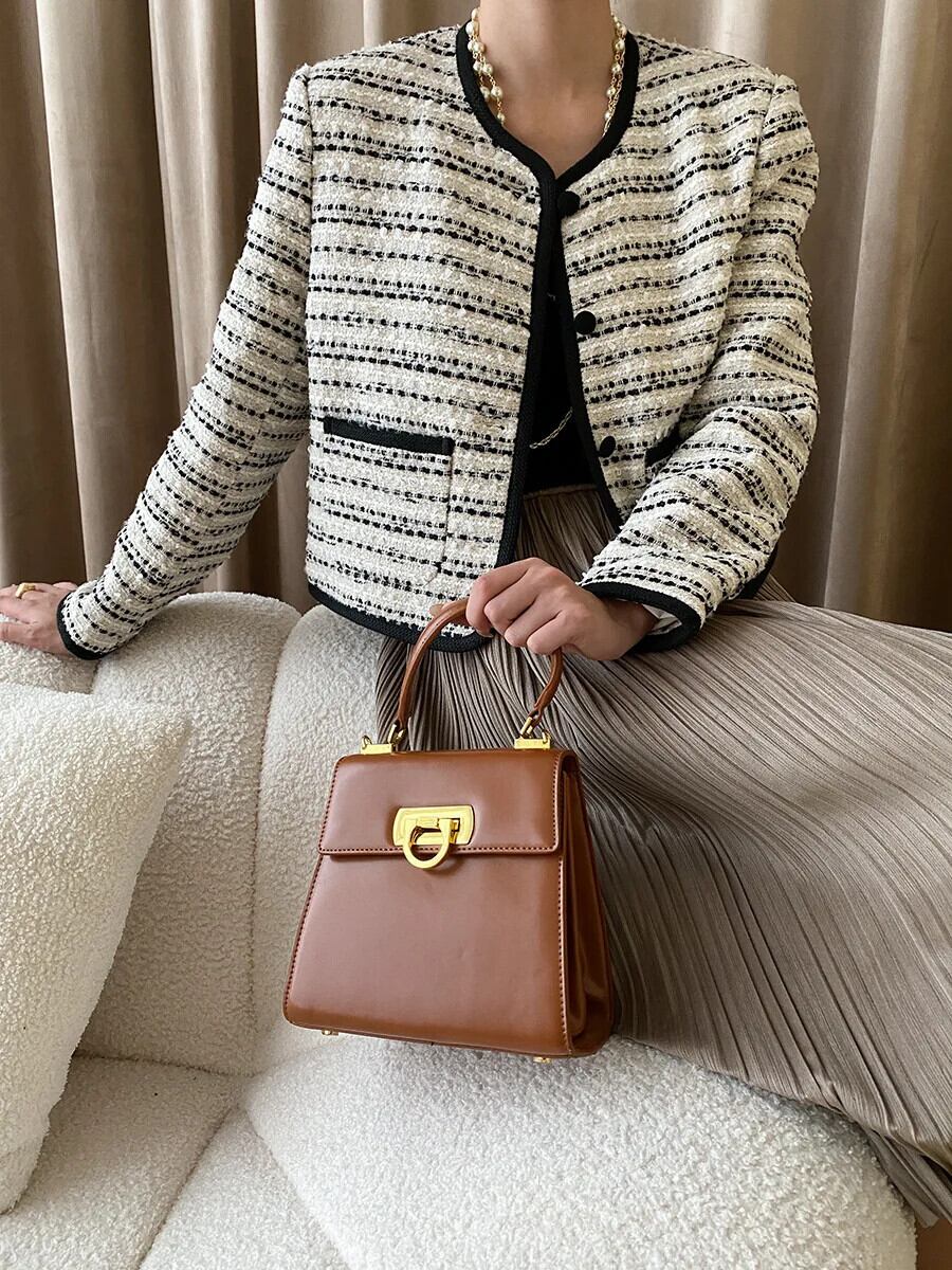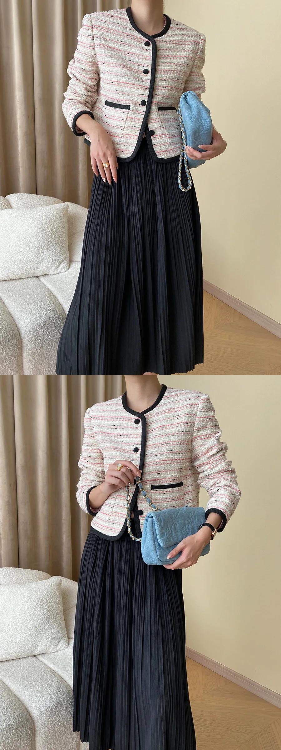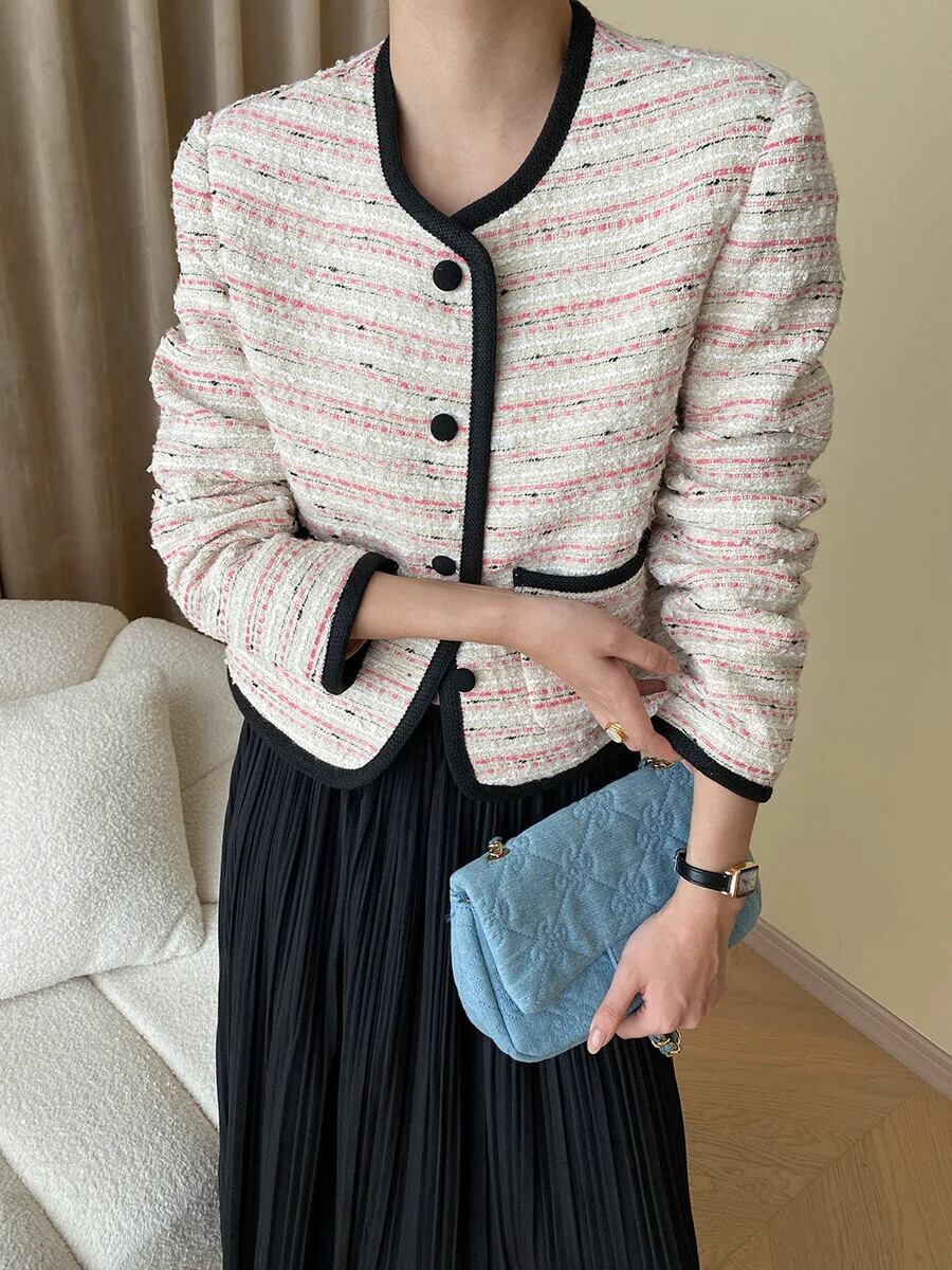 秋冬レディースストライプ織ツイードフレグランスジャケットウールコート オータム 秋物 ウィンター 冬物