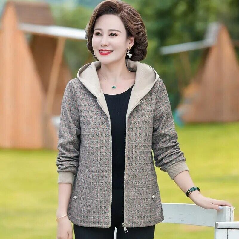 春秋コートウインドブレーカー中年高齢者フード付きトレンチ スプリング 春物 オータム 秋物
