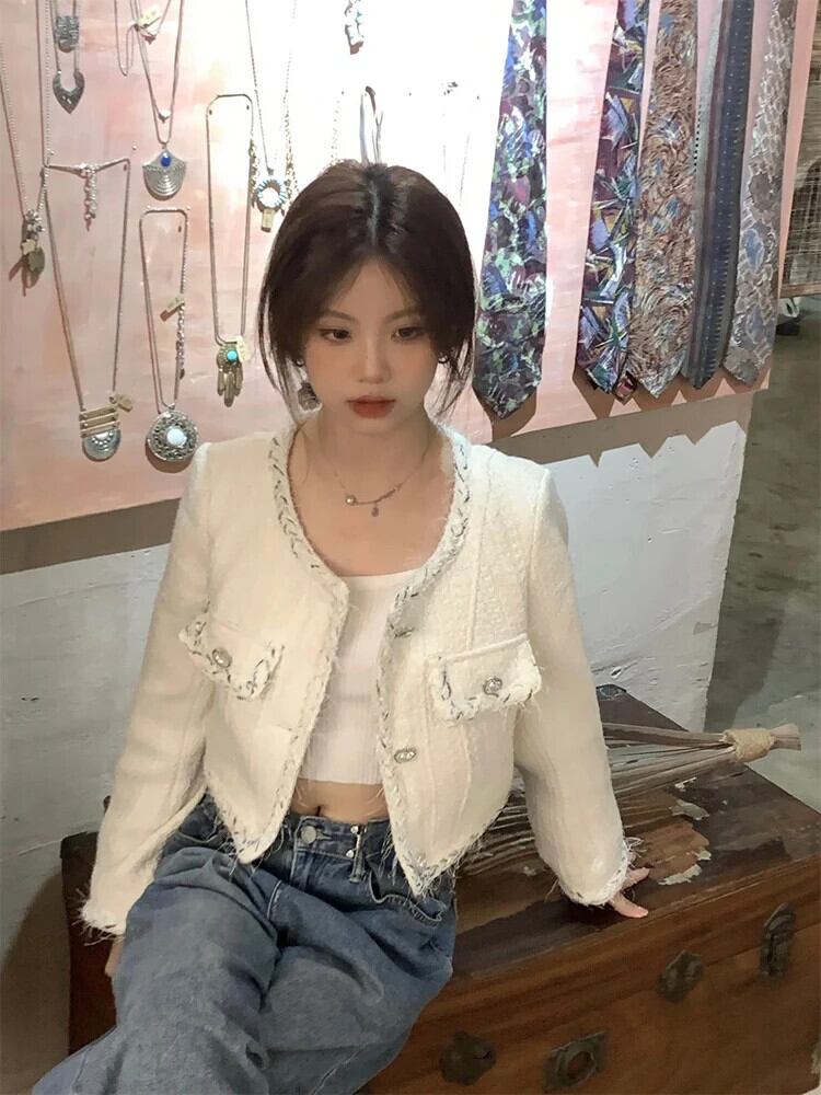 ホワイト フレグランス コート レディース 秋 アウター Casaco 高級ツイード ジャケット オータム 秋物