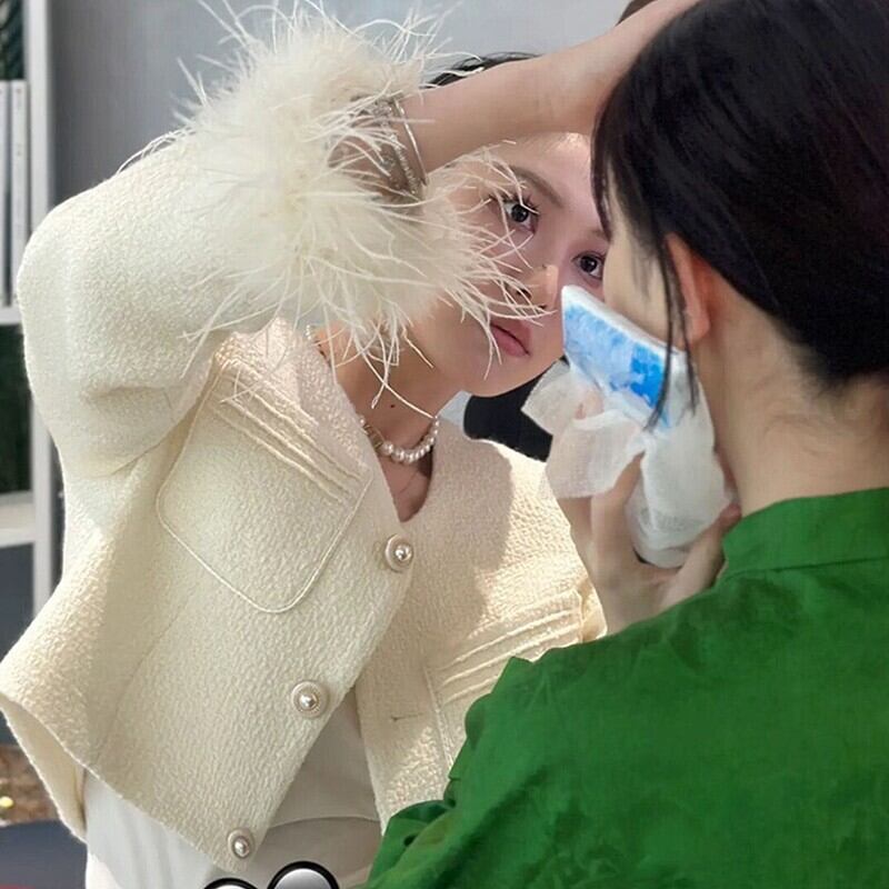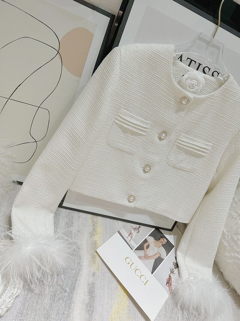 ウールフェザーフレグランス気質ショートジャケット織パールテルウールコート 真珠