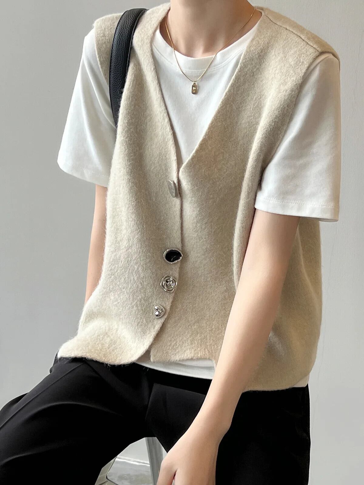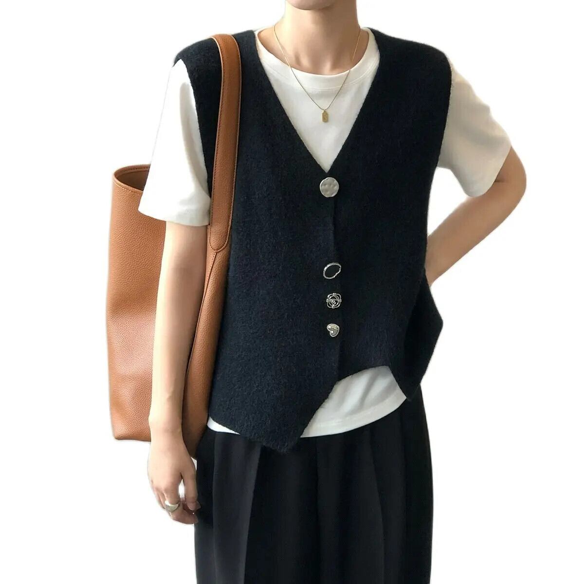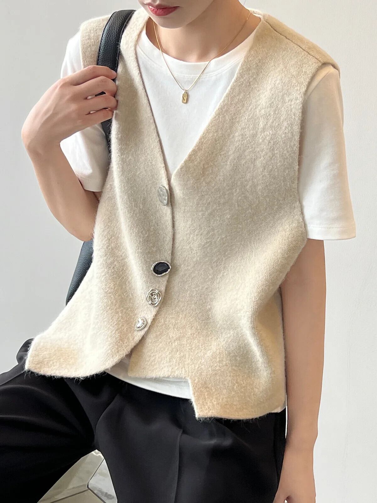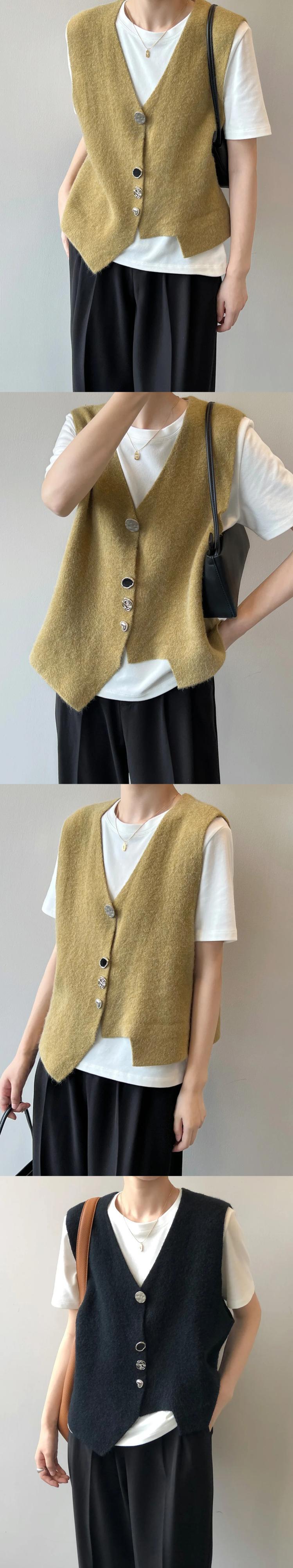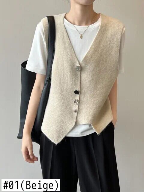 春秋不規則ニット V ネック折りたたみベストレディースコート スプリング 春物 オータム 秋物 Vネック