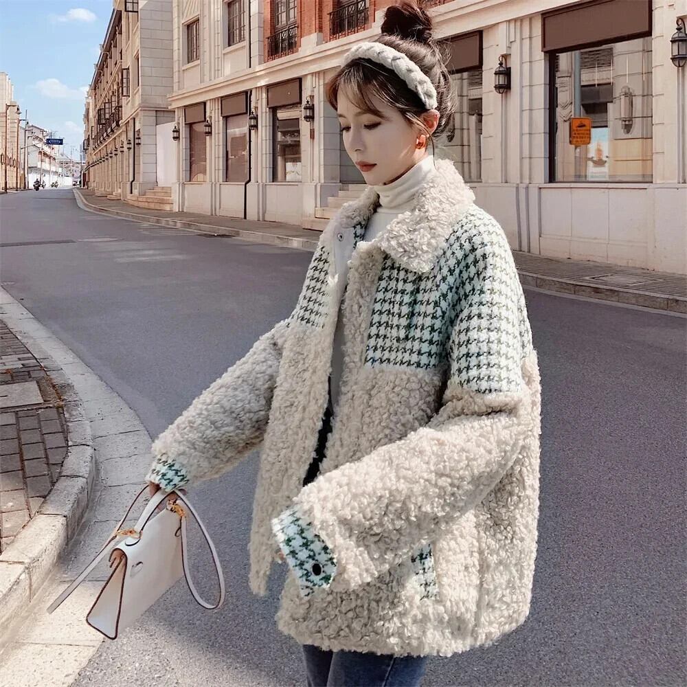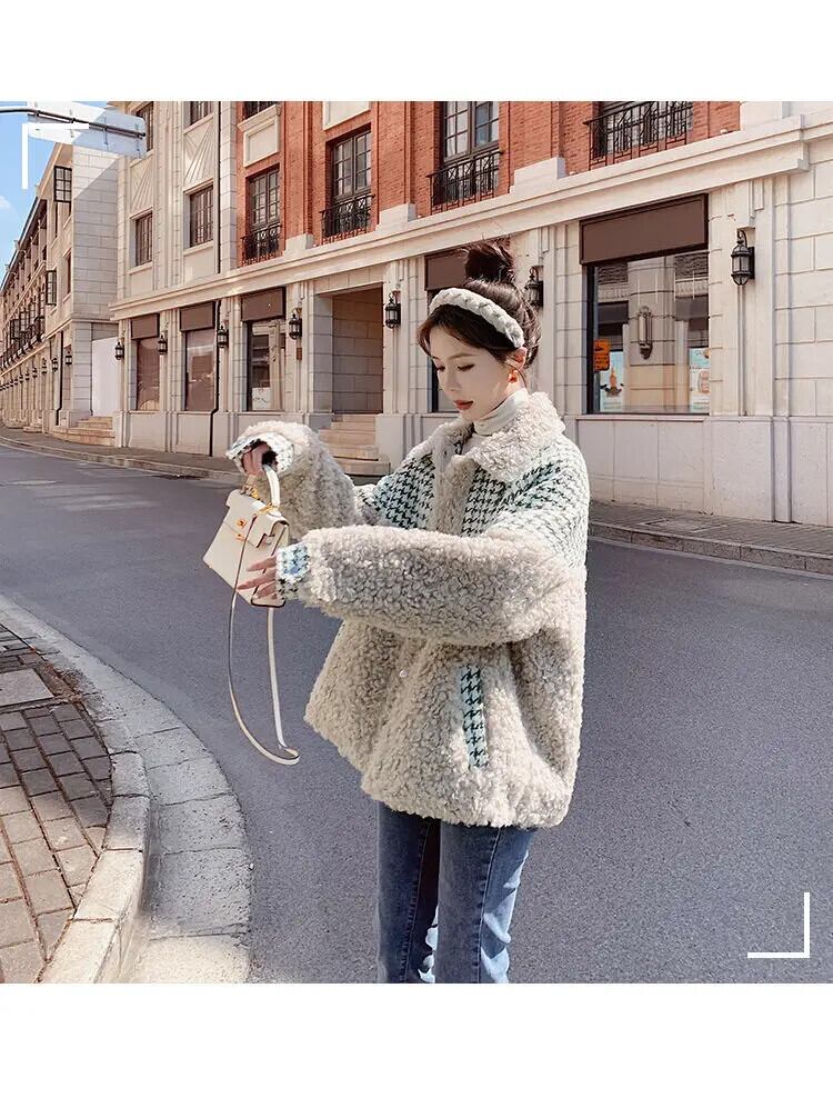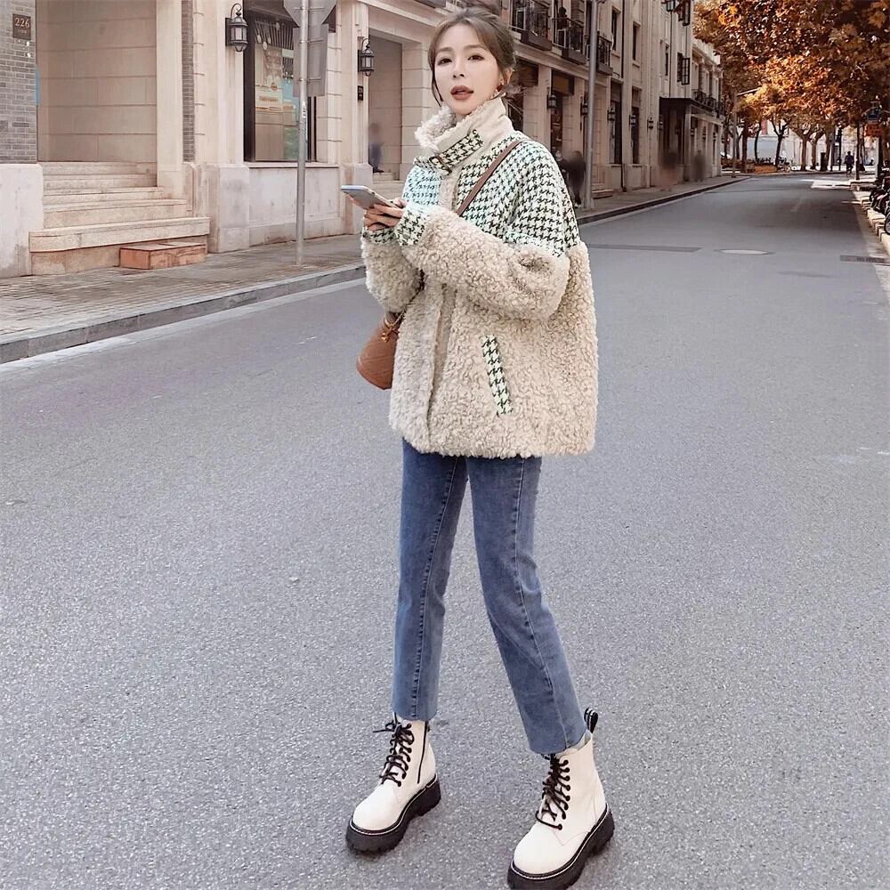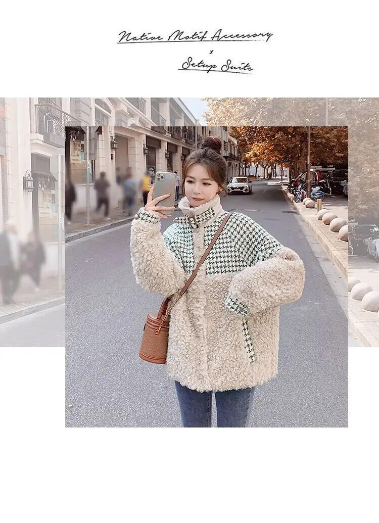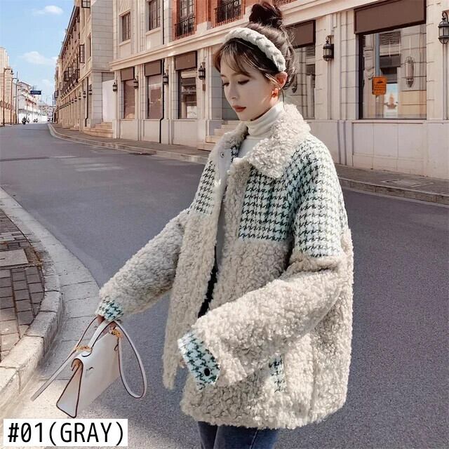 グリッド模造ラムウールジャケット秋冬綿暖かいフリースコート コットン オータム 秋物 ウィンター 冬物