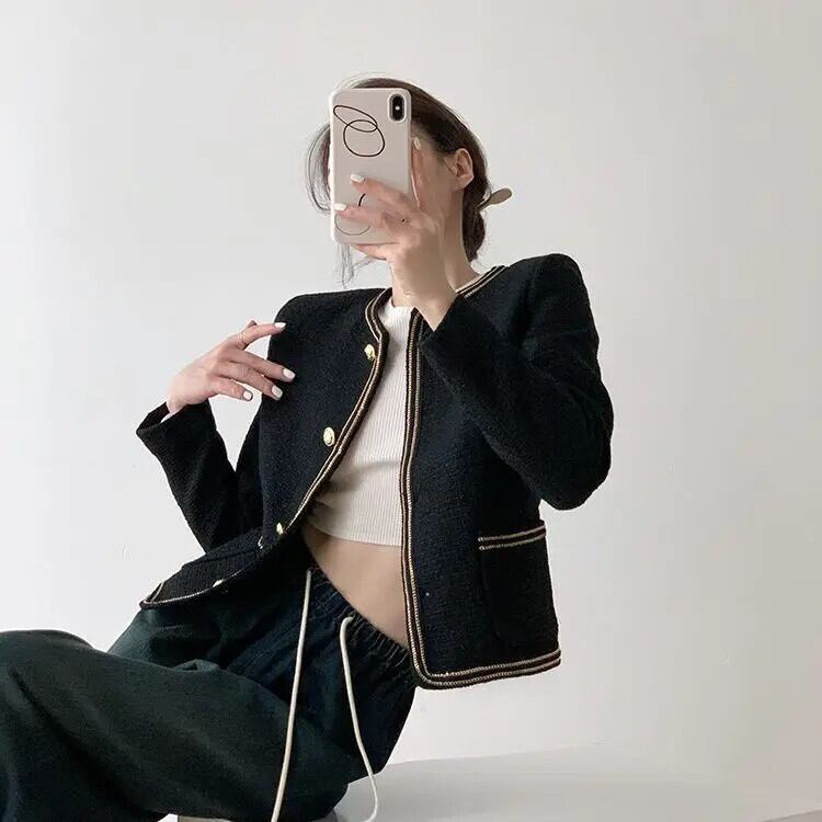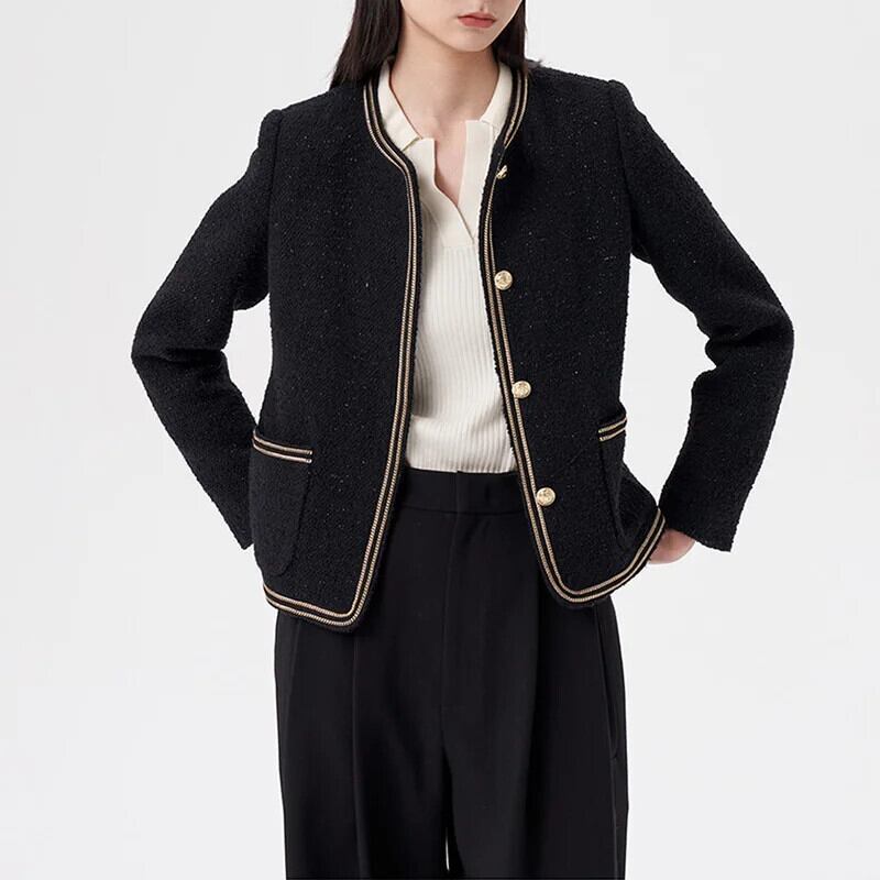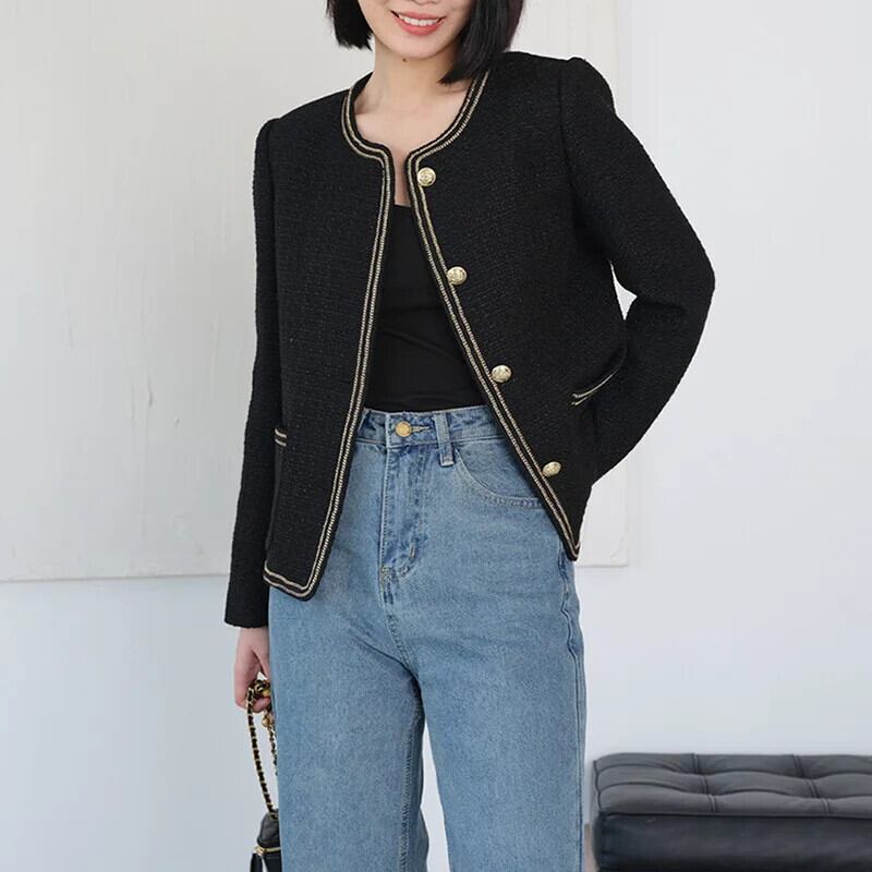 Clic ブラック フレグランス コート 秋冬 コットン オフィス レディー アウター ウール ジャケット オータム 秋物 ウィンター 冬物 会社 学校 通勤や通学にも