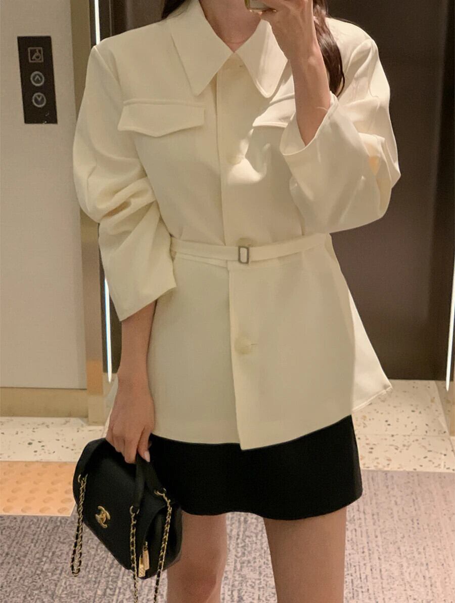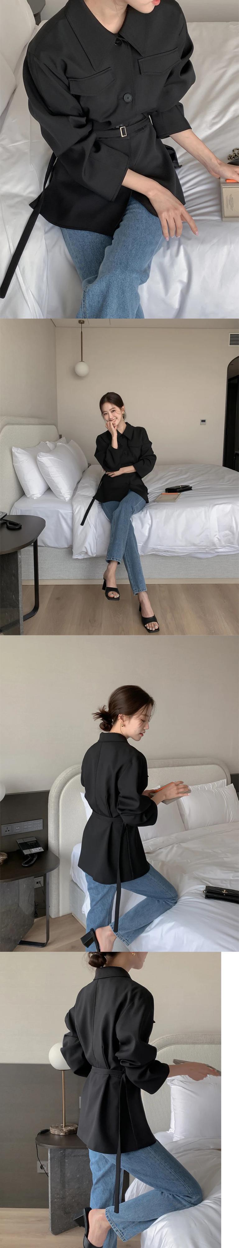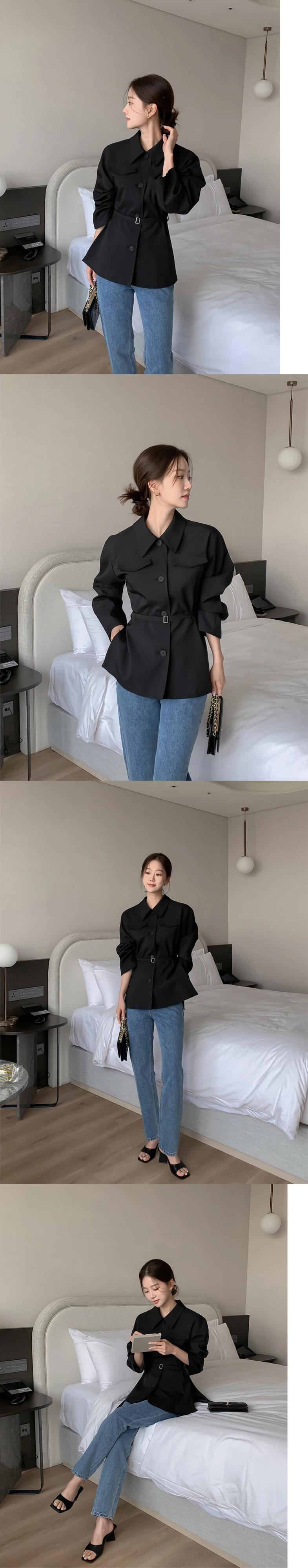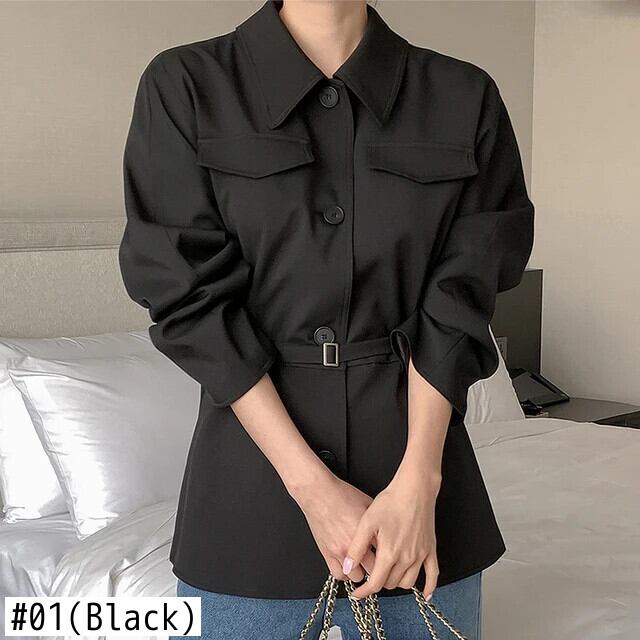 秋ラペルシングルブレストフェイクポケットウエストベルトスリムショートウインドブレーカーコートショートテンチ オータム 秋物 ハーネス