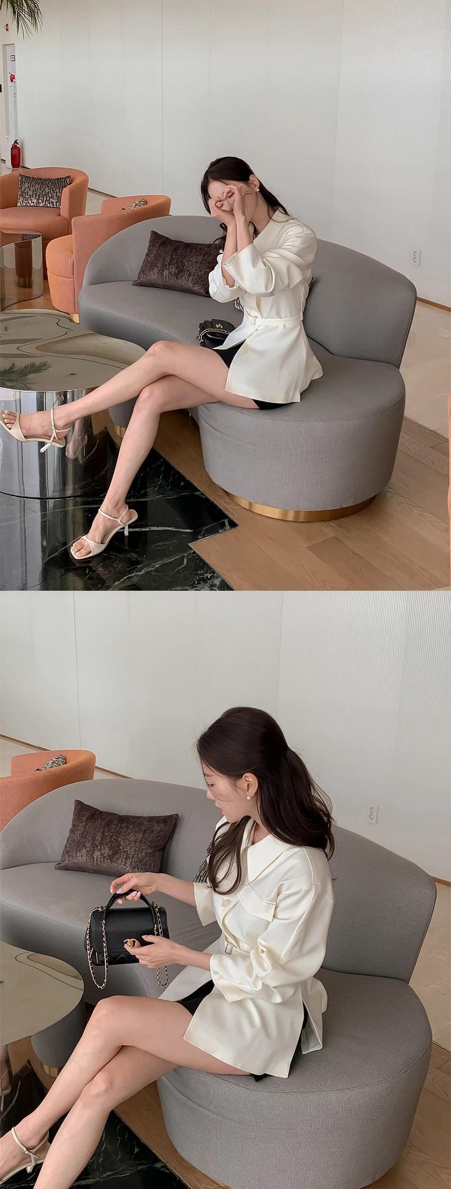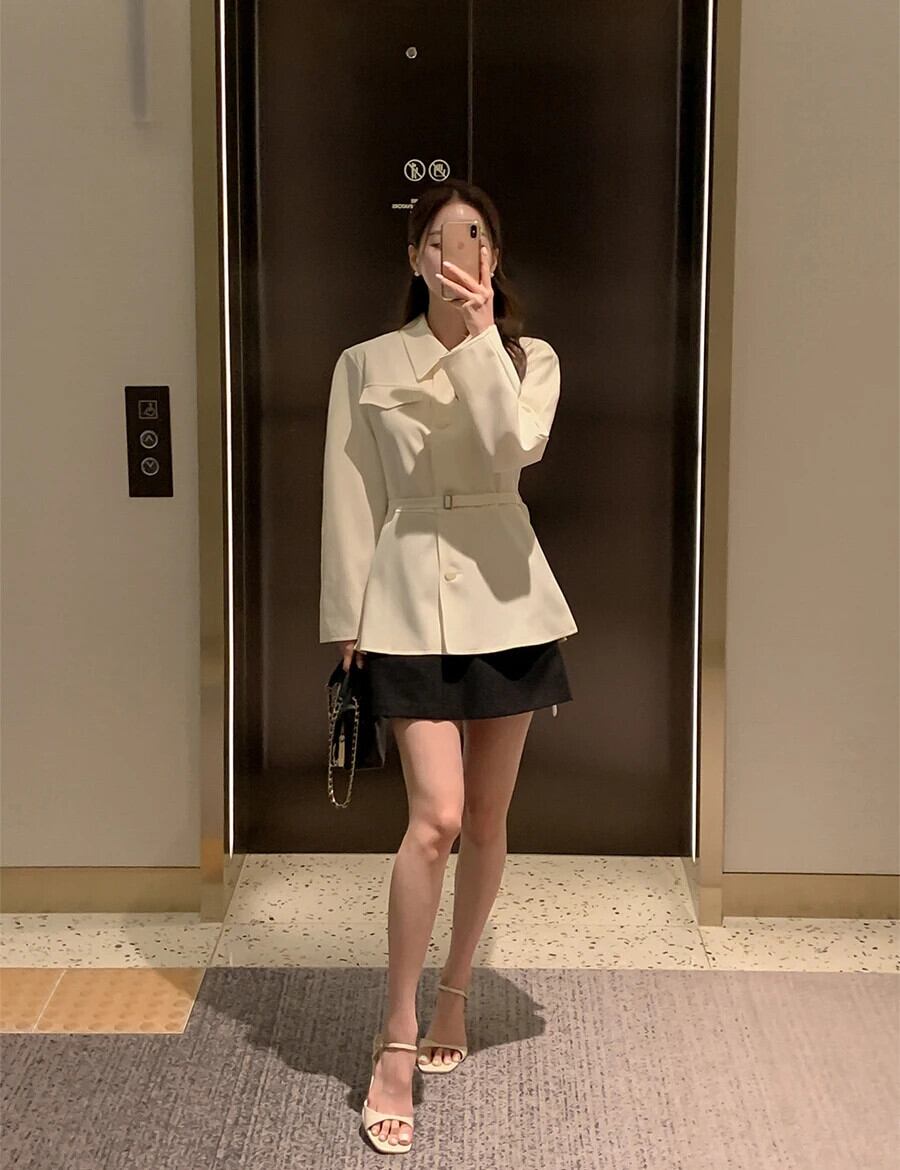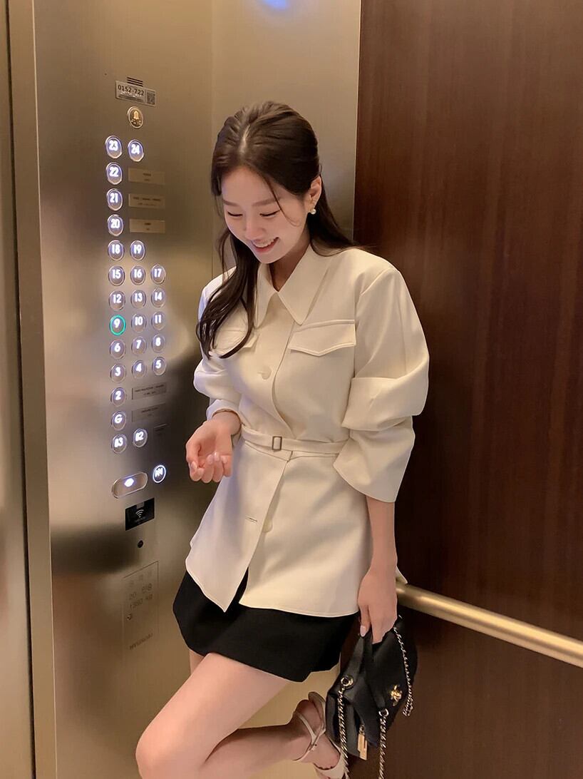 秋ラペルシングルブレストフェイクポケットウエストベルトスリムショートウインドブレーカーコートショートテンチ オータム 秋物 ハーネス