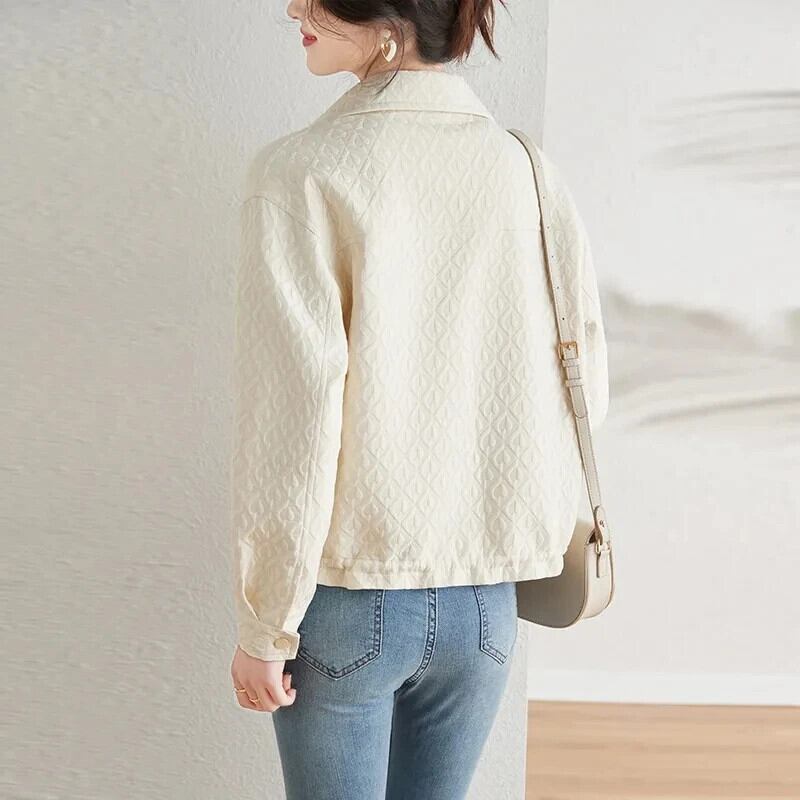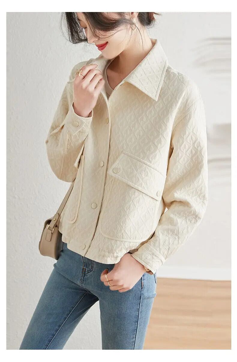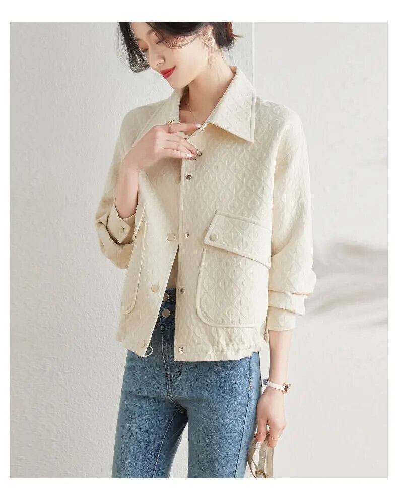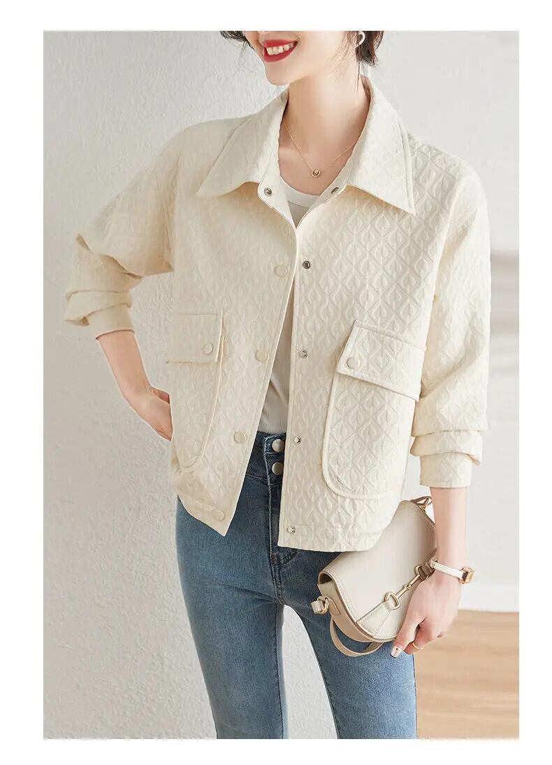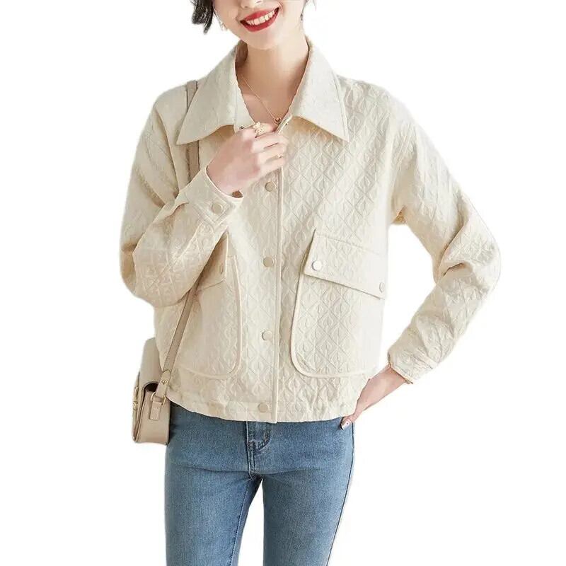 ターンカラー ショートコート レディース 春秋 ベージュ ジャケット アウター スプリング 春物 オータム 秋物