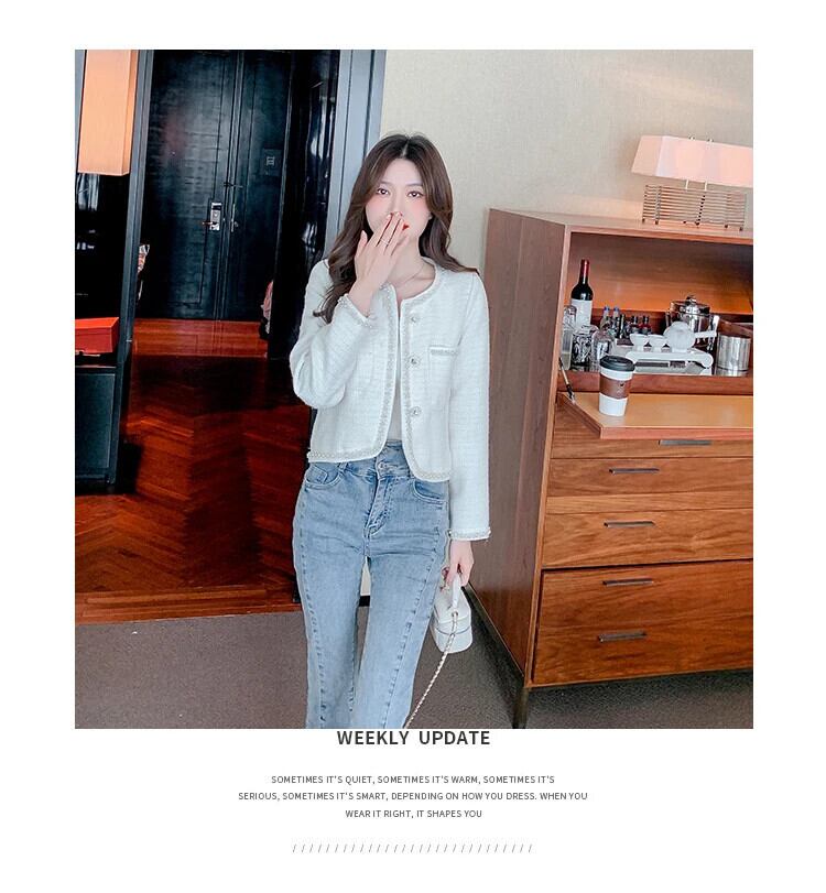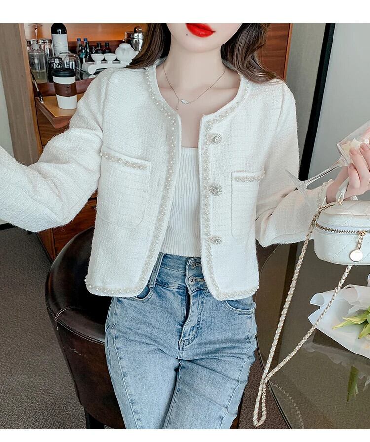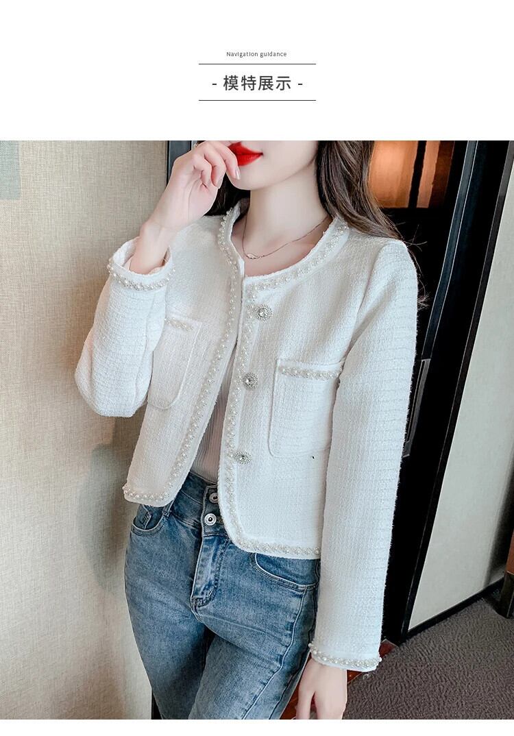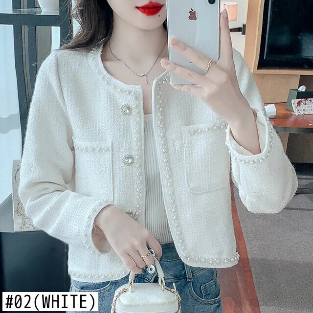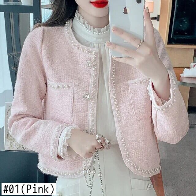 ネイルビーズフレグランススタイルコートレディース春秋ショートラウンドネックグレードツイードジャケット スプリング 春物 オータム 秋物 Oネック
