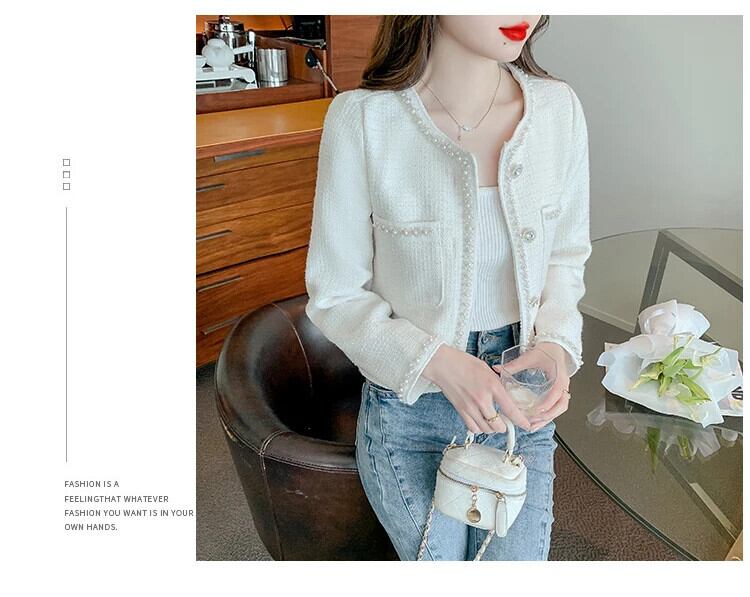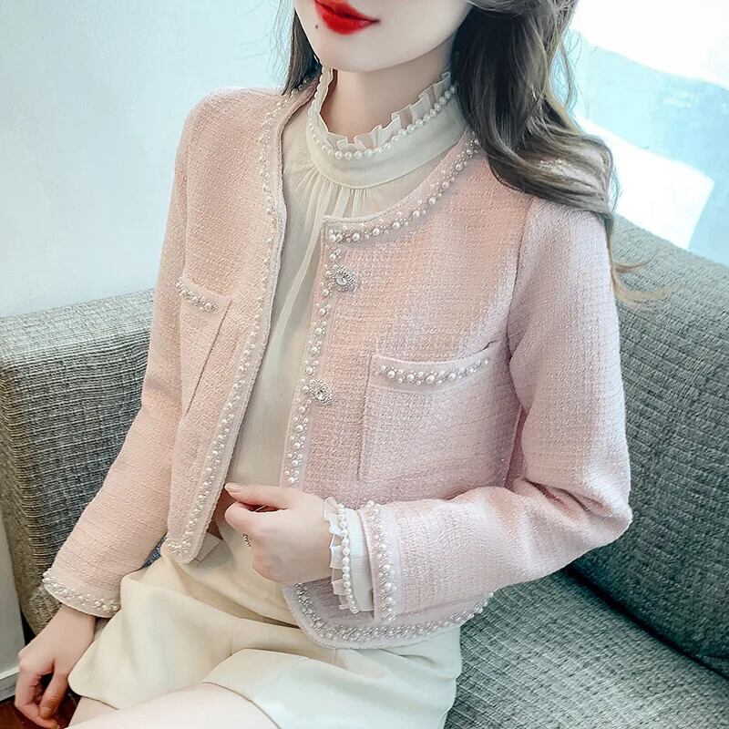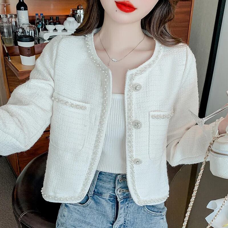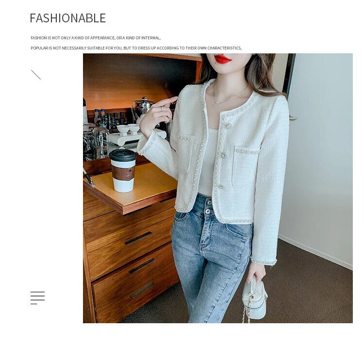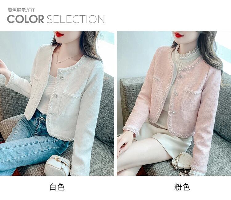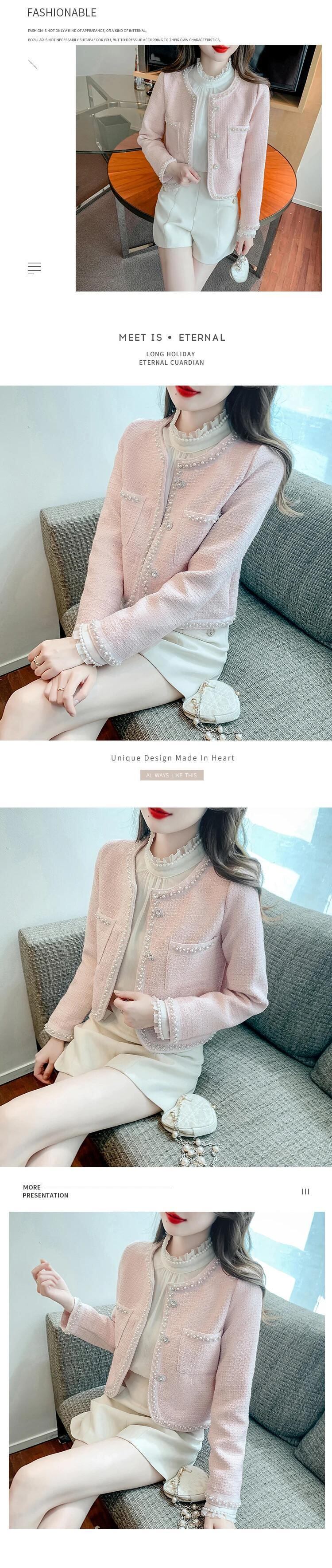 ネイルビーズフレグランススタイルコートレディース春秋ショートラウンドネックグレードツイードジャケット スプリング 春物 オータム 秋物 Oネック