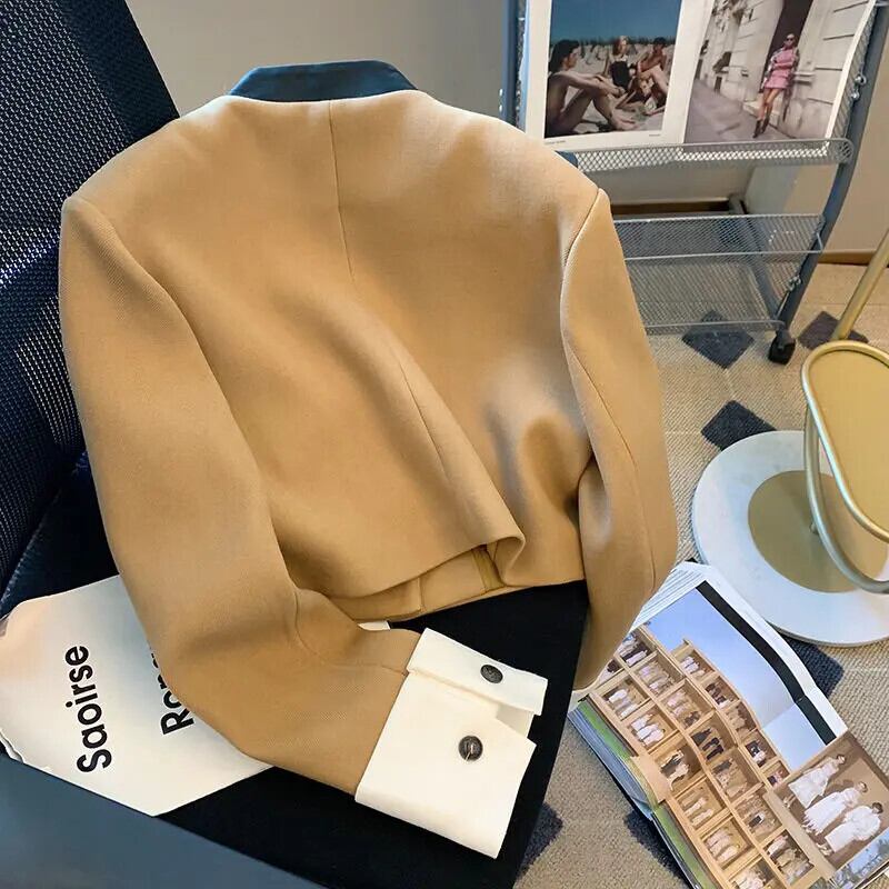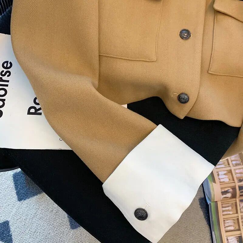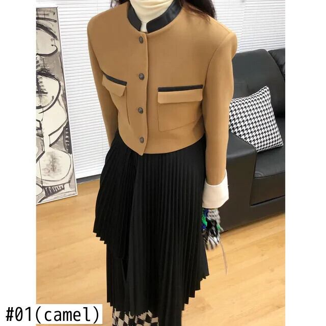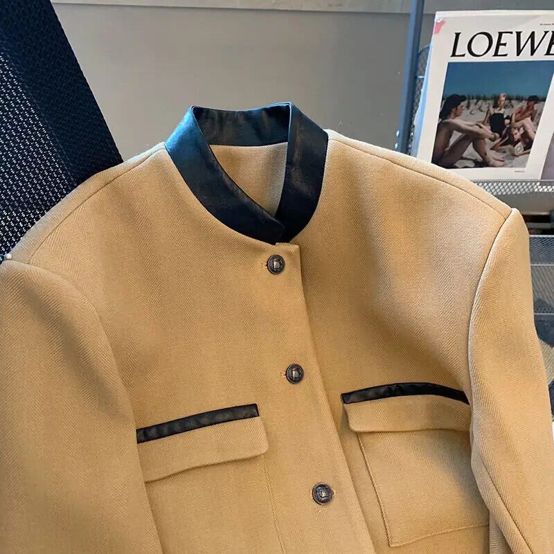 立ち襟長袖ジャケット レディース秋春ショートパッチワークコート ロング スプリング 春物 オータム 秋物