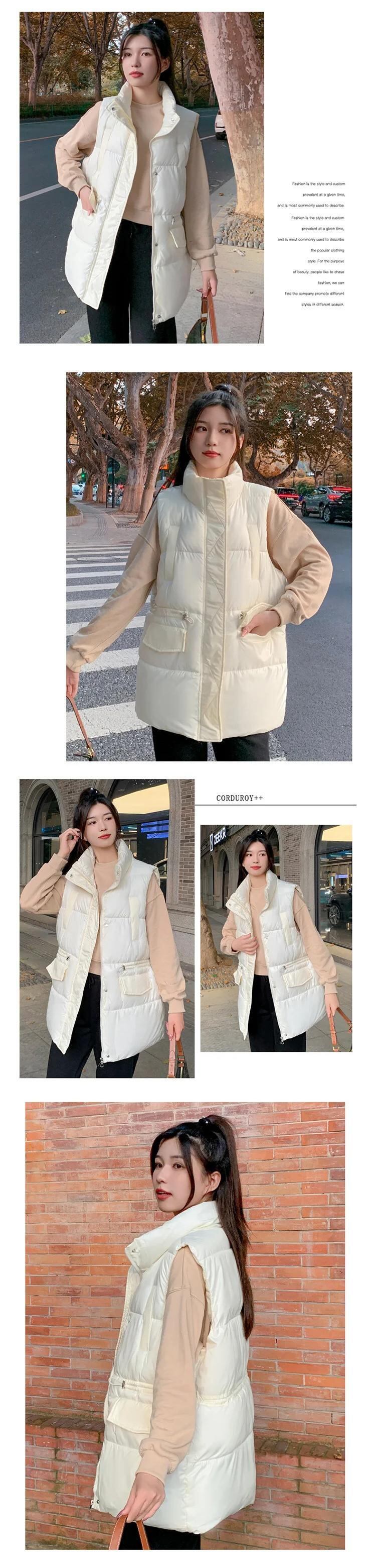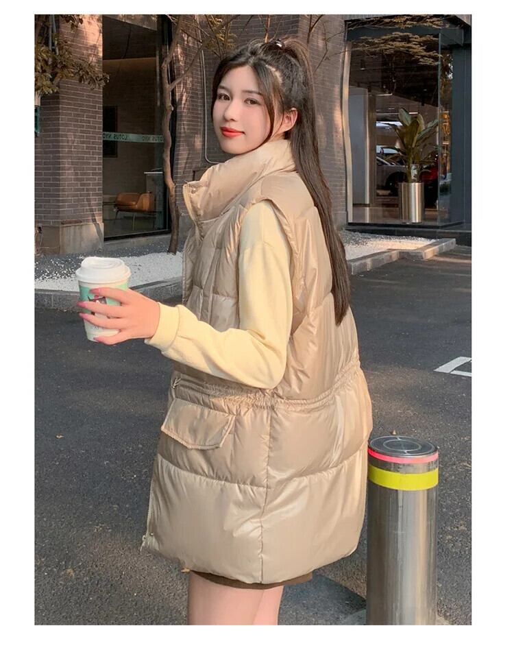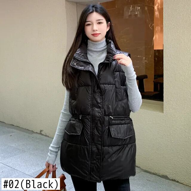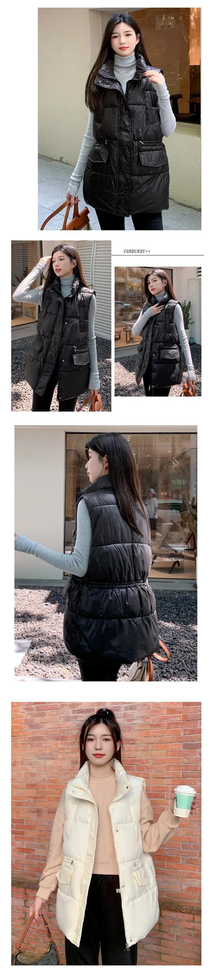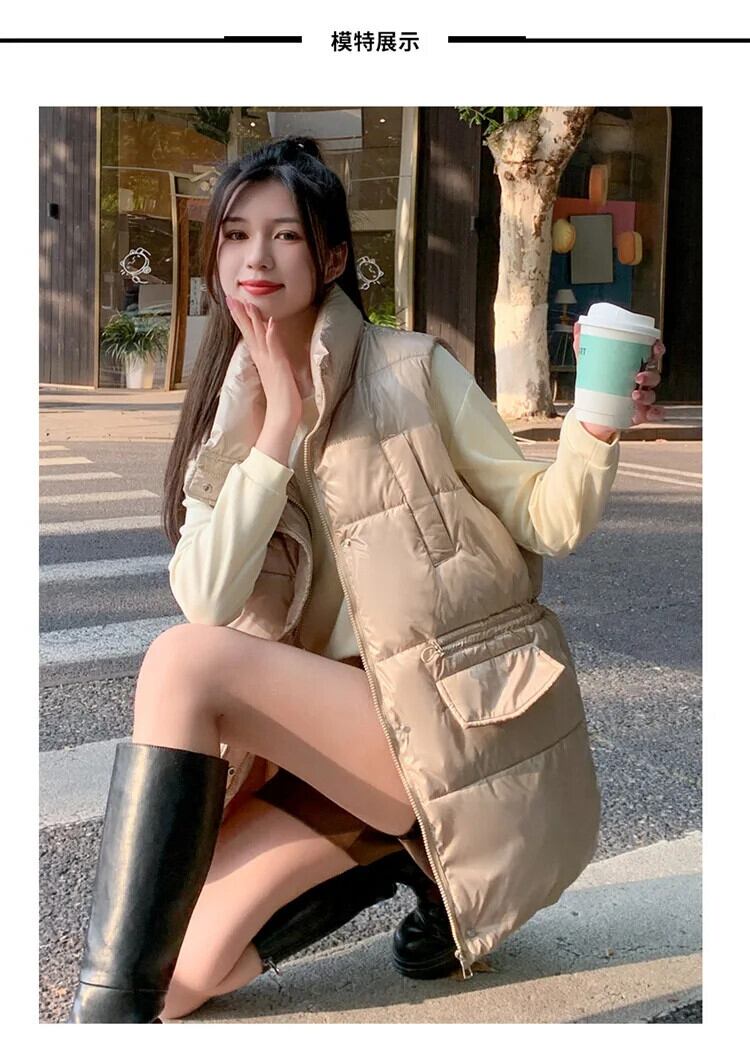 長綿ベスト秋/冬ルーズノースリーブ厚くて暖かいチョッキジャケット ロング コットン オータム 秋物 ウィンター 冬物 ソリッドカラー