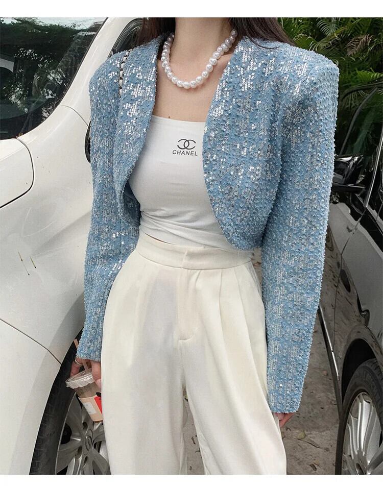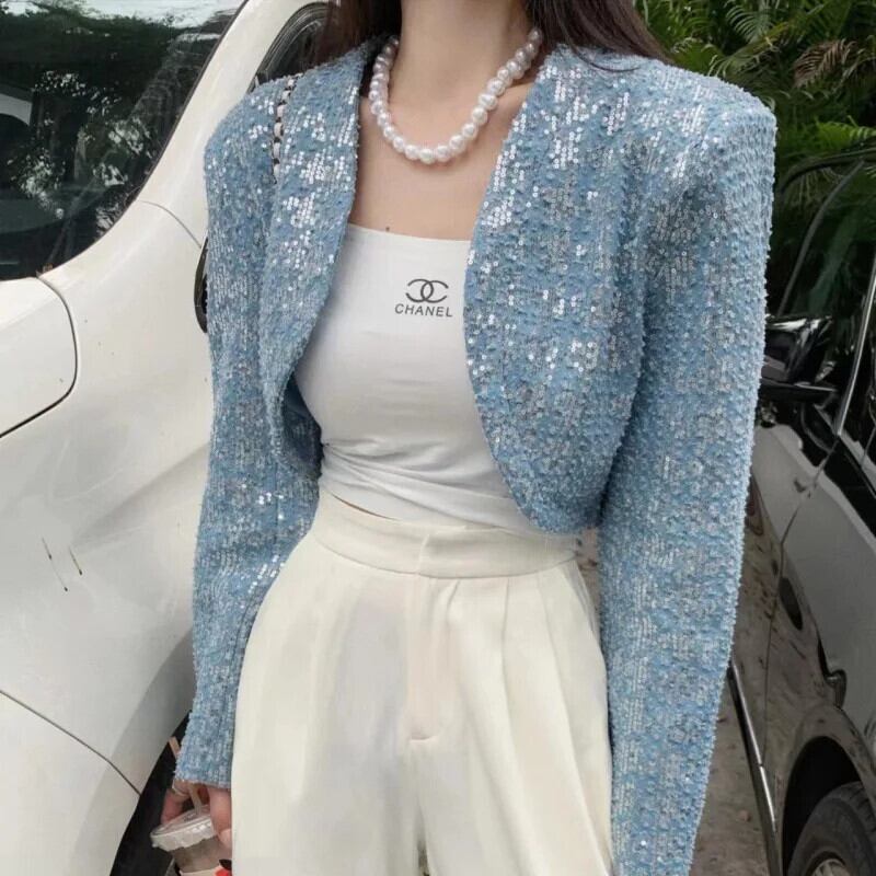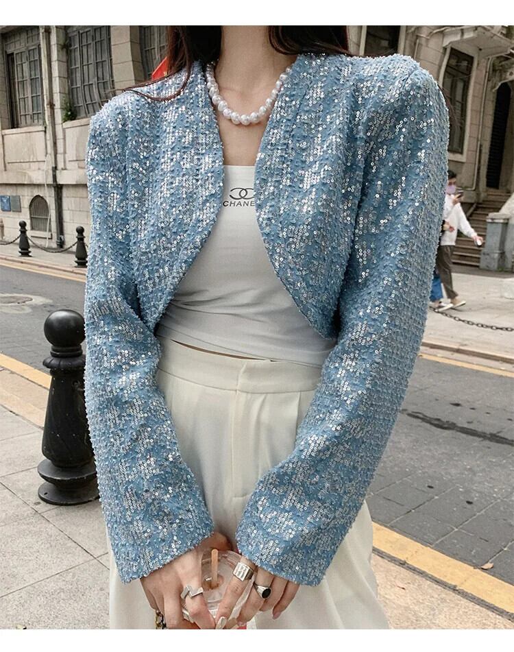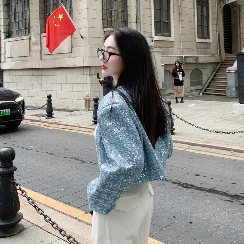 春秋シーケンシャル BingBing 多用途ショートジャケットブルーコート スプリング 春物 オータム 秋物