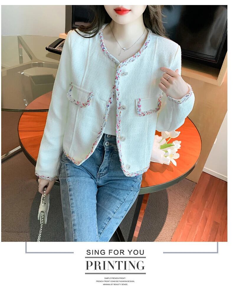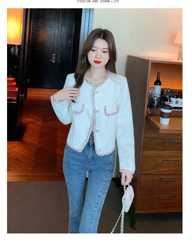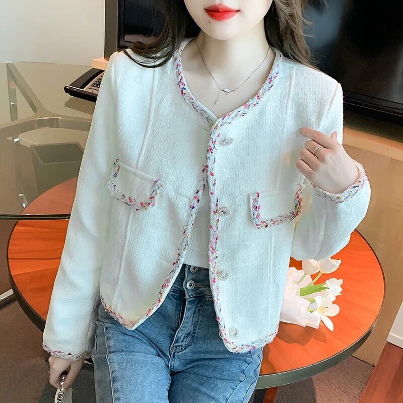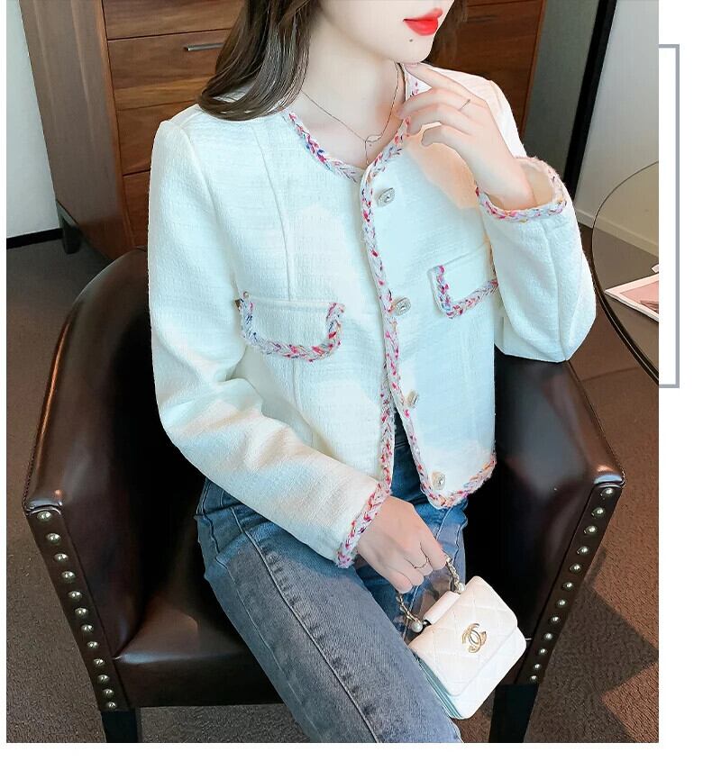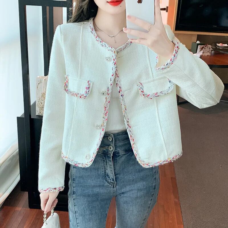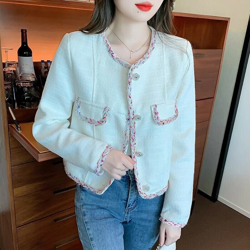 秋気質織バインディング緩いユニークシングルブレスト長袖ウールショートコート Abrigo ロング オータム 秋物