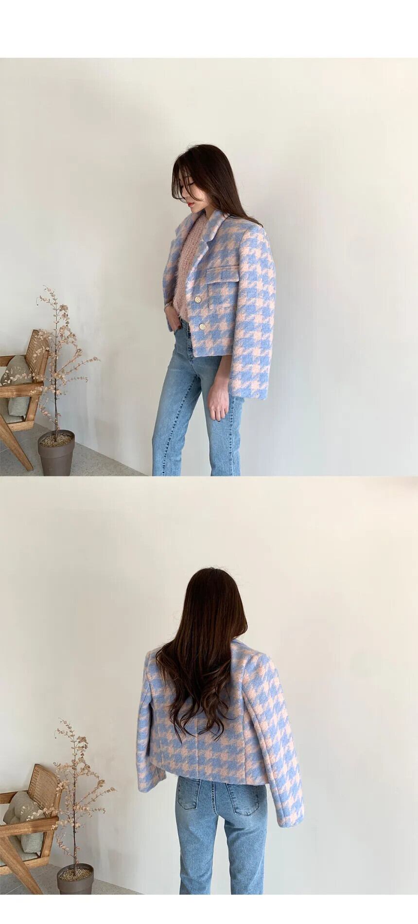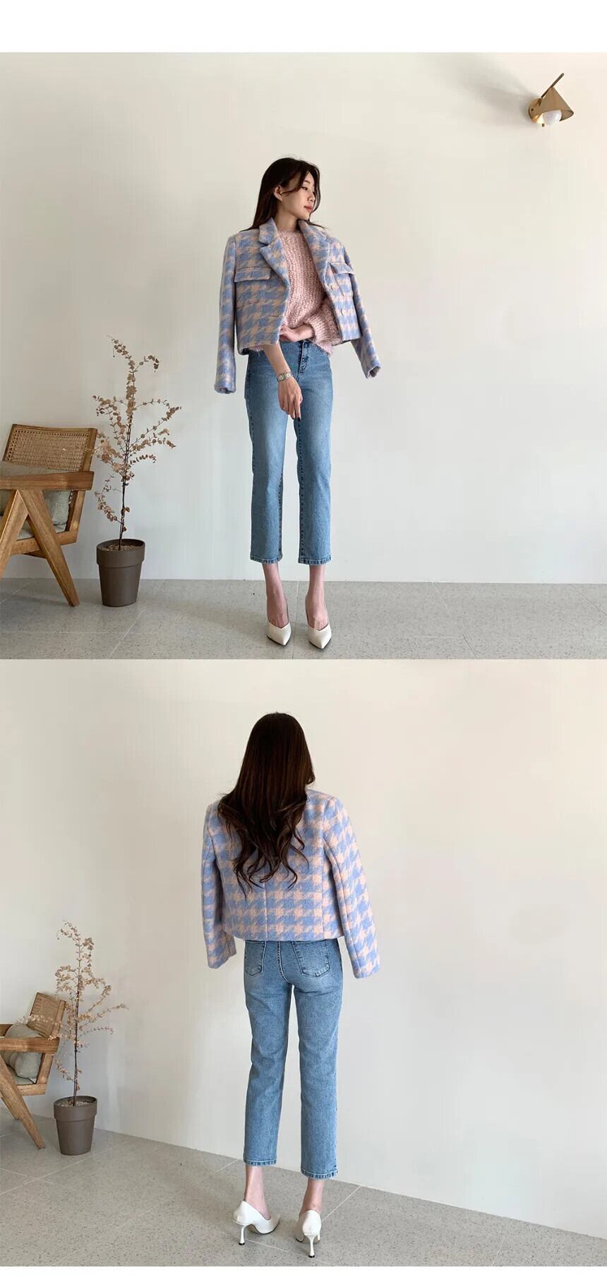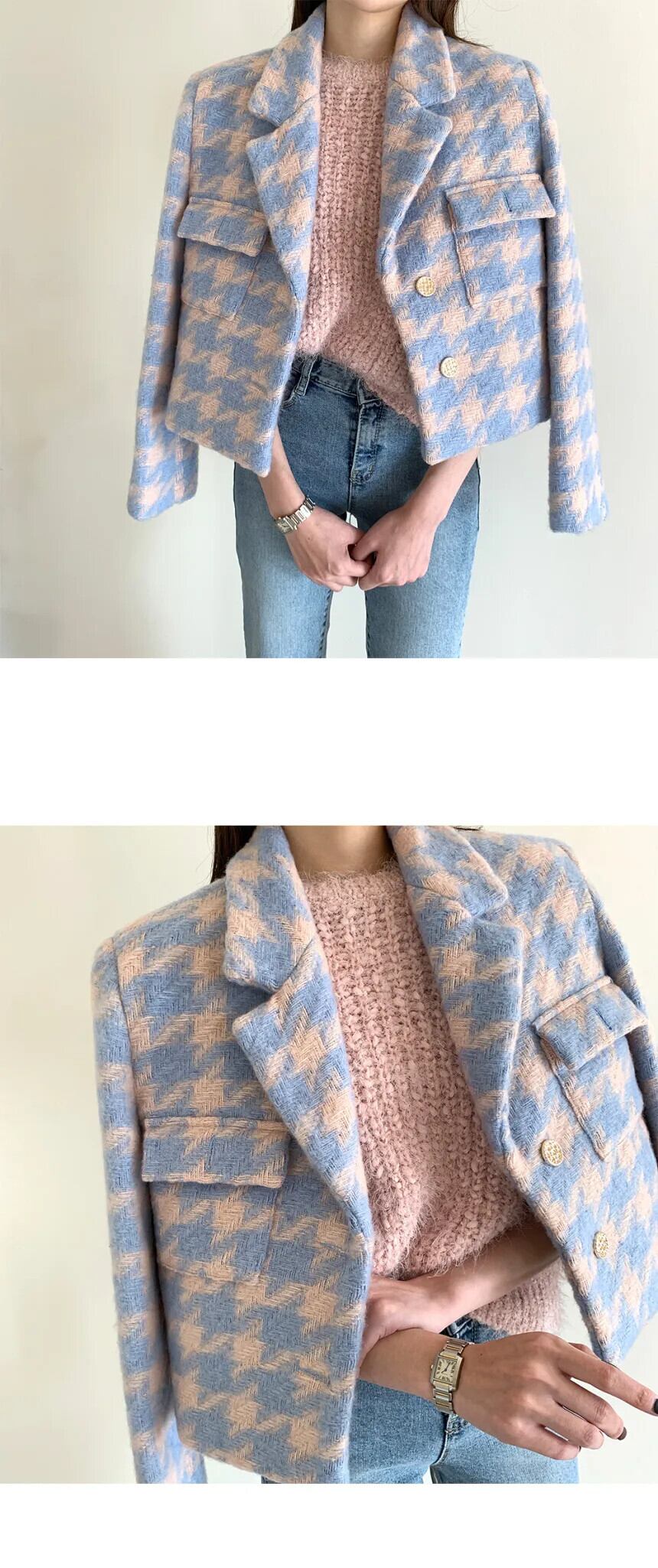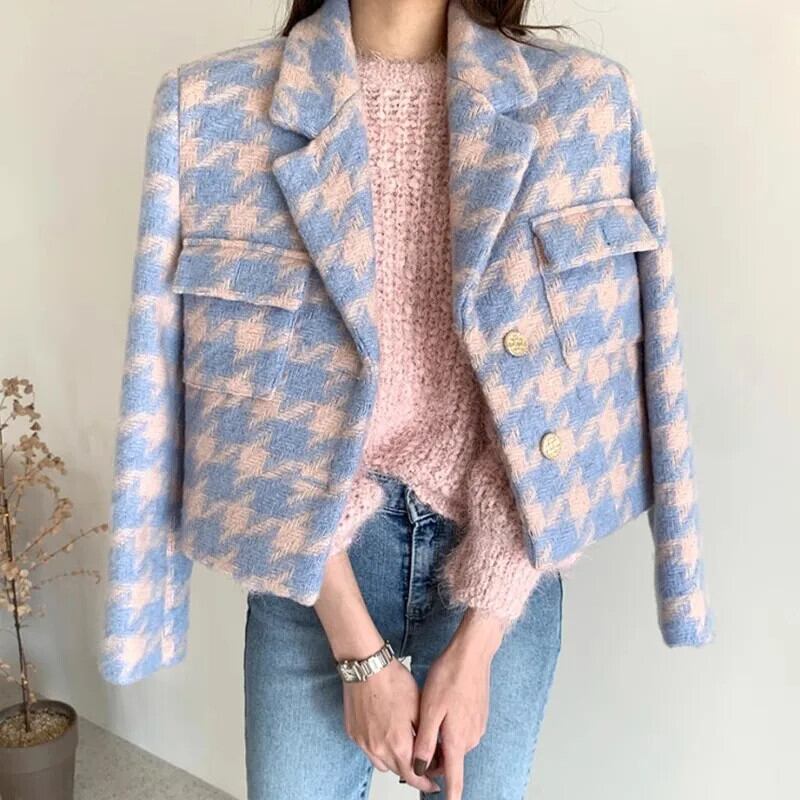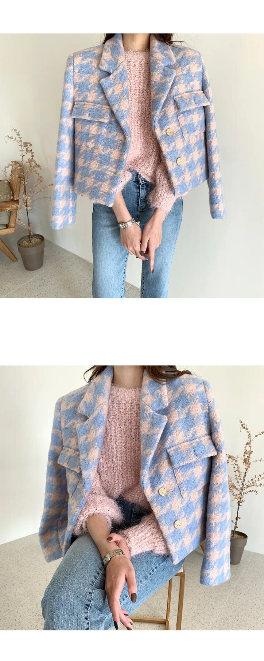 シック秋冬 2 ボタンルーズポケット肥厚暖かいショートチェック柄ブレザースーツコート オータム 秋物 ウィンター 冬物