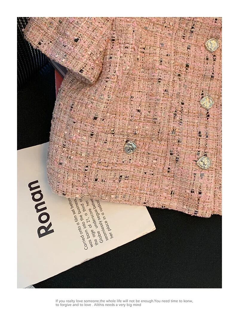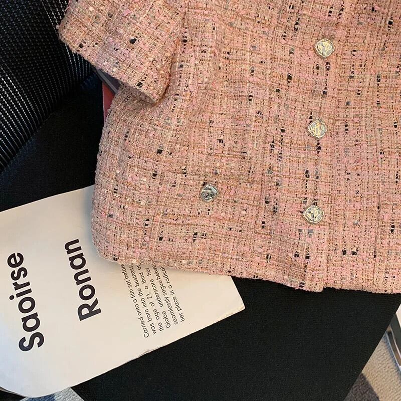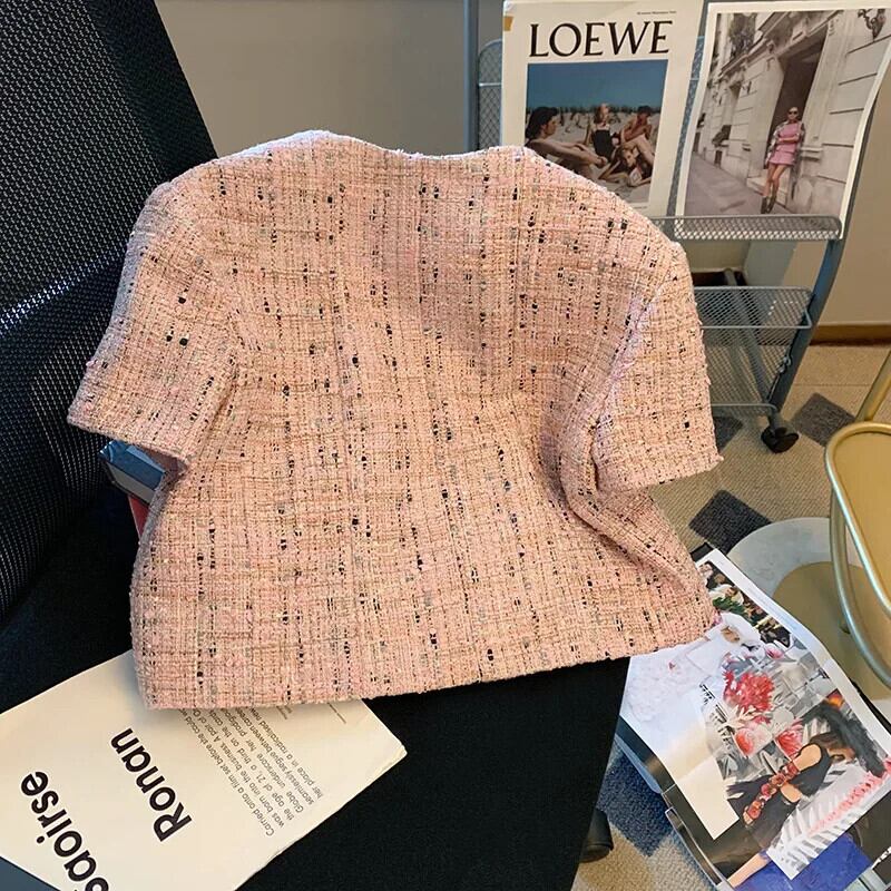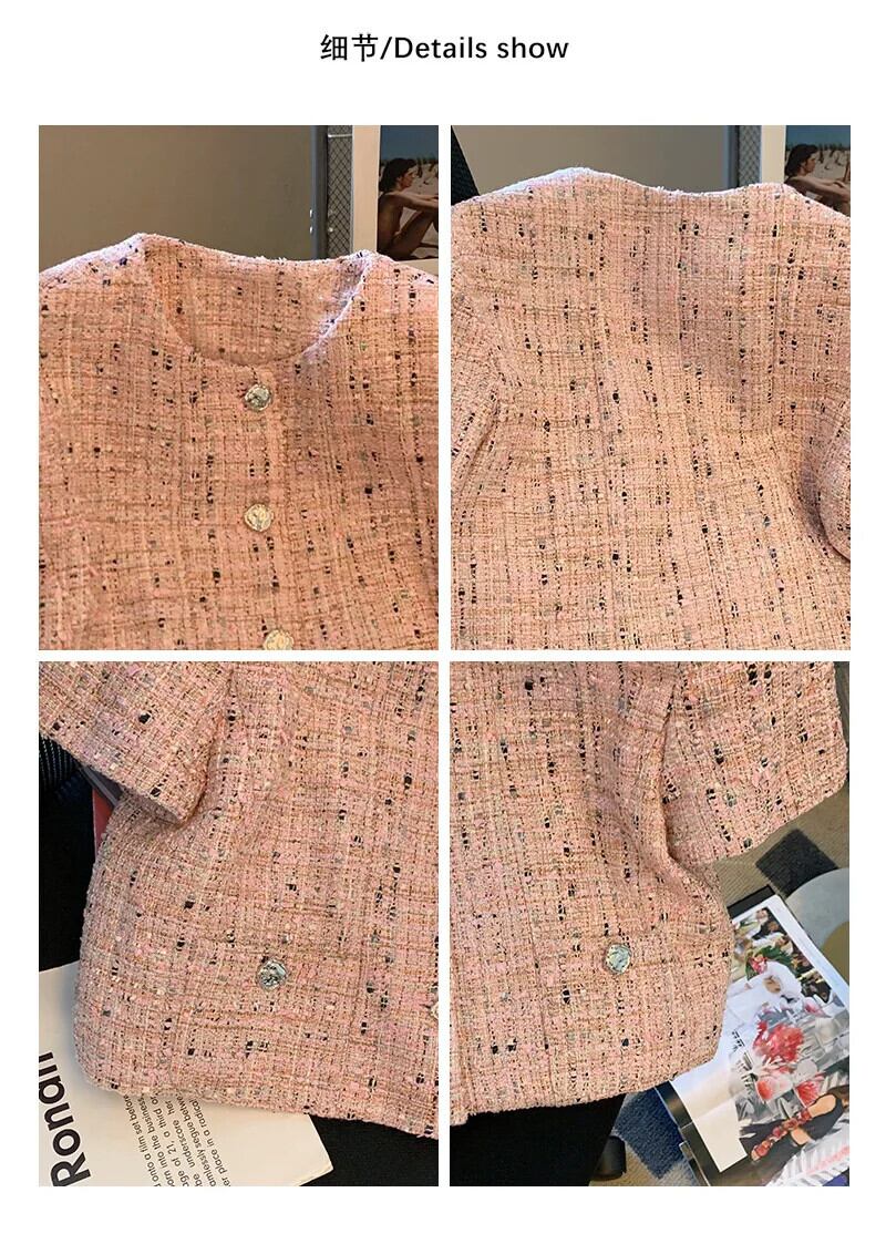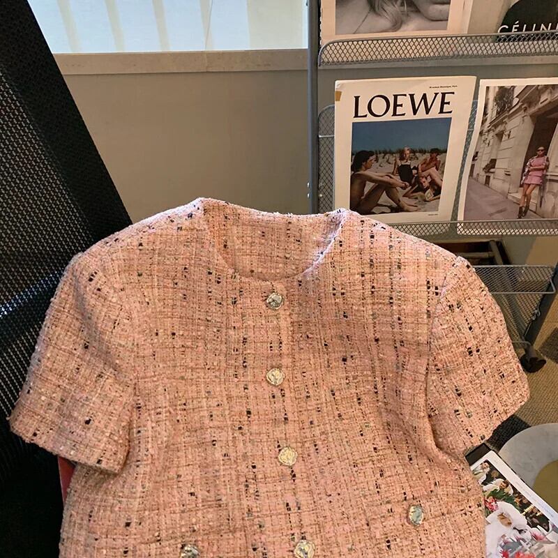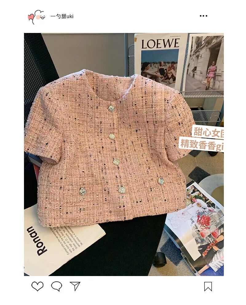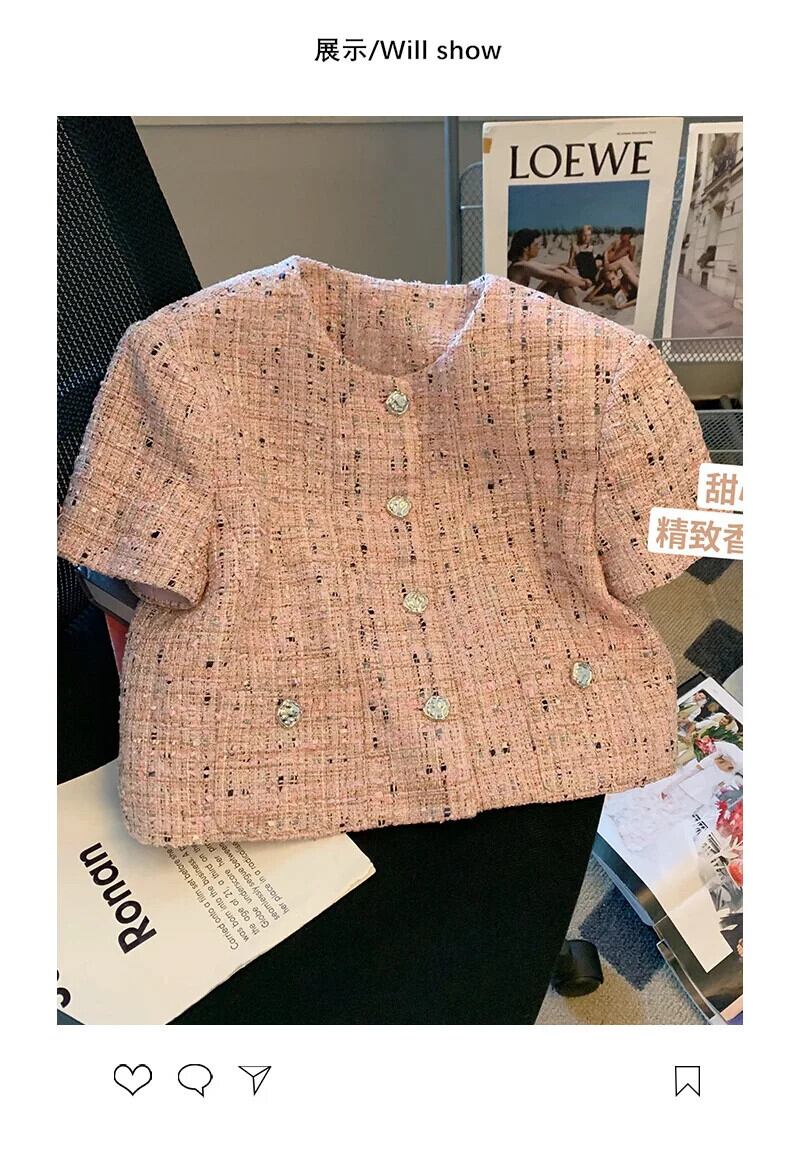 レディースサマースタイル半袖フレグランスウィービングラウンドネックコートジャケット ショート ハーフスリーブ 夏物 Oネック