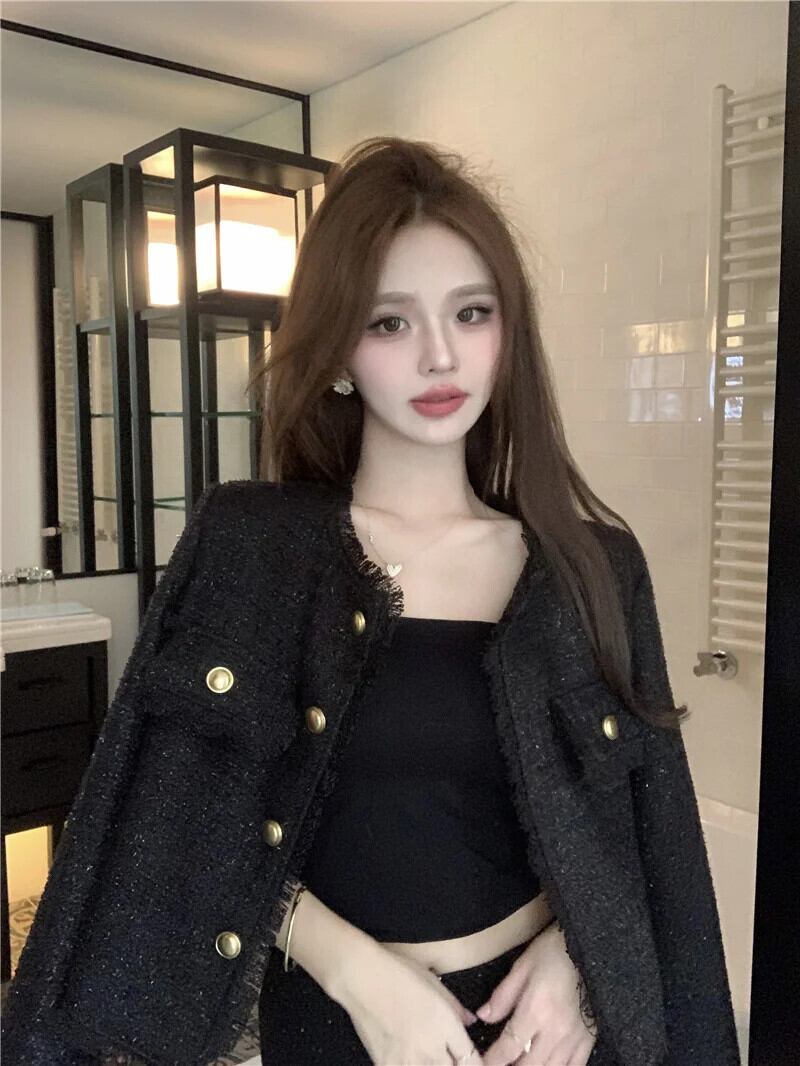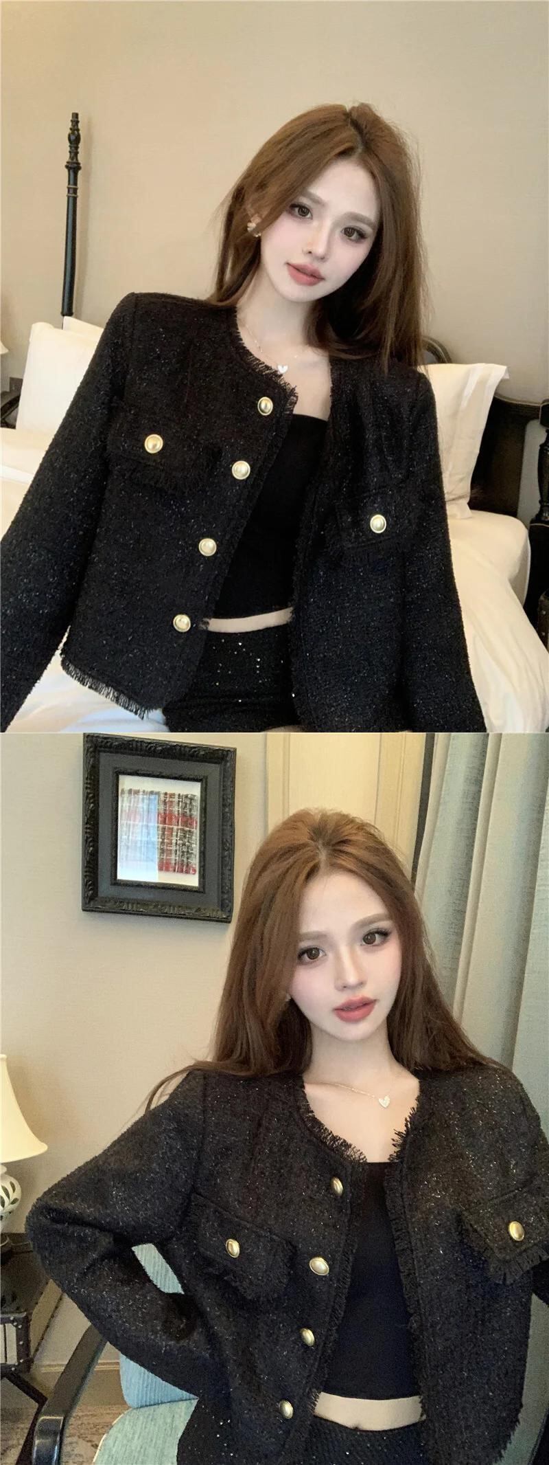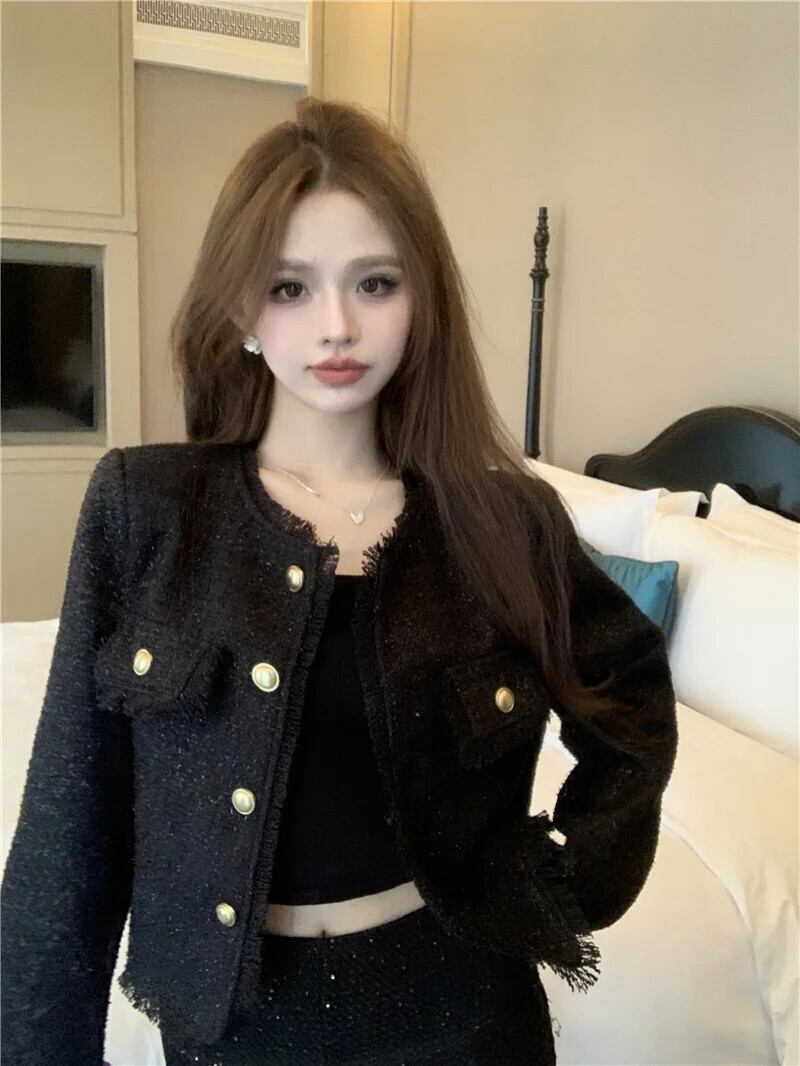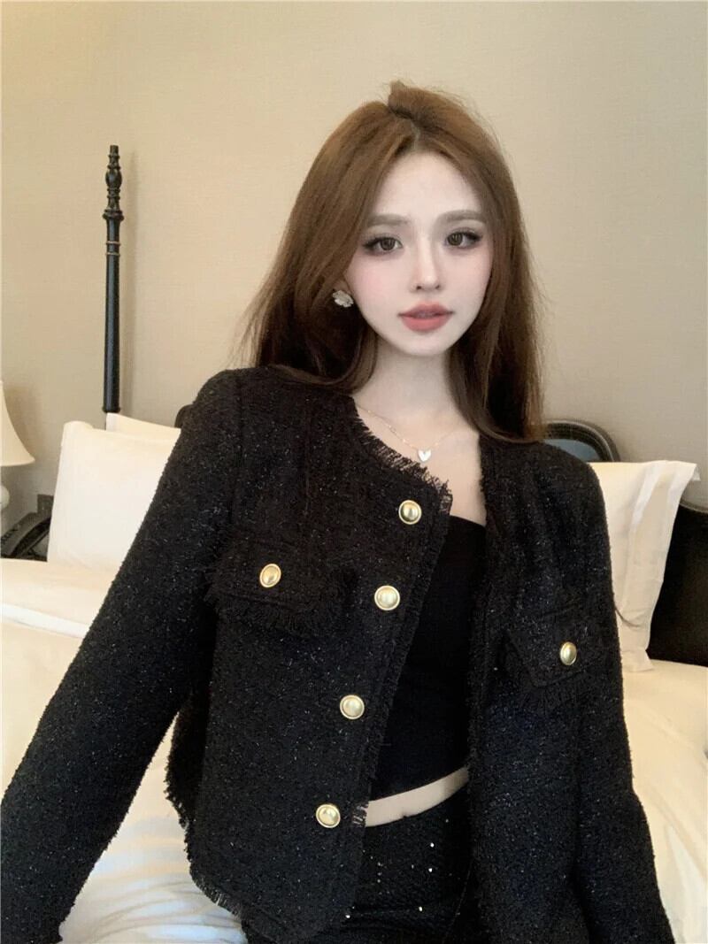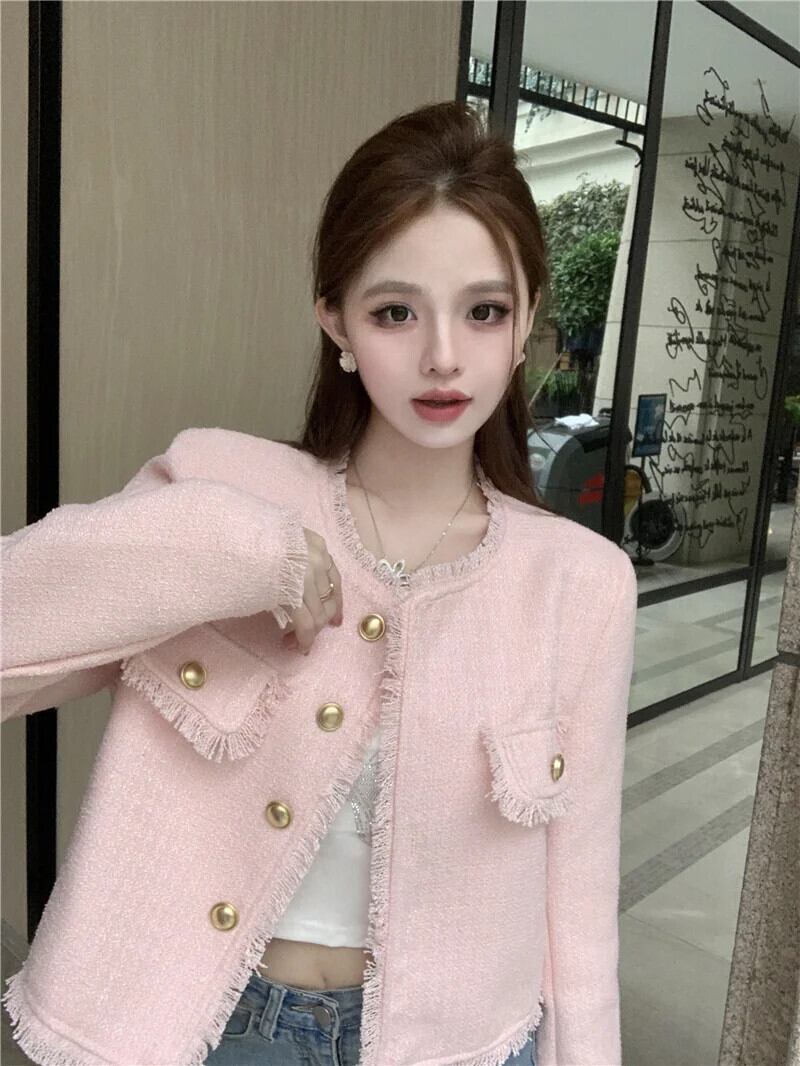 2024 春フレンチラウンドネックテルコートレディースルーズジャケット スプリング 春物 Oネック