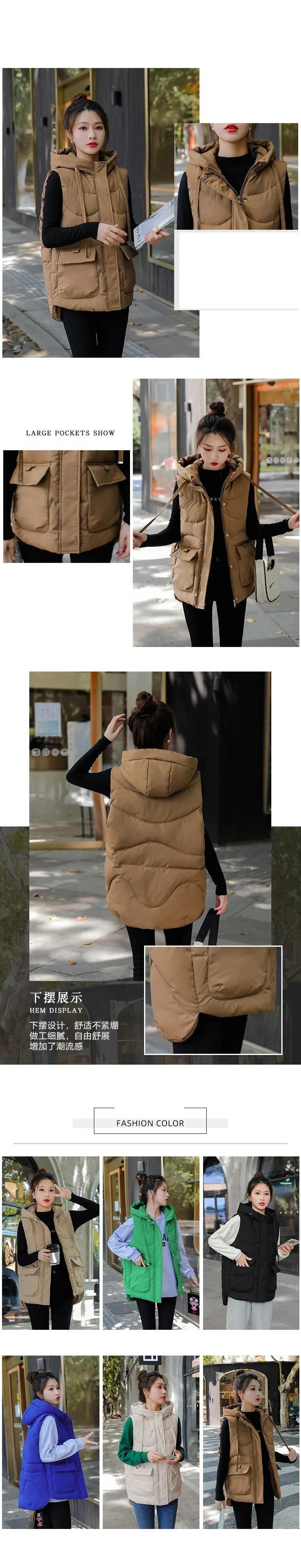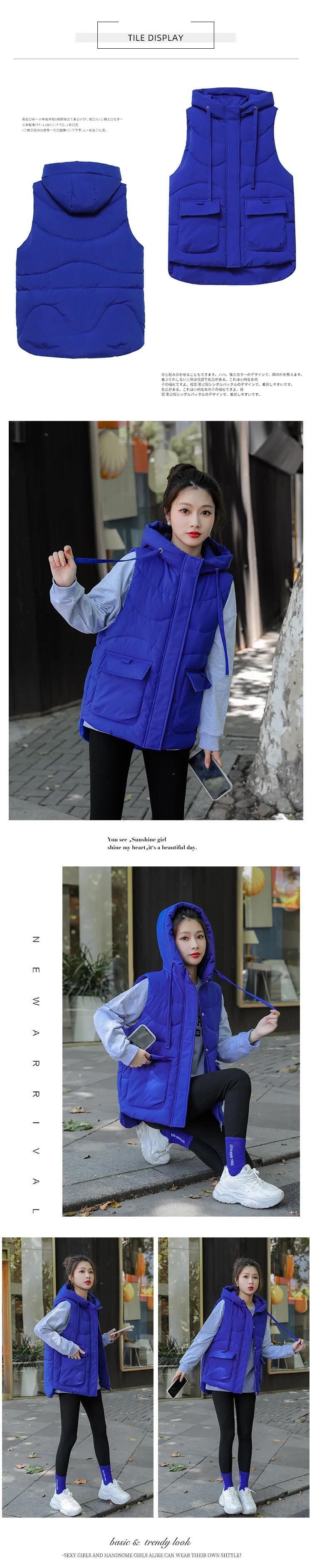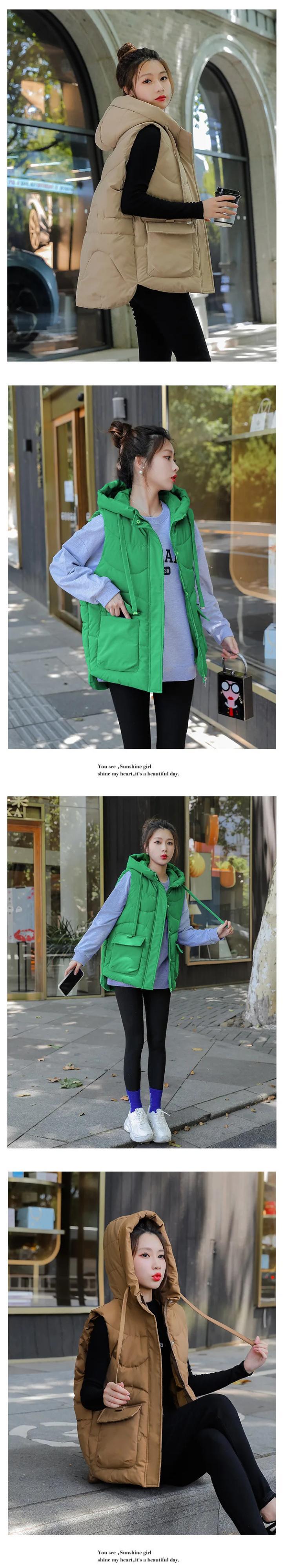 秋冬ミディベストコート暖かいノースリーブパーカーフード付きルーズチョッキアウター オータム 秋物 ウィンター 冬物 ソリッドカラー