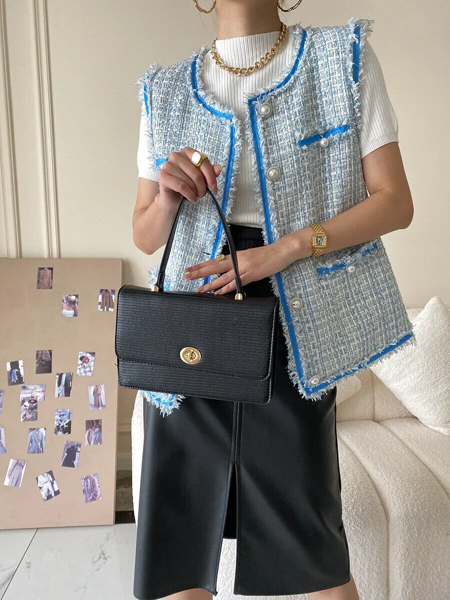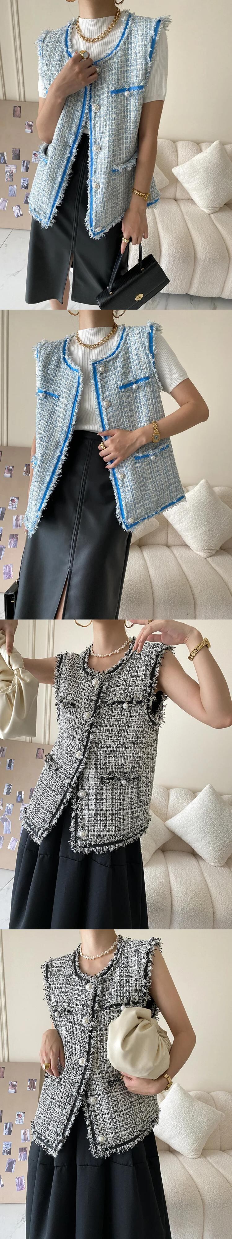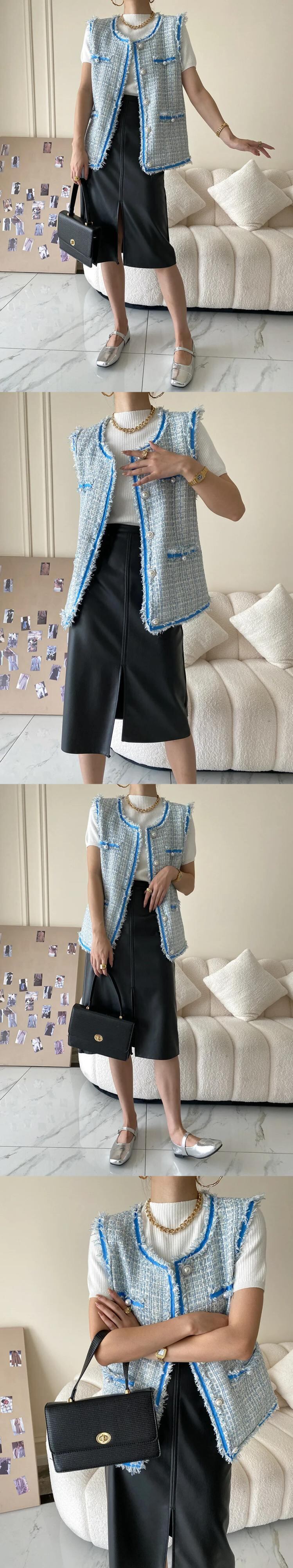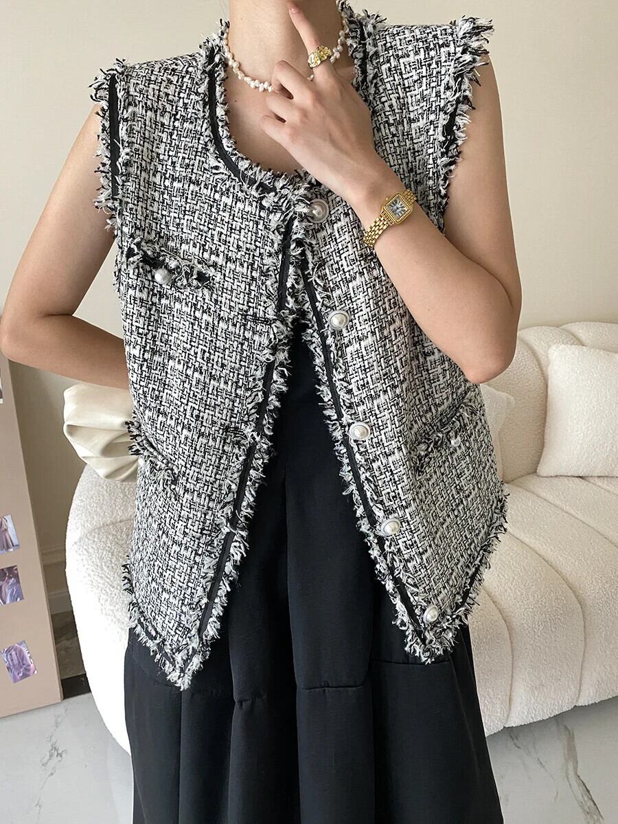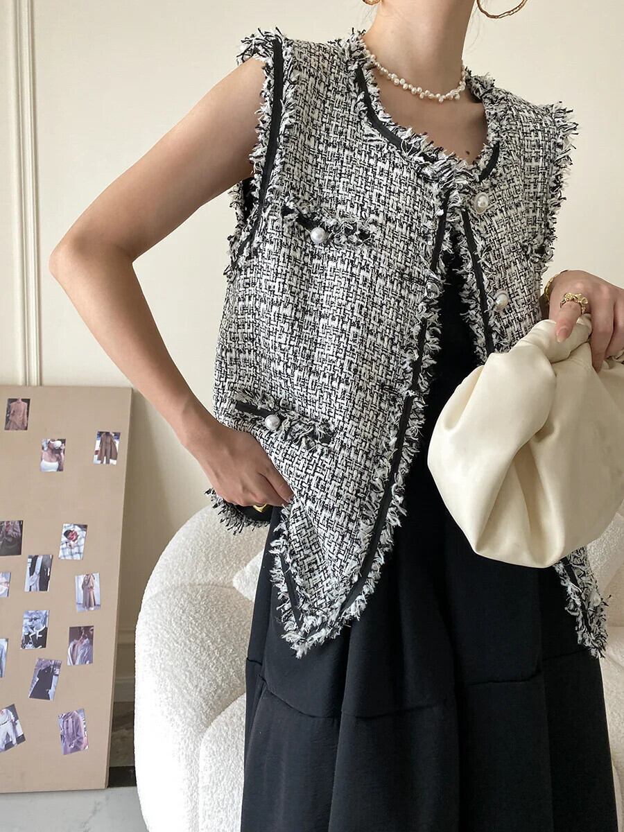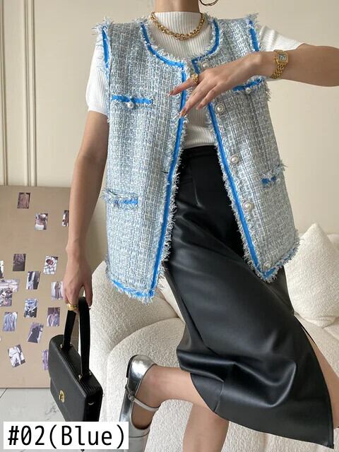 冬秋ファーエッジツイードベストコートチョッキ オータム 秋物 ウィンター 冬物