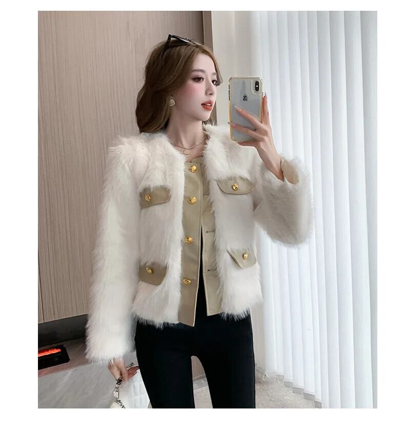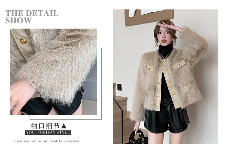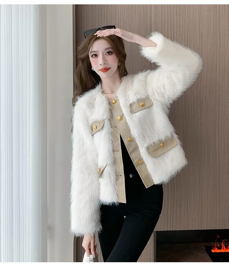 秋冬香り風フェイクフォックスファー GR コートショート暖かジャケット オータム 秋物 ウィンター 冬物