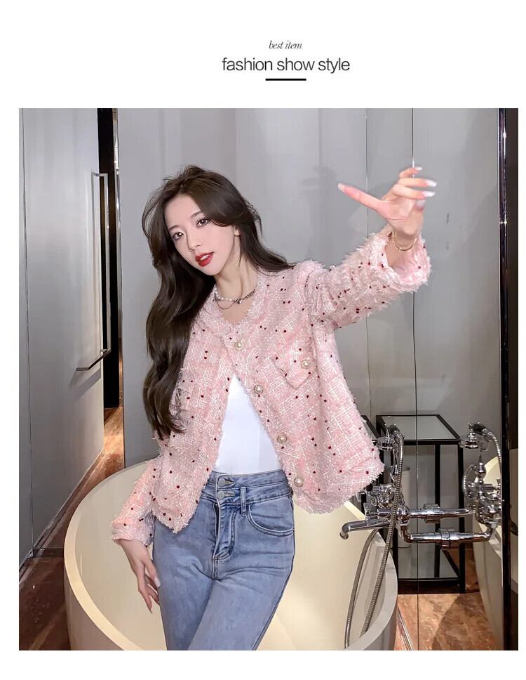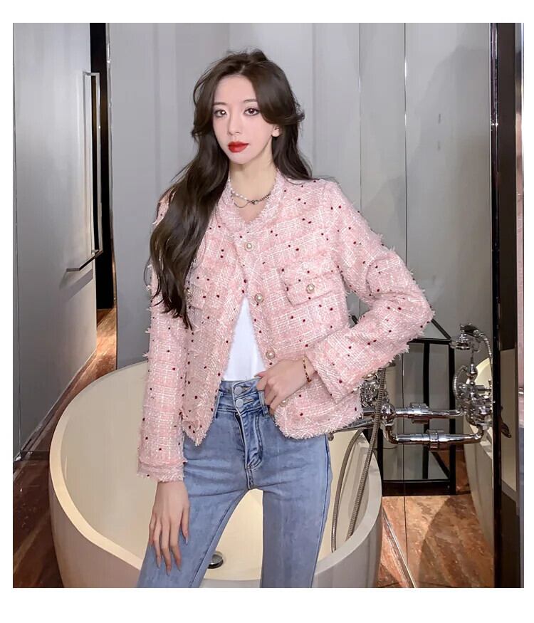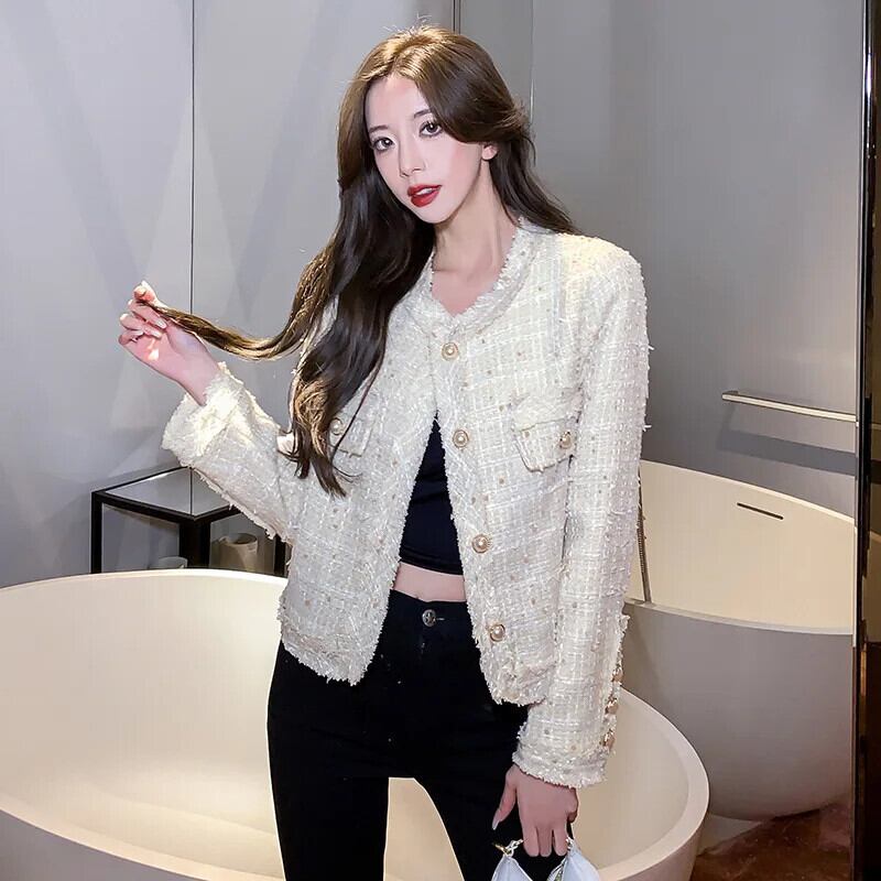 ツイードジャケット秋シングルブレストチェック柄テルスリムウールコートオフィスレディ生き抜く オータム 秋物 会社 学校 通勤や通学にも